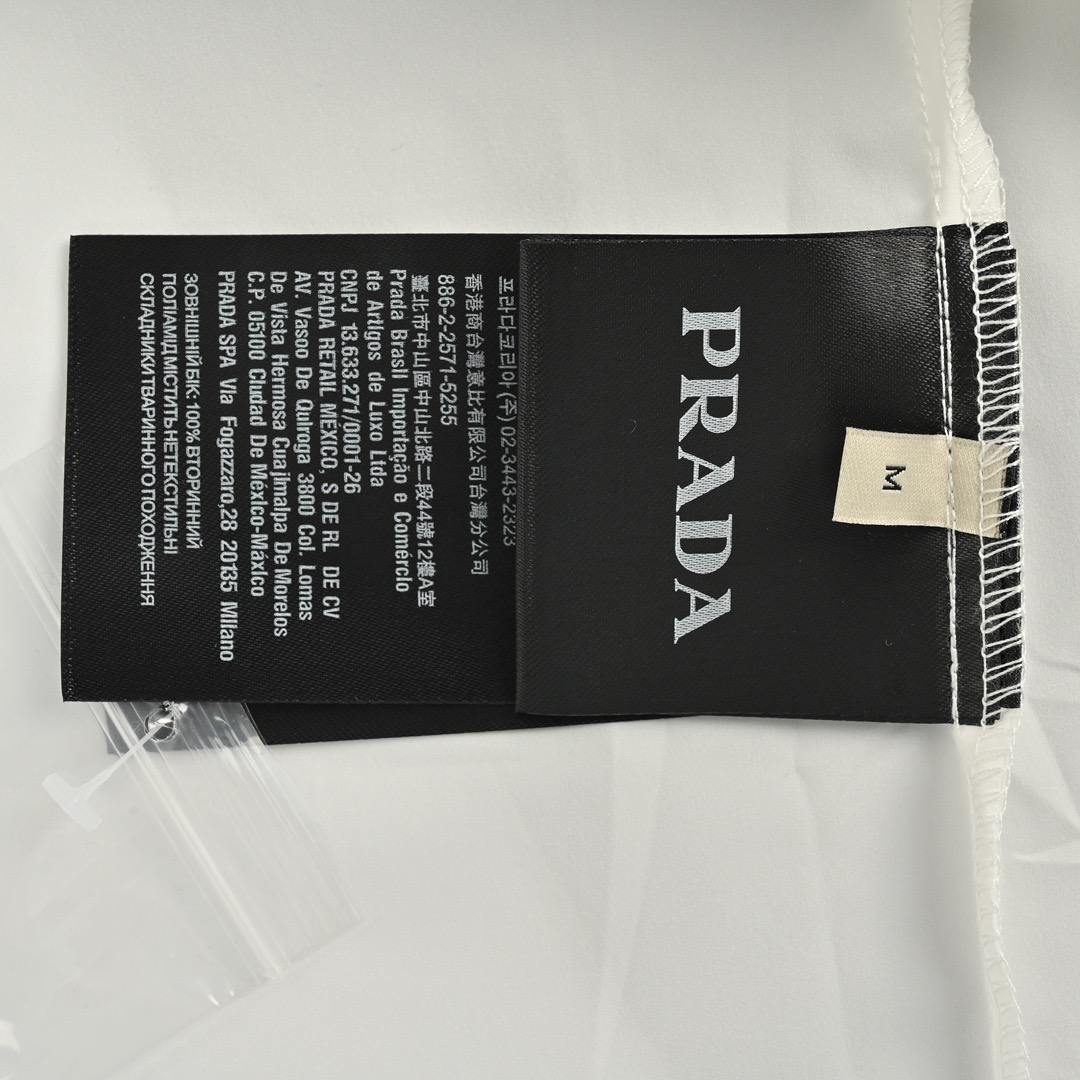 这款衣服是AAAAA 1:1 质量 (非常棒). 使用了和原版一模一样的材料. 商标部分也保持了和普拉达/Prada一样. 图片拍摄是实物衣服拍摄, 您所收到的实物保证和我们图片一模一样.