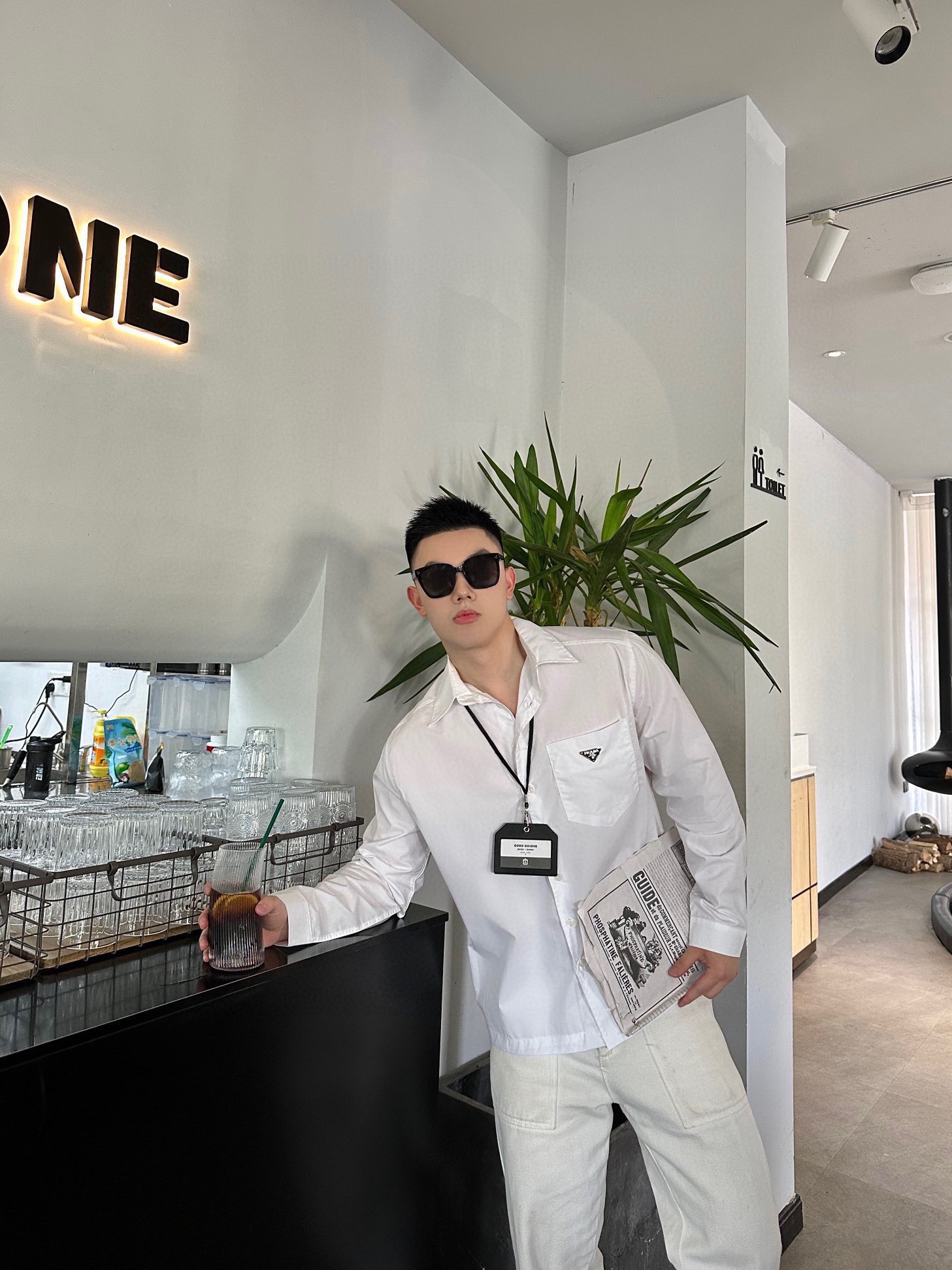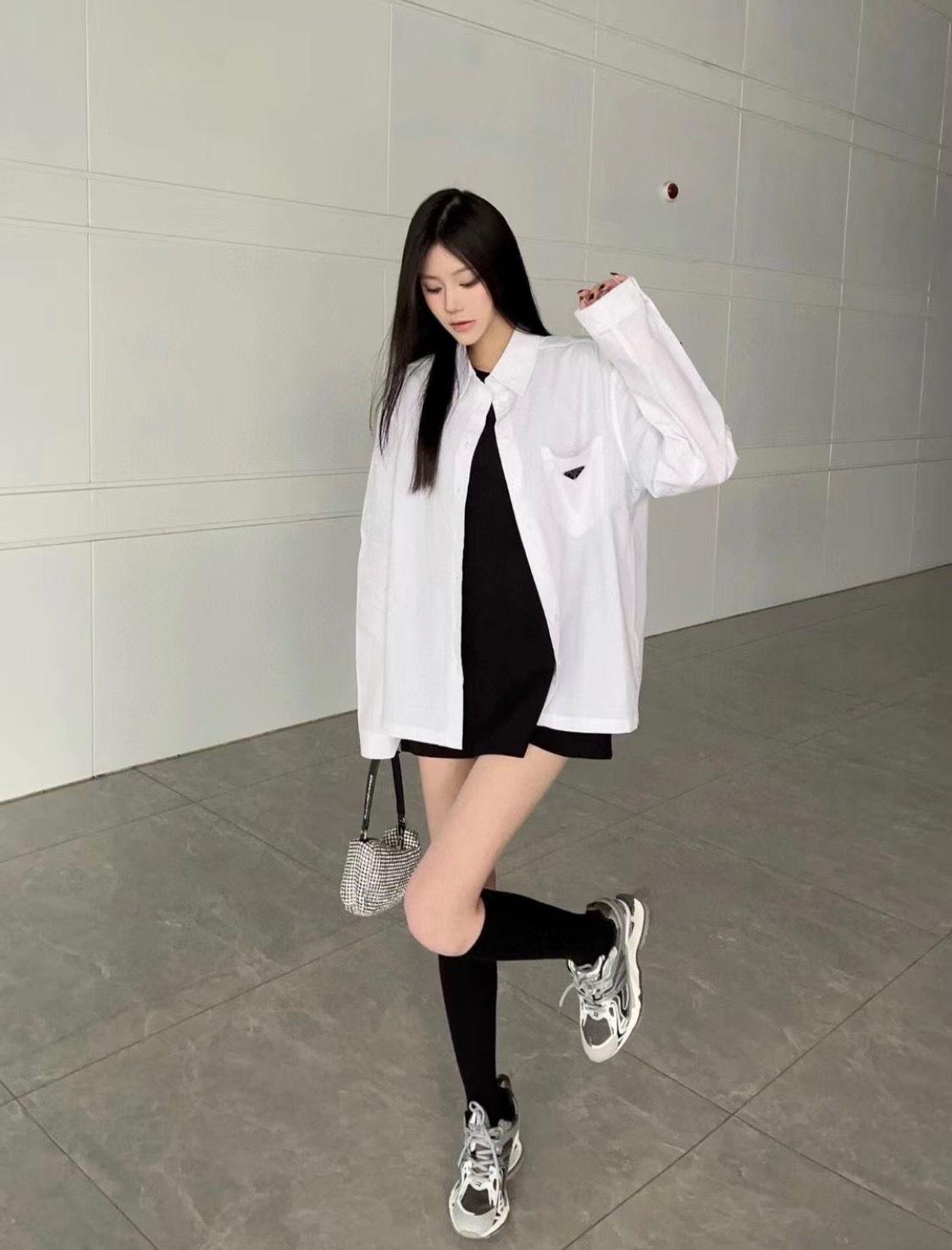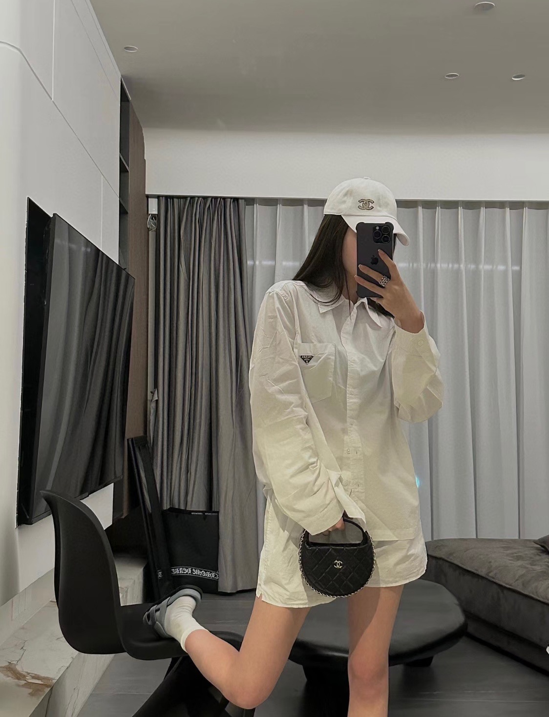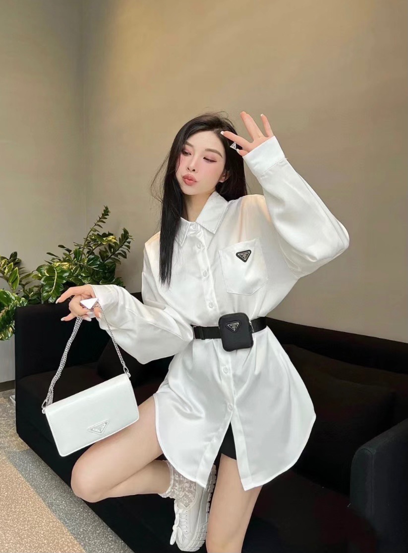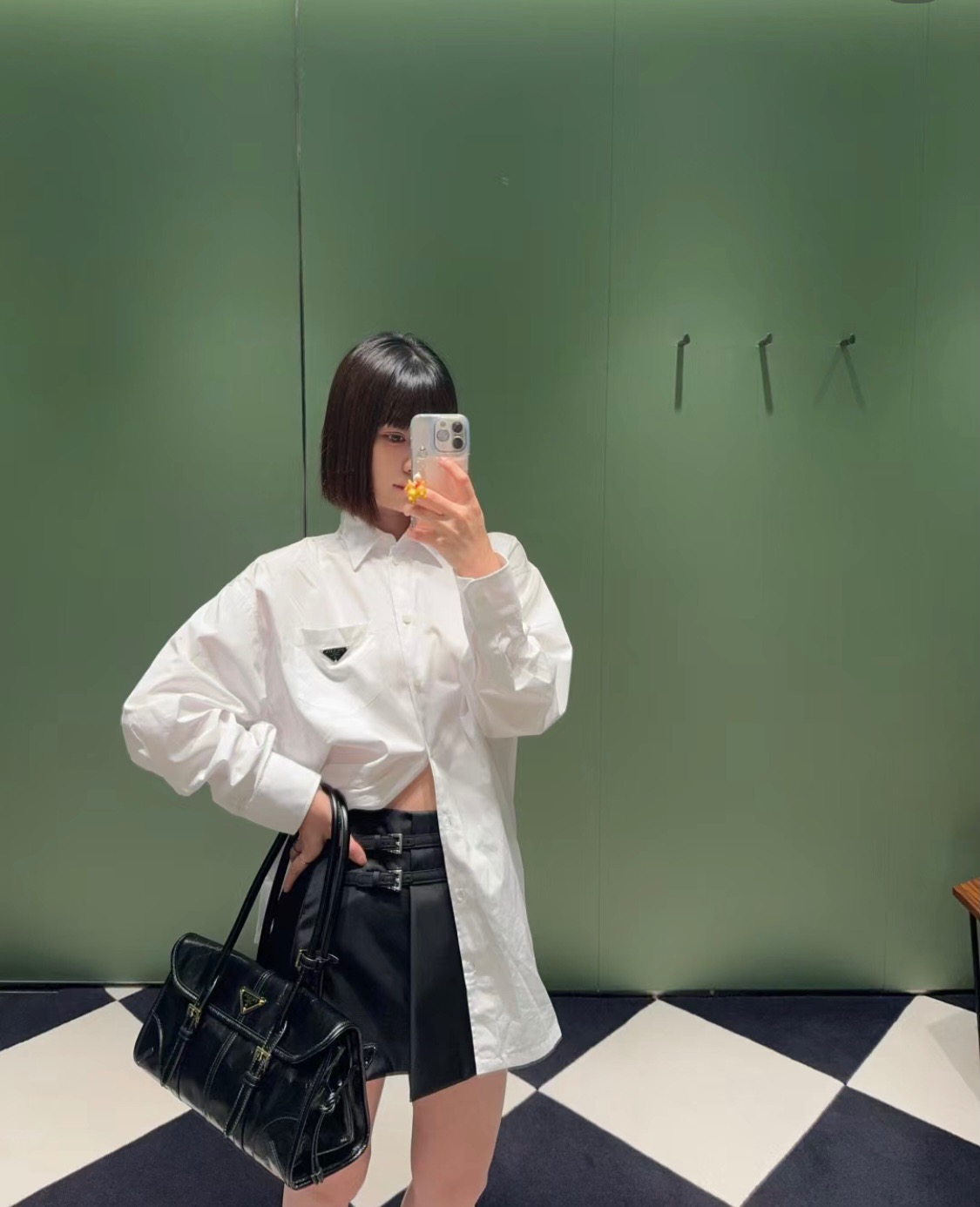 这款衣服是AAAAA 1:1 质量 (非常棒). 使用了和原版一模一样的材料. 商标部分也保持了和普拉达/Prada一样. 图片拍摄是实物衣服拍摄, 您所收到的实物保证和我们图片一模一样.