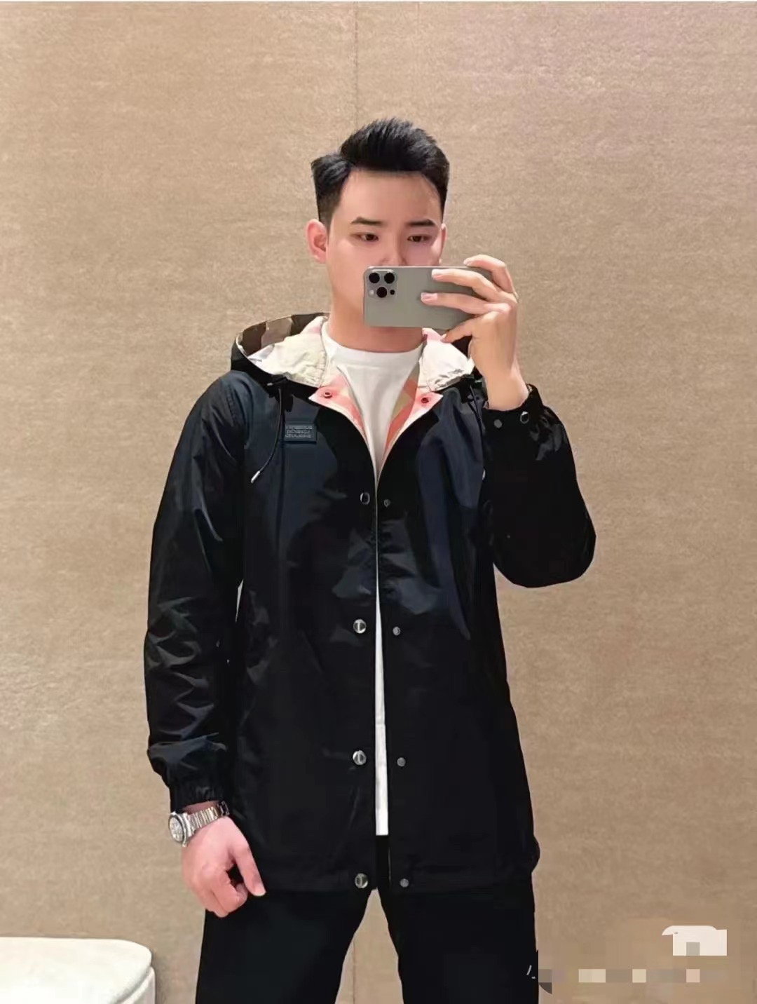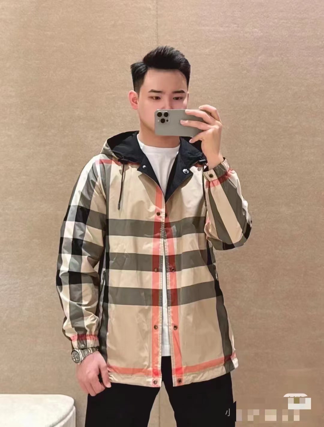 这款衣服是AAAAA 1:1 质量 (非常棒). 使用了和原版一模一样的材料. 商标部分也保持了和巴宝莉/Burberry一样. 图片拍摄是实物衣服拍摄, 您所收到的实物保证和我们图片一模一样.