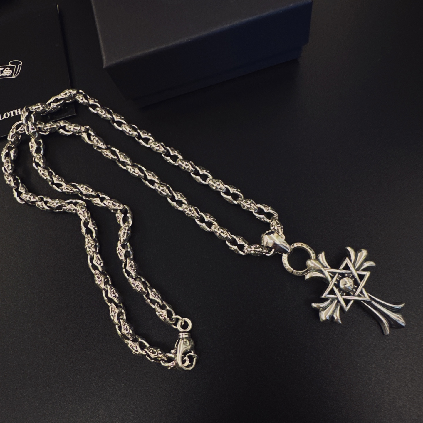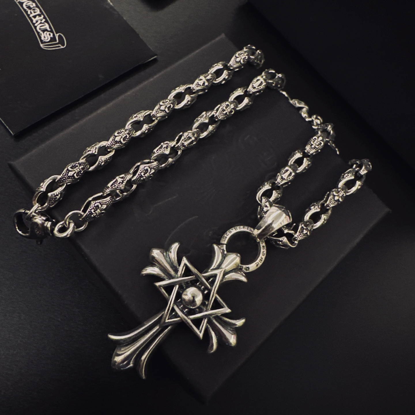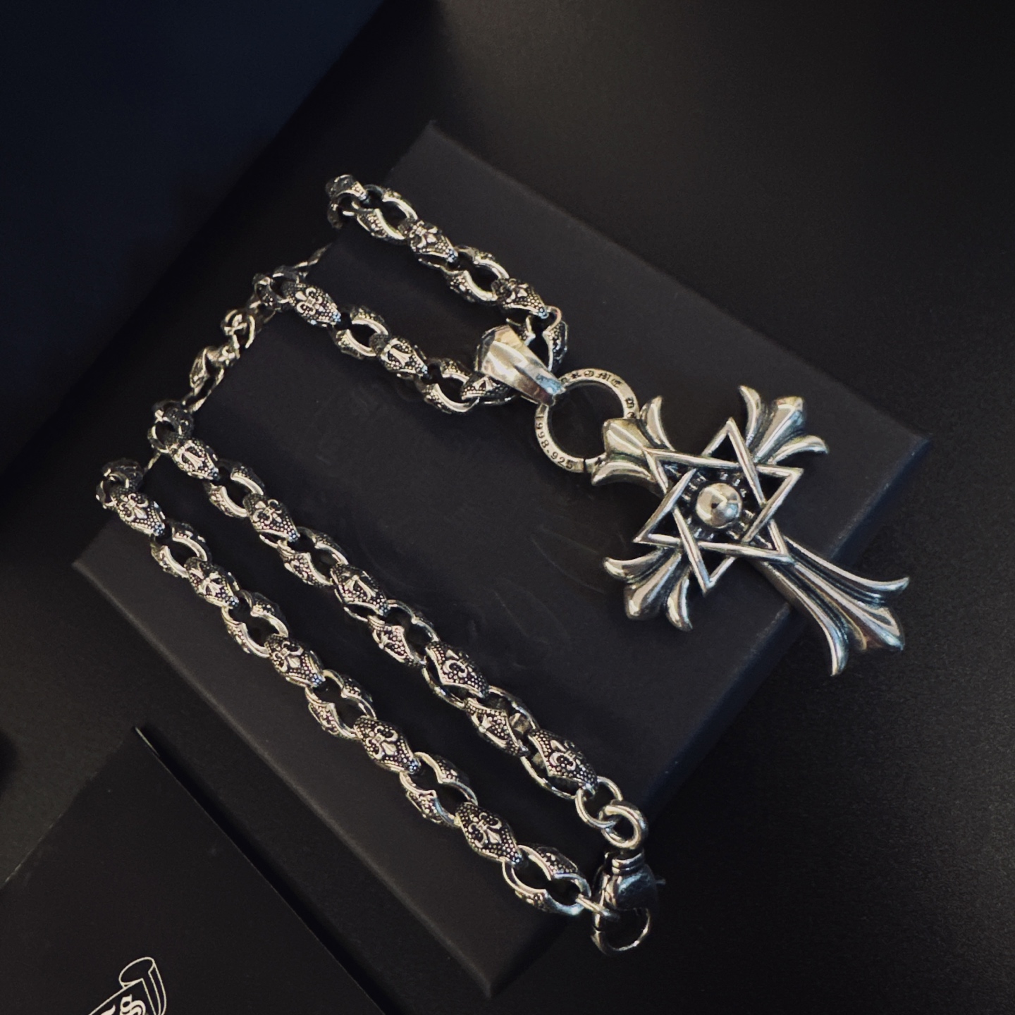 这款首饰是AAAAA 1:1 质量 (非常棒). 使用了和原版一模一样的材料. 商标部分也保持了和克罗心/Chrome Hearts一样. 图片拍摄是实物首饰拍摄, 您所收到的实物保证和我们图片一模一样.