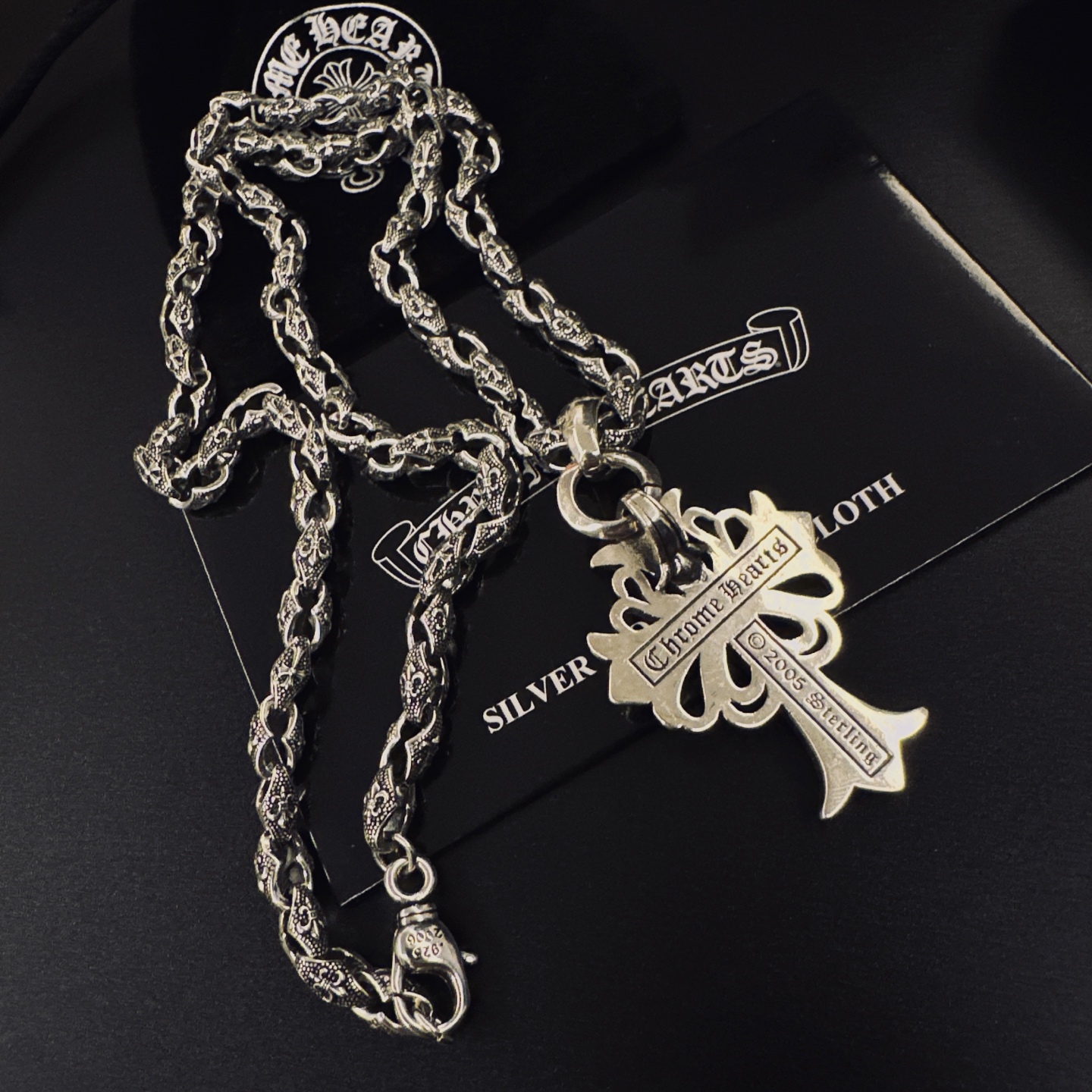 这款首饰是AAAAA 1:1 质量 (非常棒). 使用了和原版一模一样的材料. 商标部分也保持了和克罗心/Chrome Hearts一样. 图片拍摄是实物首饰拍摄, 您所收到的实物保证和我们图片一模一样.