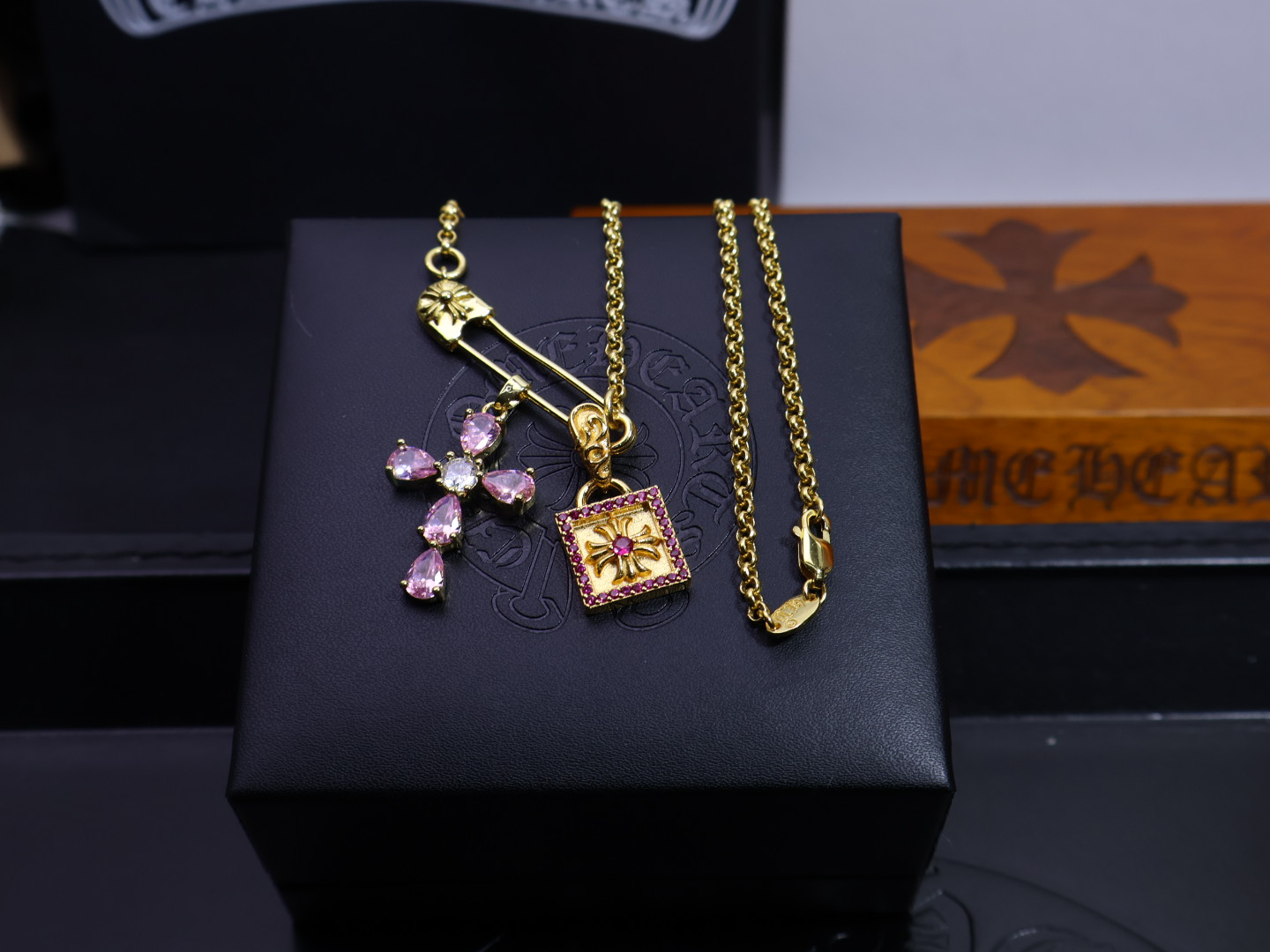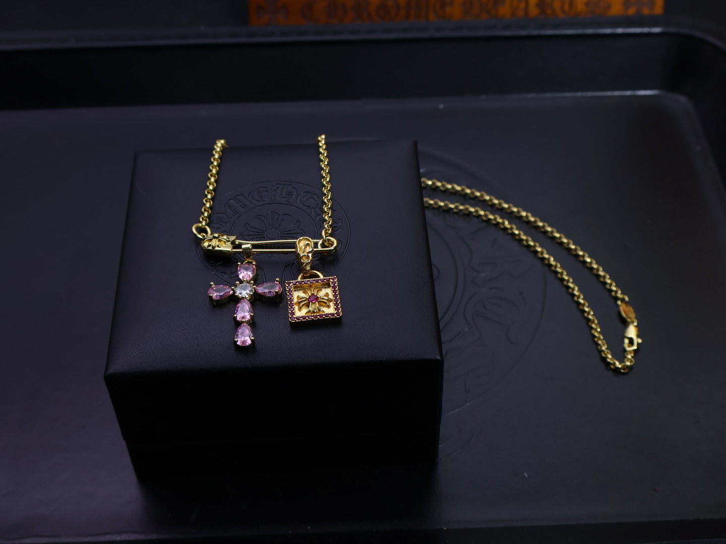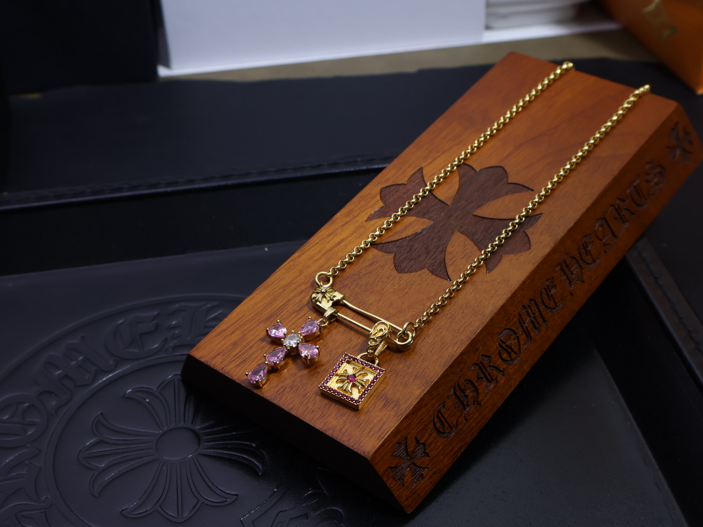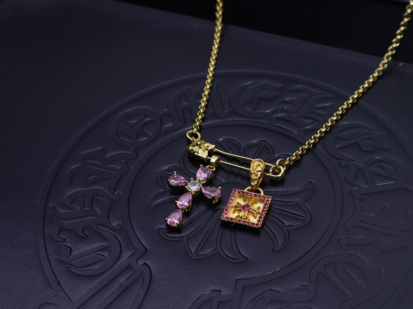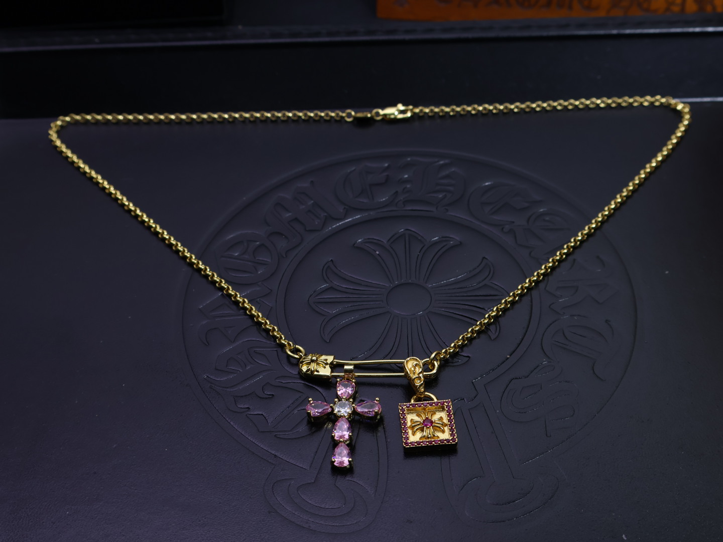 这款首饰是AAAAA 1:1 质量 (非常棒). 使用了和原版一模一样的材料. 商标部分也保持了和克罗心/Chrome Hearts一样. 图片拍摄是实物首饰拍摄, 您所收到的实物保证和我们图片一模一样.