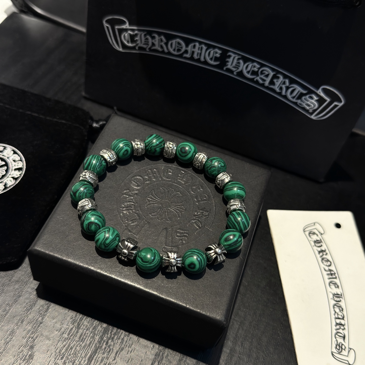 这款首饰是AAAAA 1:1 质量 (非常棒). 使用了和原版一模一样的材料. 商标部分也保持了和克罗心/Chrome Hearts一样. 图片拍摄是实物首饰拍摄, 您所收到的实物保证和我们图片一模一样.