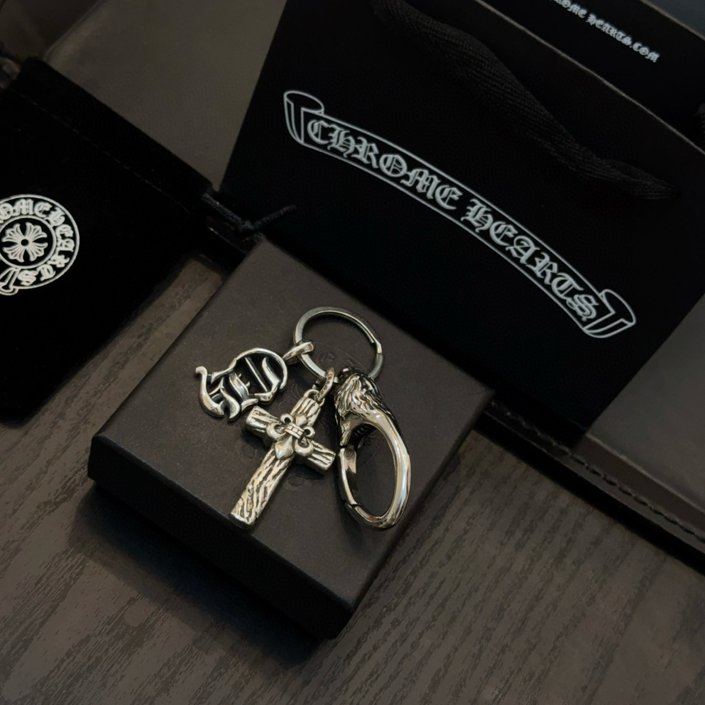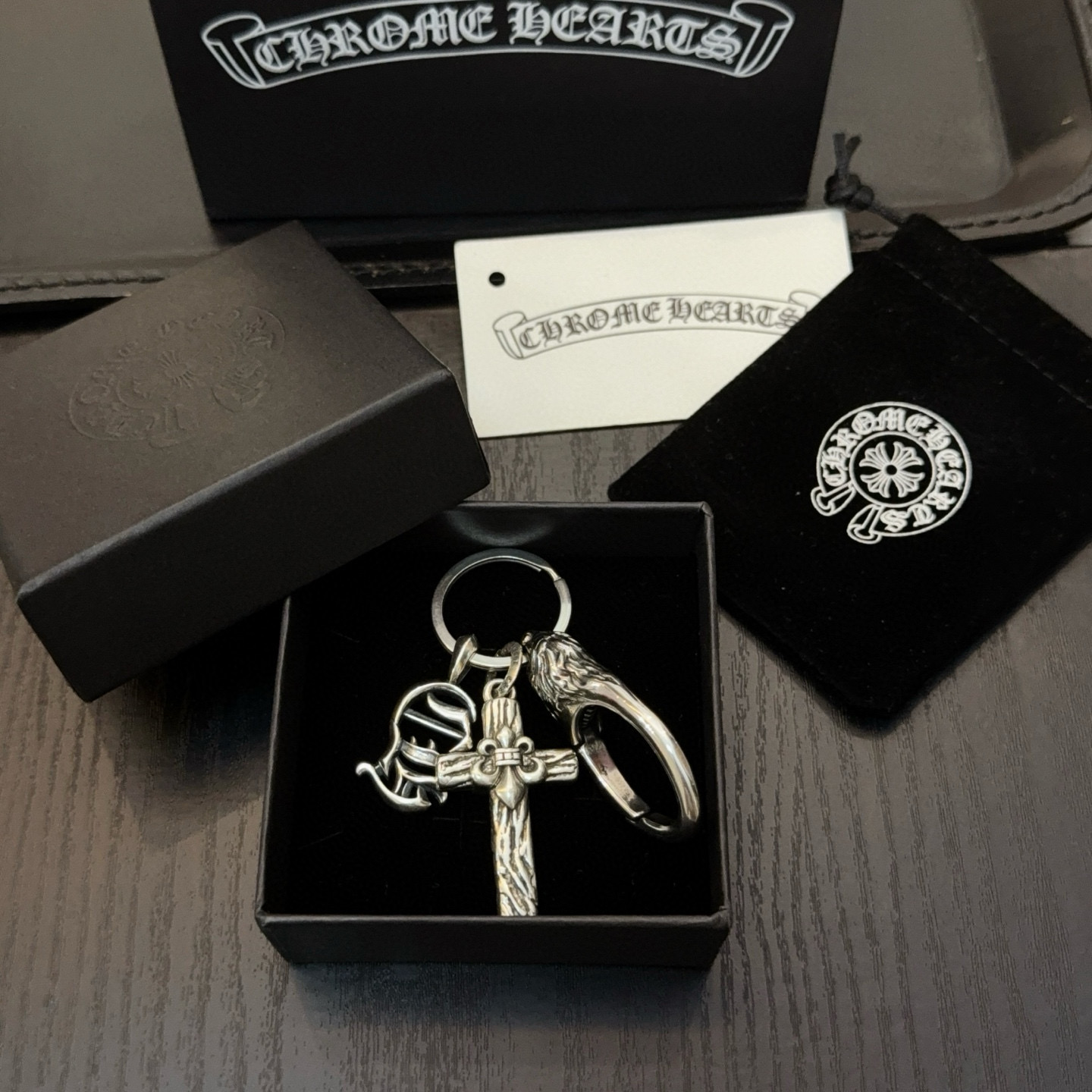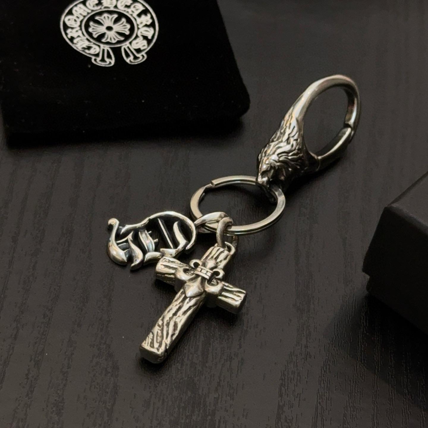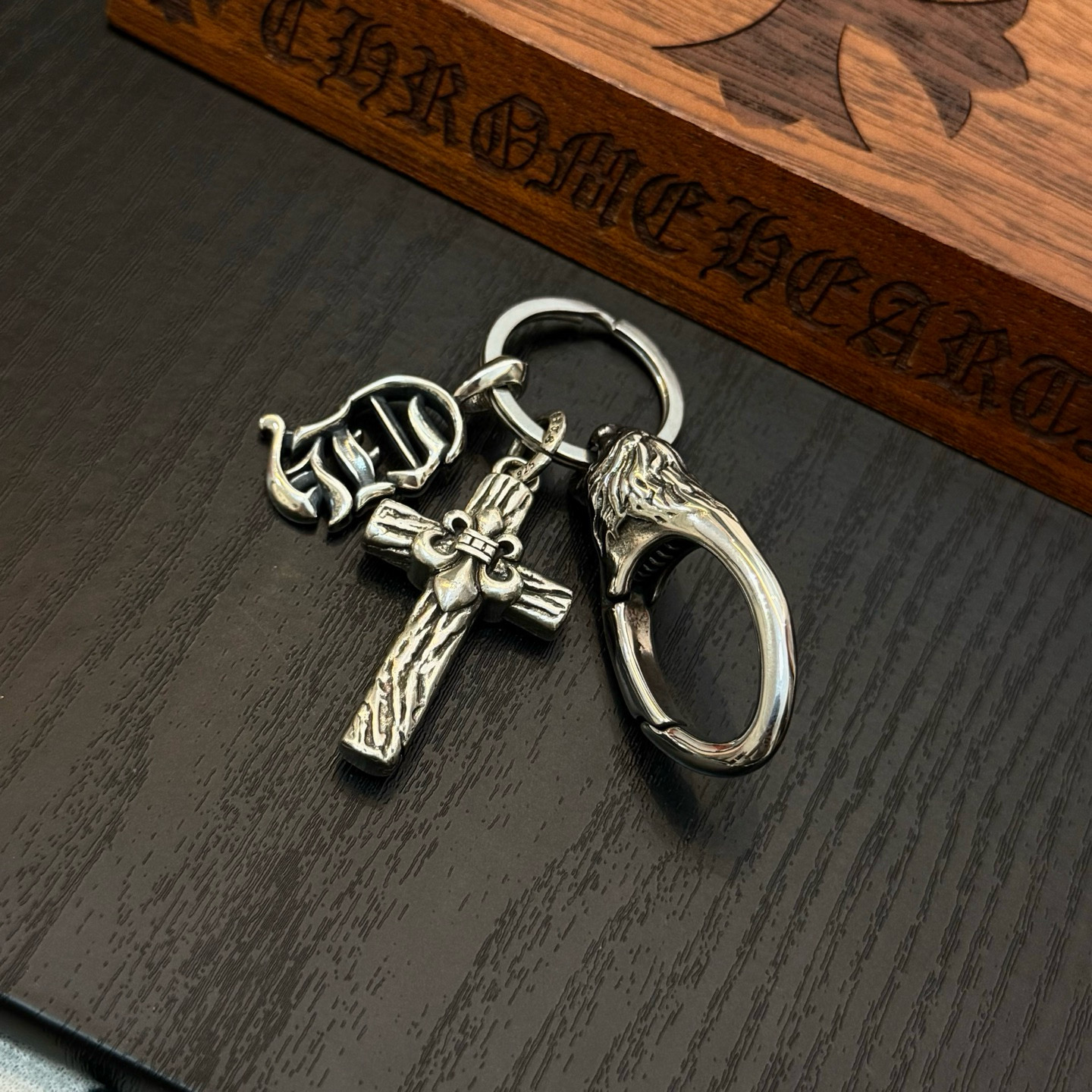 这款首饰是AAAAA 1:1 质量 (非常棒). 使用了和原版一模一样的材料. 商标部分也保持了和克罗心/Chrome Hearts一样. 图片拍摄是实物首饰拍摄, 您所收到的实物保证和我们图片一模一样.