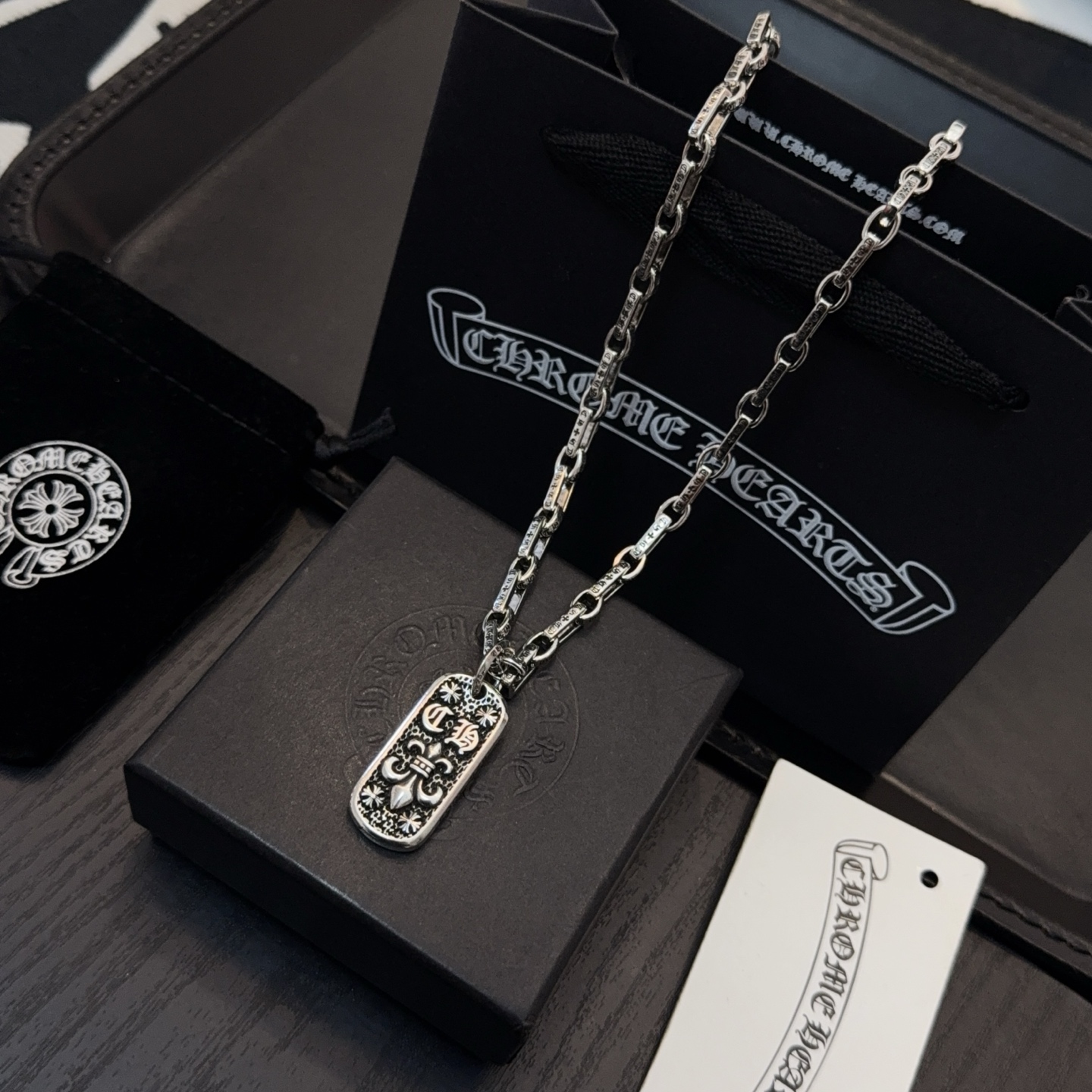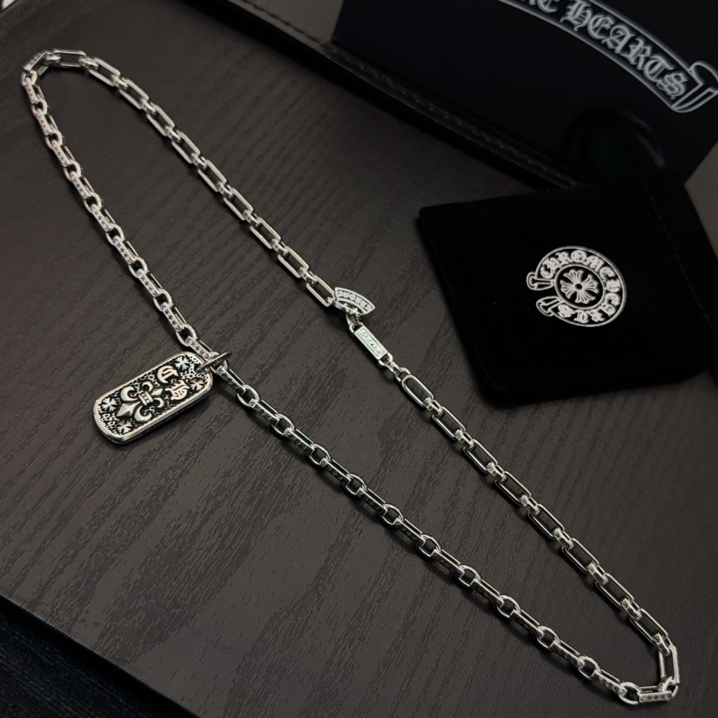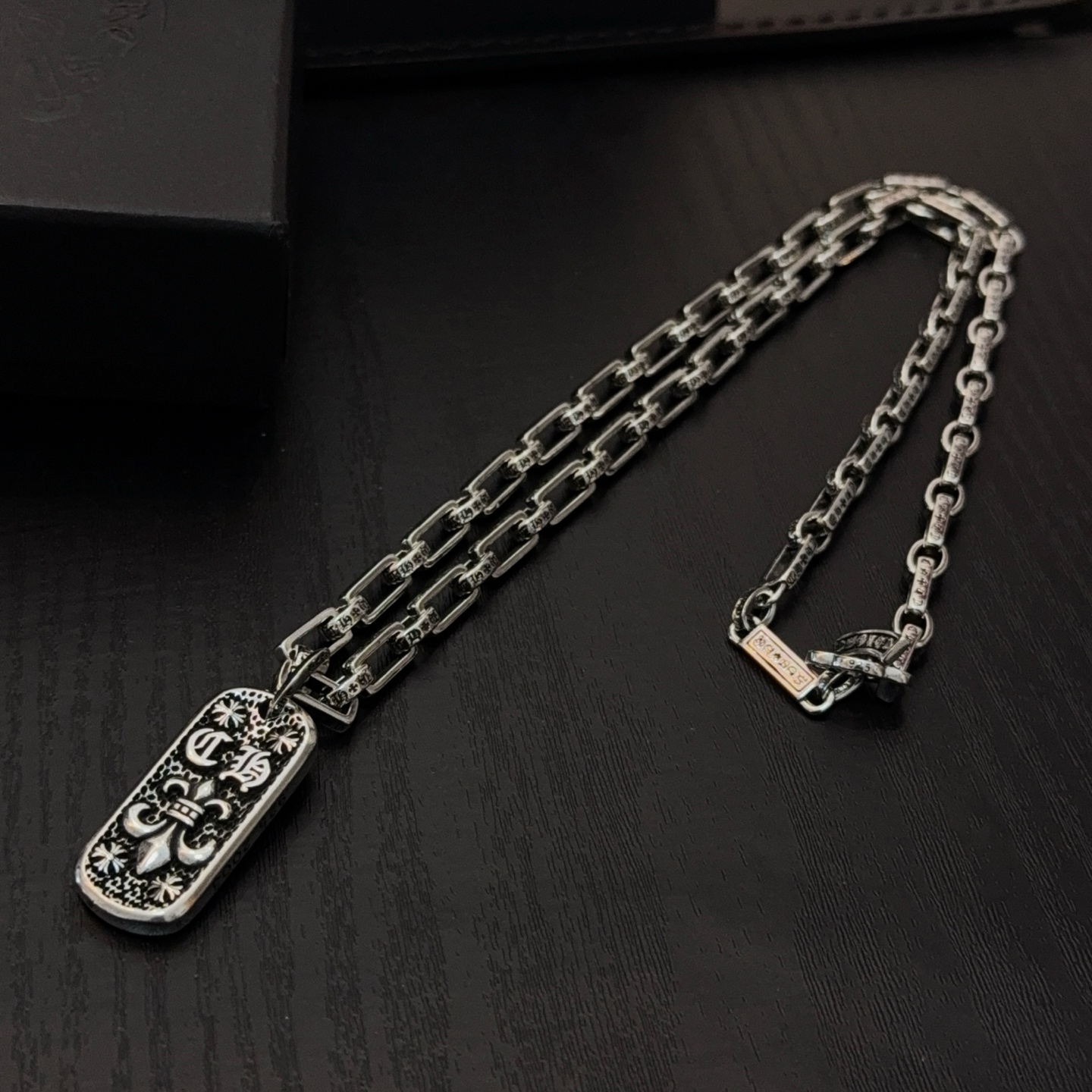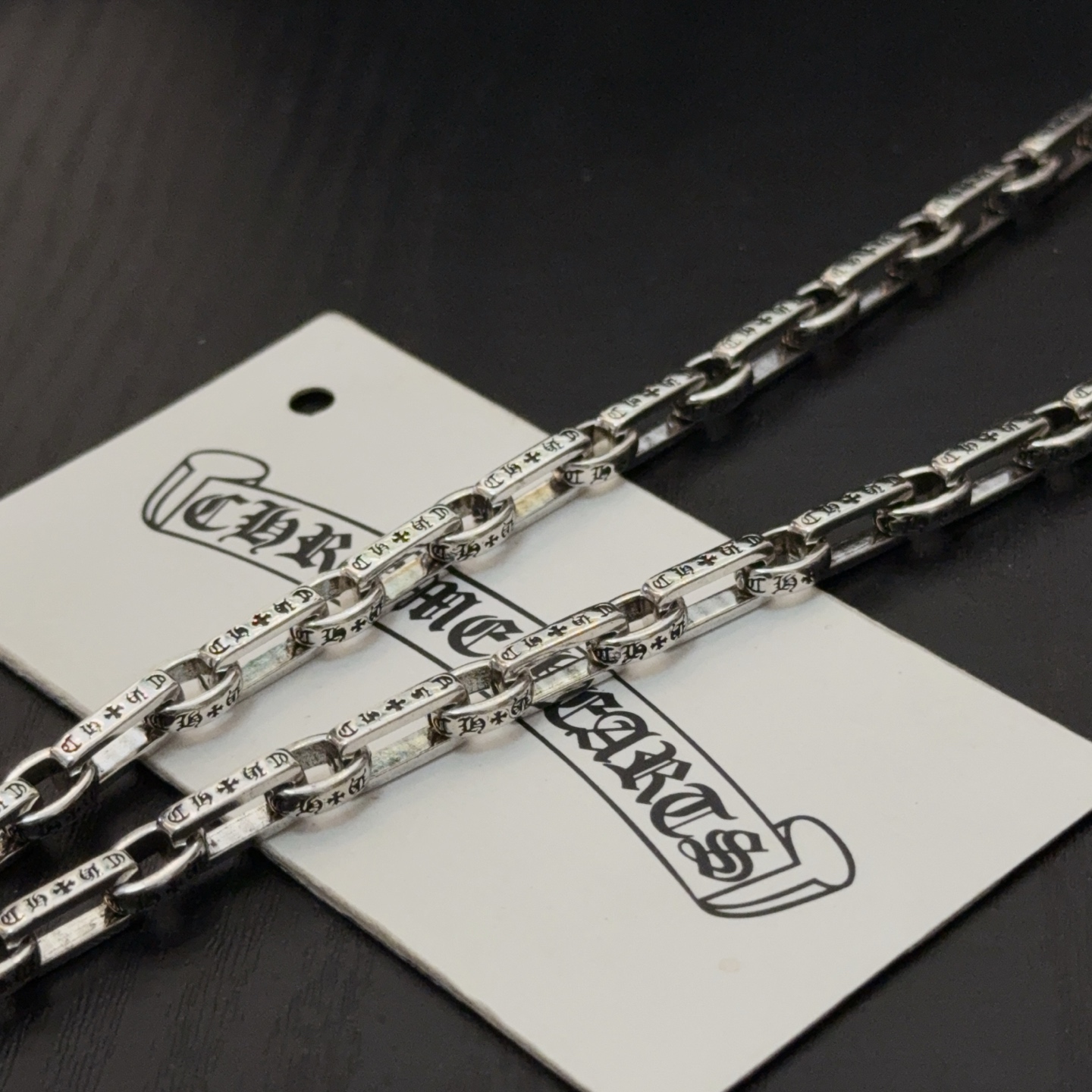这款首饰是AAAAA 1:1 质量 (非常棒). 使用了和原版一模一样的材料. 商标部分也保持了和克罗心/Chrome Hearts一样. 图片拍摄是实物首饰拍摄, 您所收到的实物保证和我们图片一模一样.