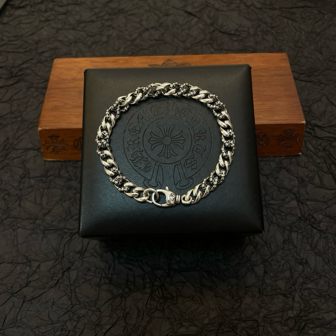 这款首饰是AAAAA 1:1 质量 (非常棒). 使用了和原版一模一样的材料. 商标部分也保持了和克罗心/Chrome Hearts一样. 图片拍摄是实物首饰拍摄, 您所收到的实物保证和我们图片一模一样.