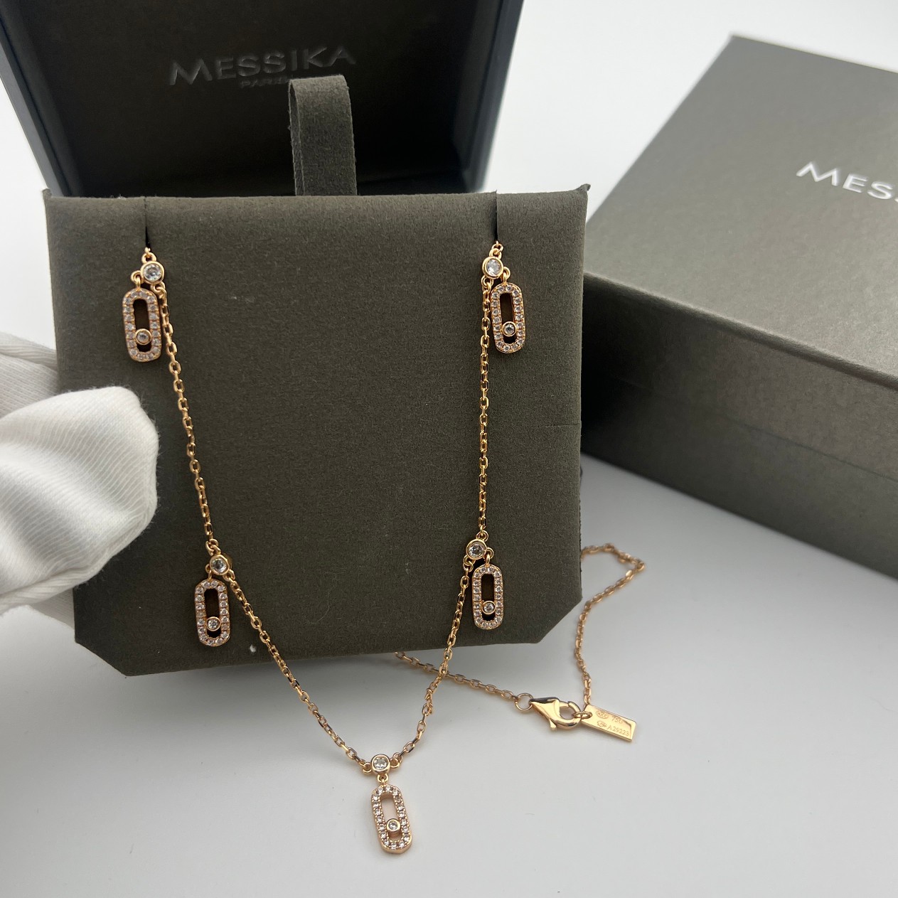 这款首饰是AAAAA 1:1 质量 (非常棒). 使用了和原版一模一样的材料. 商标部分也保持了和梅西卡/Messika一样. 图片拍摄是实物首饰拍摄, 您所收到的实物保证和我们图片一模一样.