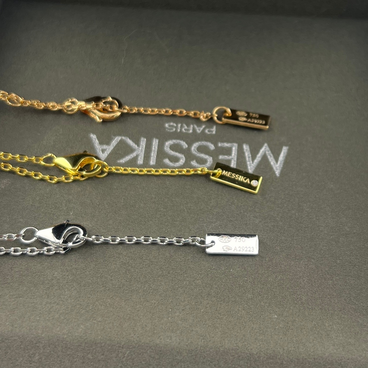 这款首饰是AAAAA 1:1 质量 (非常棒). 使用了和原版一模一样的材料. 商标部分也保持了和梅西卡/Messika一样. 图片拍摄是实物首饰拍摄, 您所收到的实物保证和我们图片一模一样.