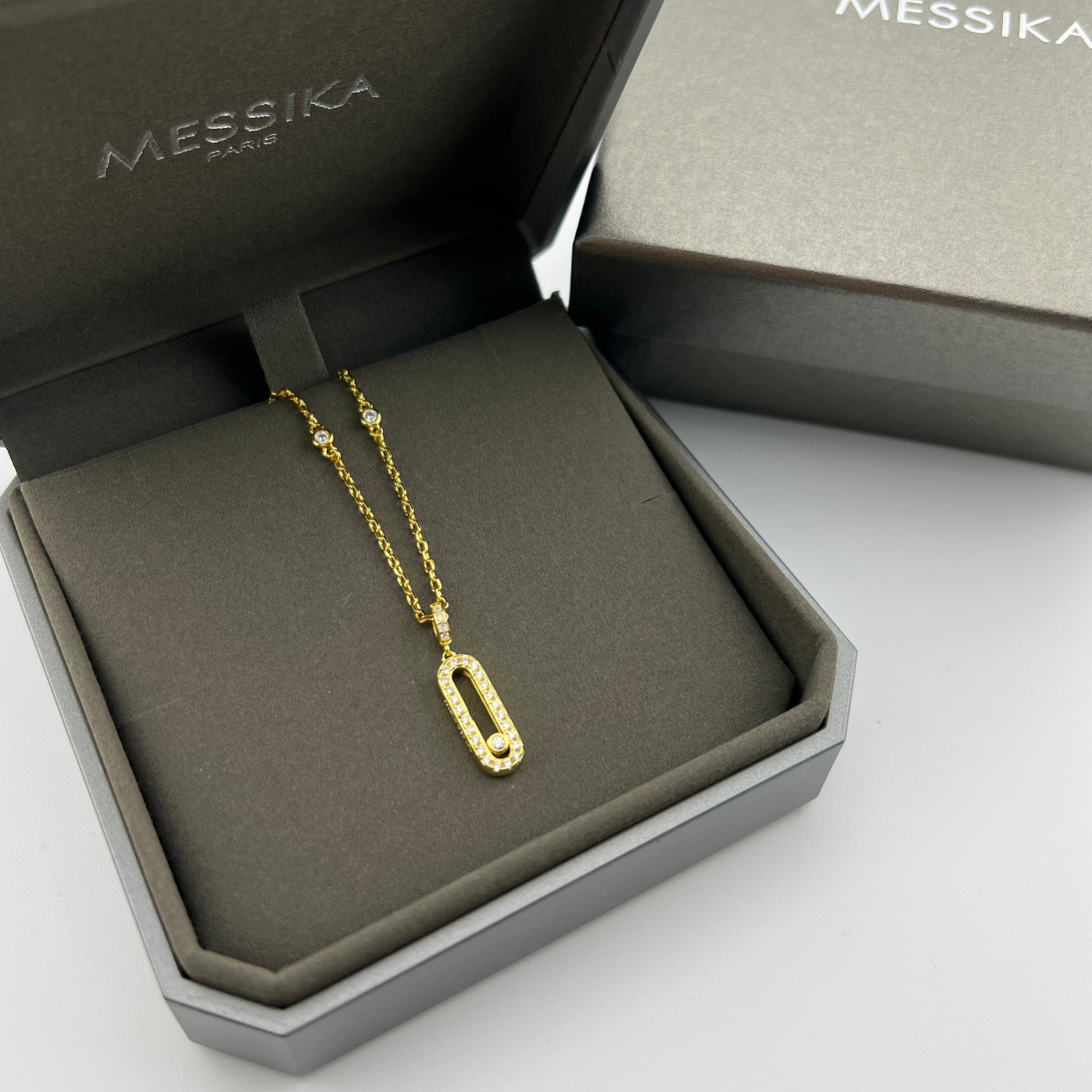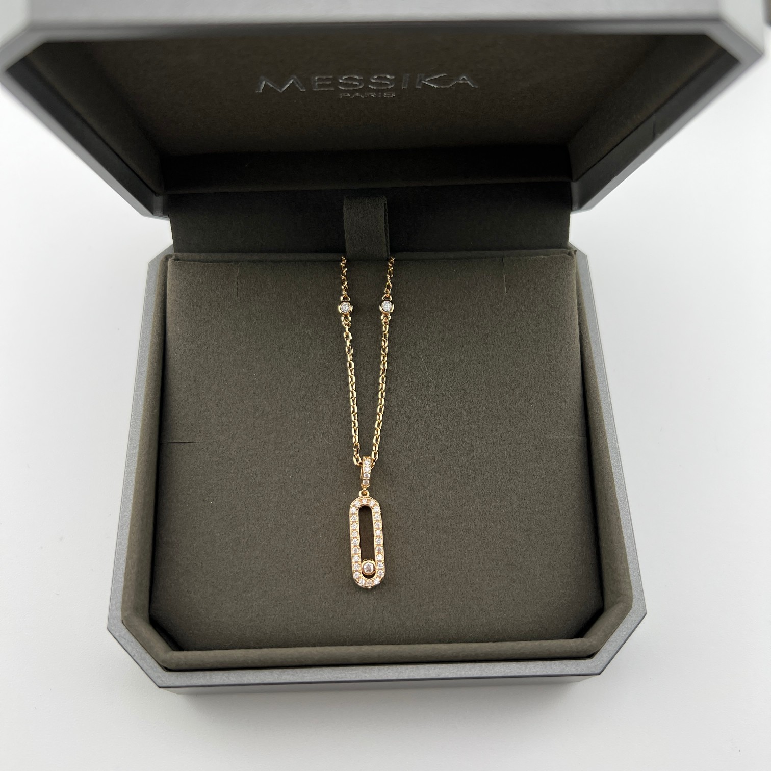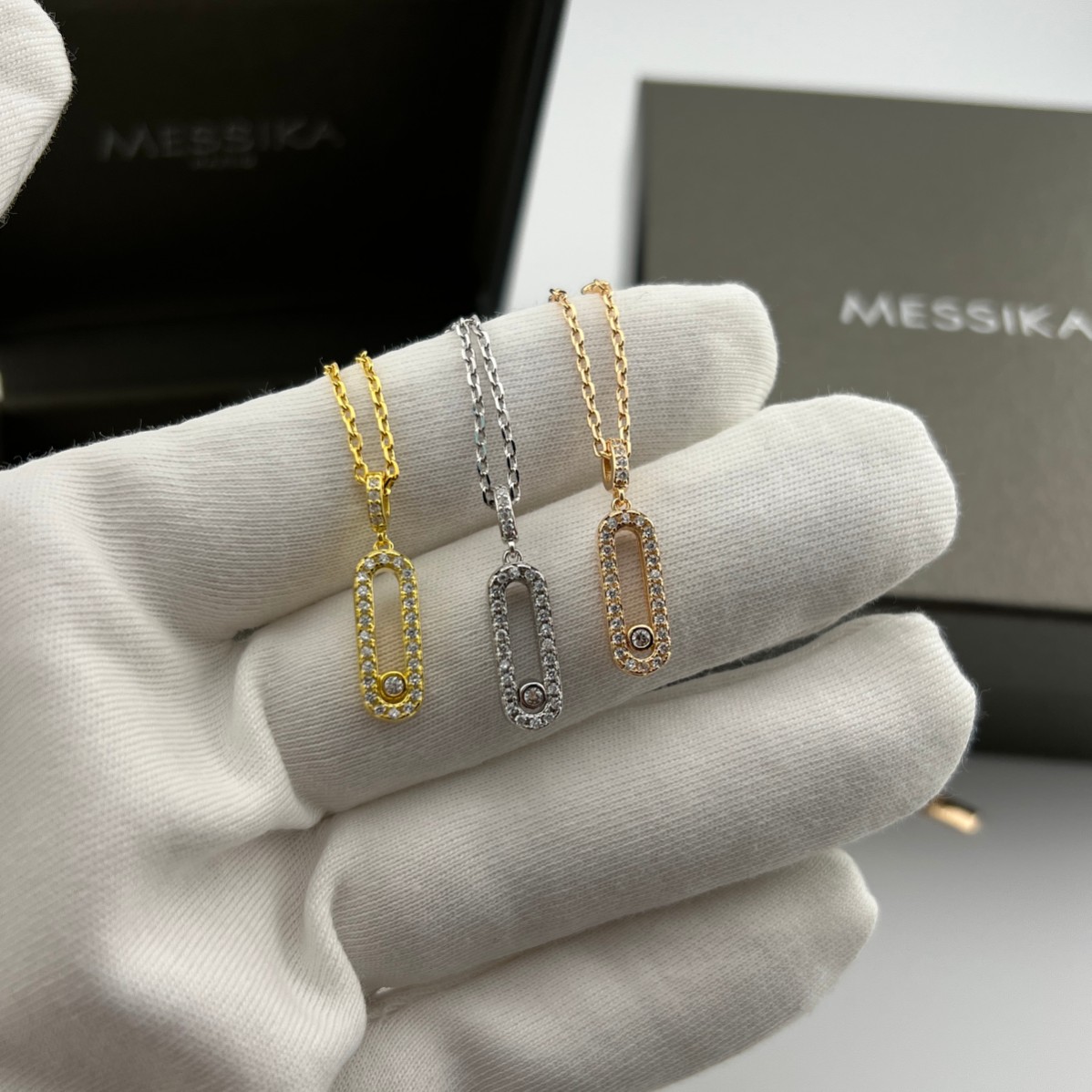 这款首饰是AAAAA 1:1 质量 (非常棒). 使用了和原版一模一样的材料. 商标部分也保持了和梅西卡/Messika一样. 图片拍摄是实物首饰拍摄, 您所收到的实物保证和我们图片一模一样.
