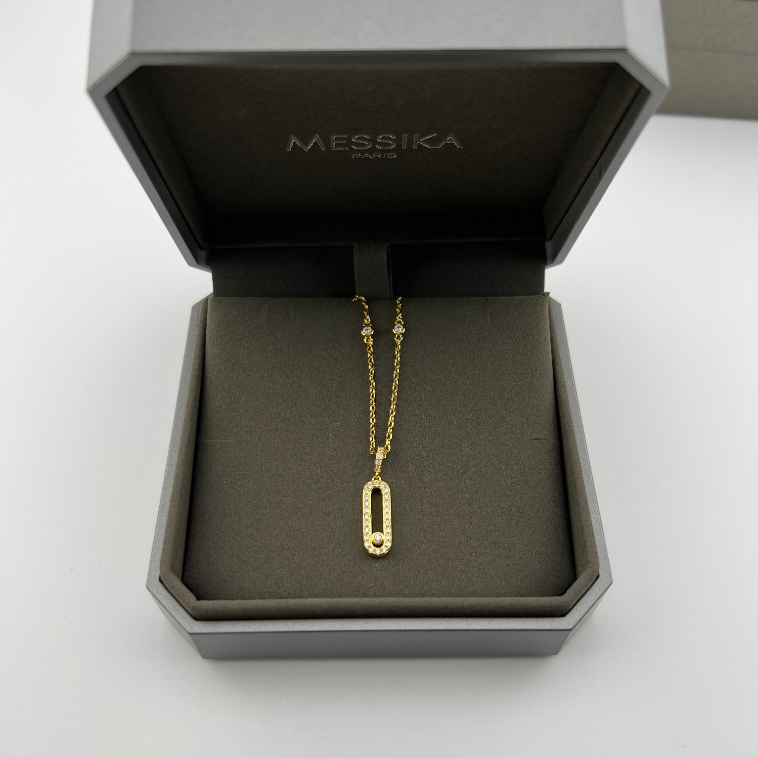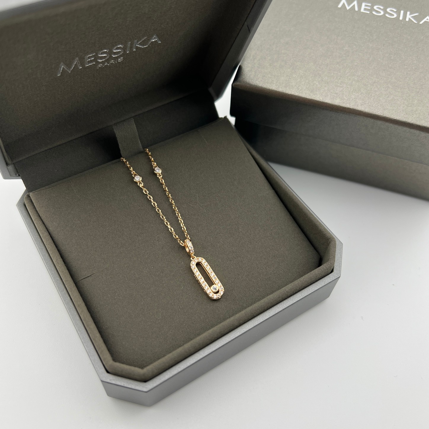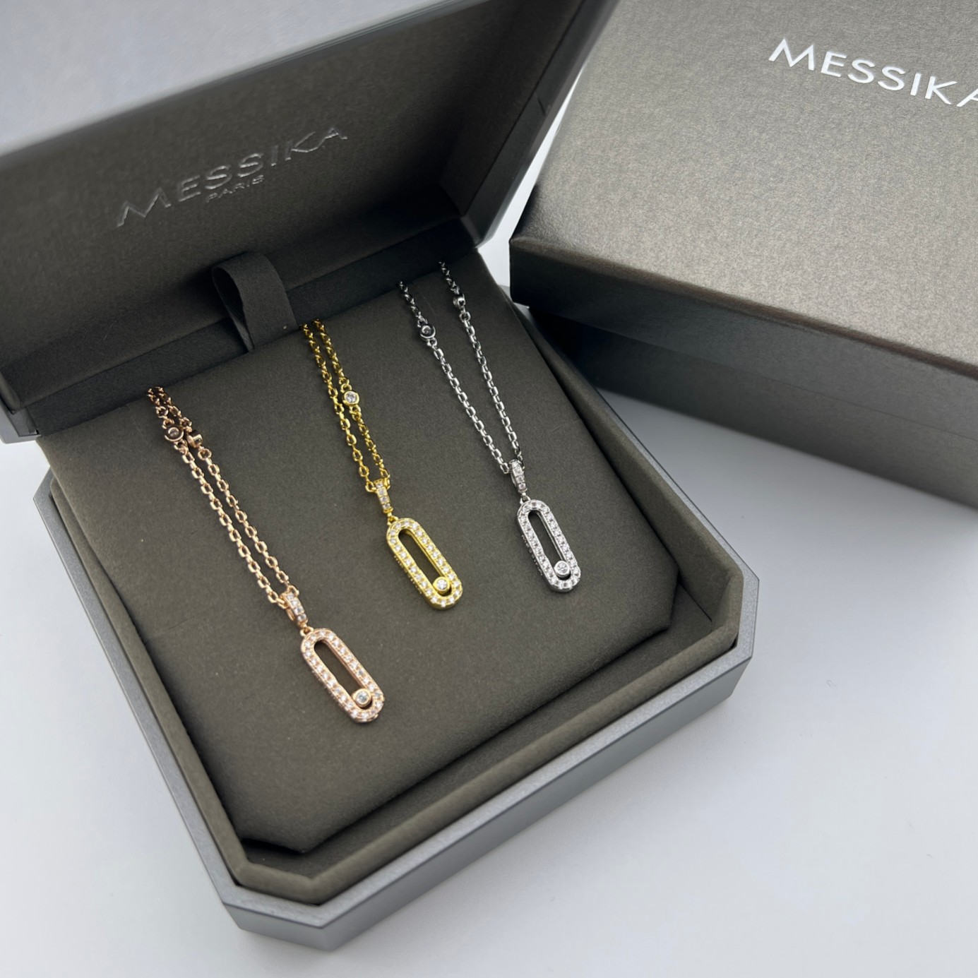 这款首饰是AAAAA 1:1 质量 (非常棒). 使用了和原版一模一样的材料. 商标部分也保持了和梅西卡/Messika一样. 图片拍摄是实物首饰拍摄, 您所收到的实物保证和我们图片一模一样.