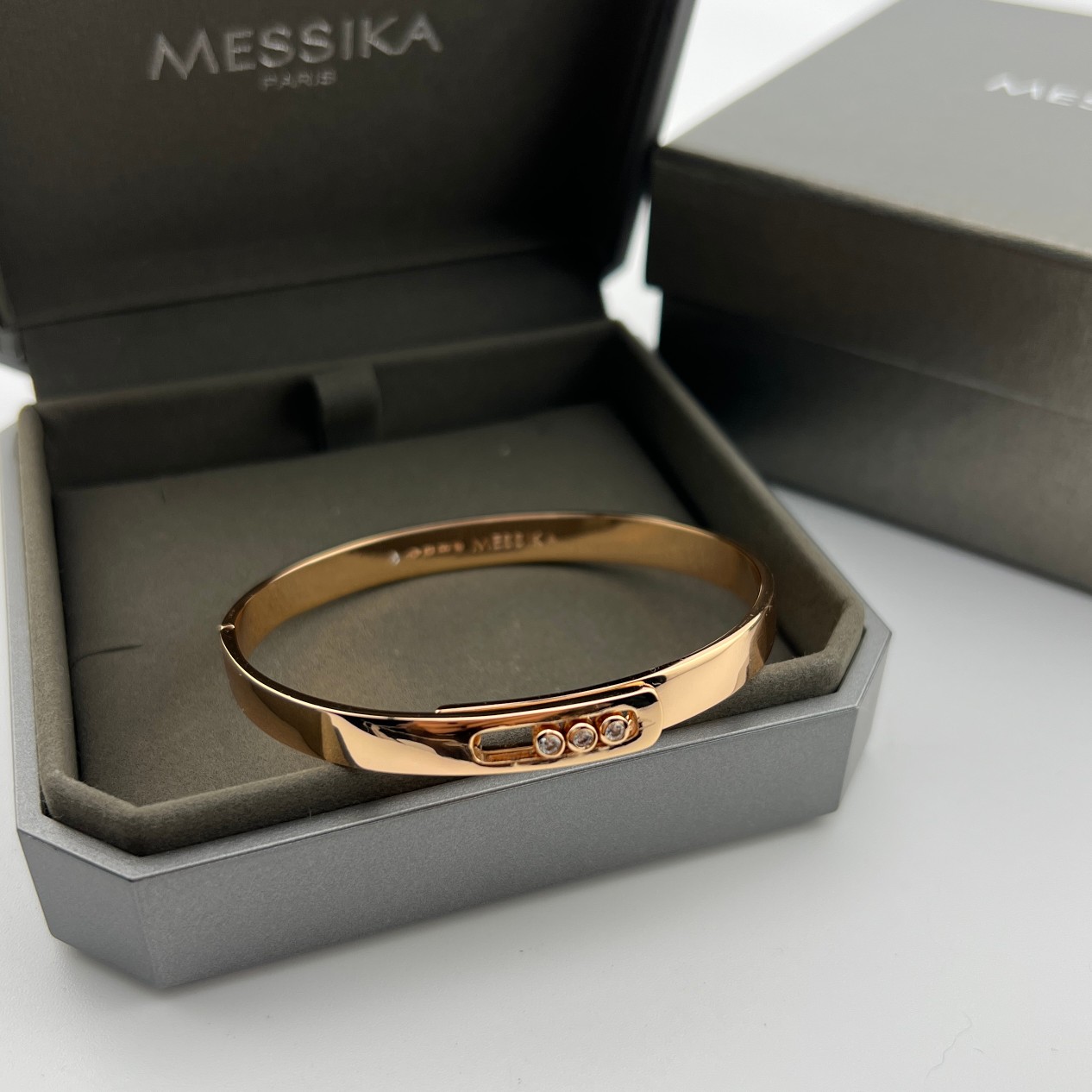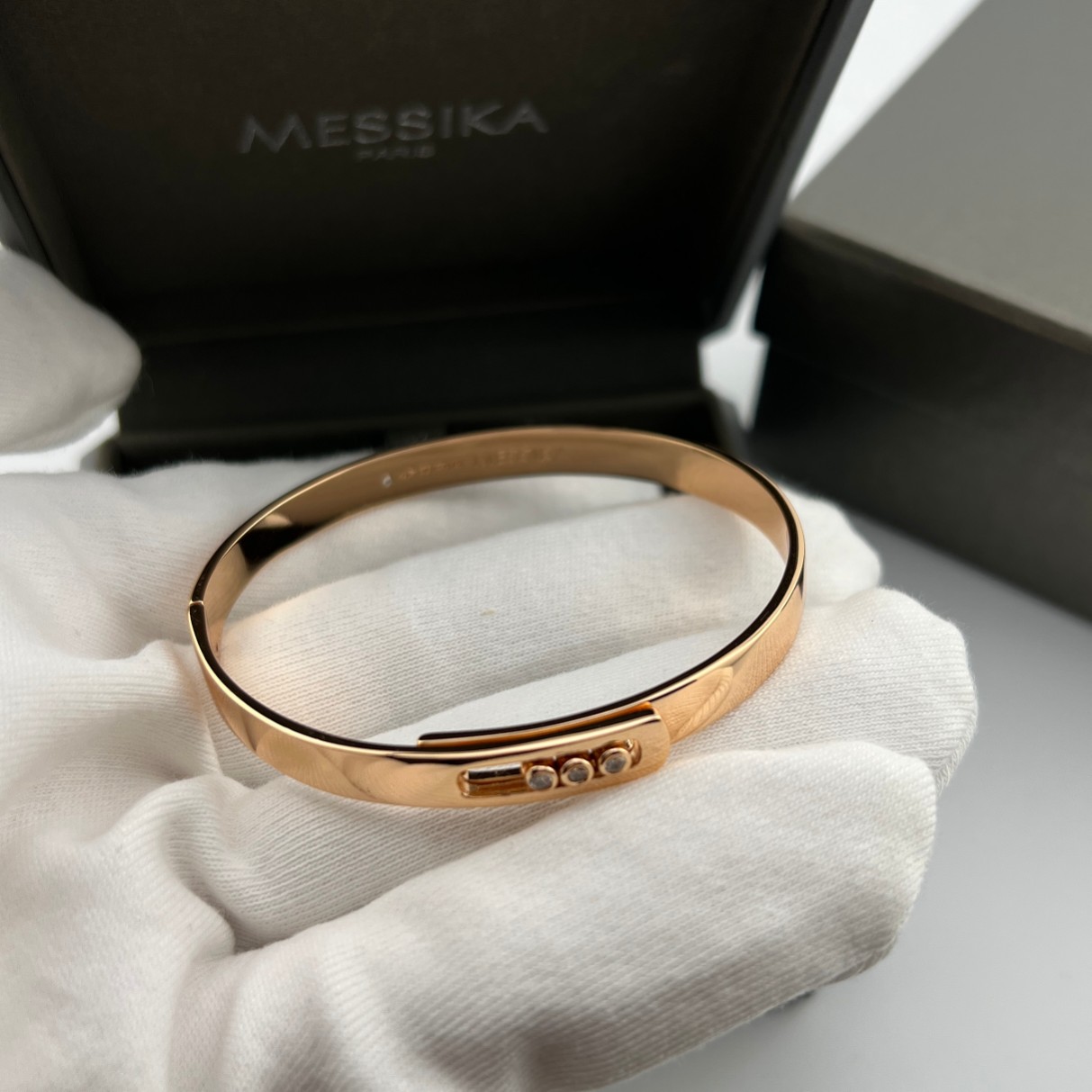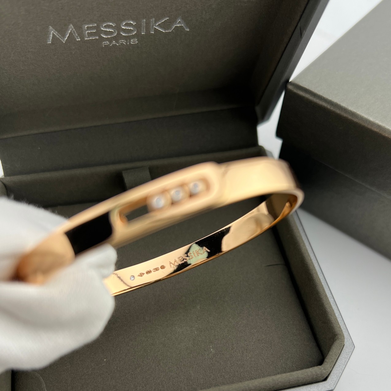 这款首饰是AAAAA 1:1 质量 (非常棒). 使用了和原版一模一样的材料. 商标部分也保持了和梅西卡/Messika一样. 图片拍摄是实物首饰拍摄, 您所收到的实物保证和我们图片一模一样.
