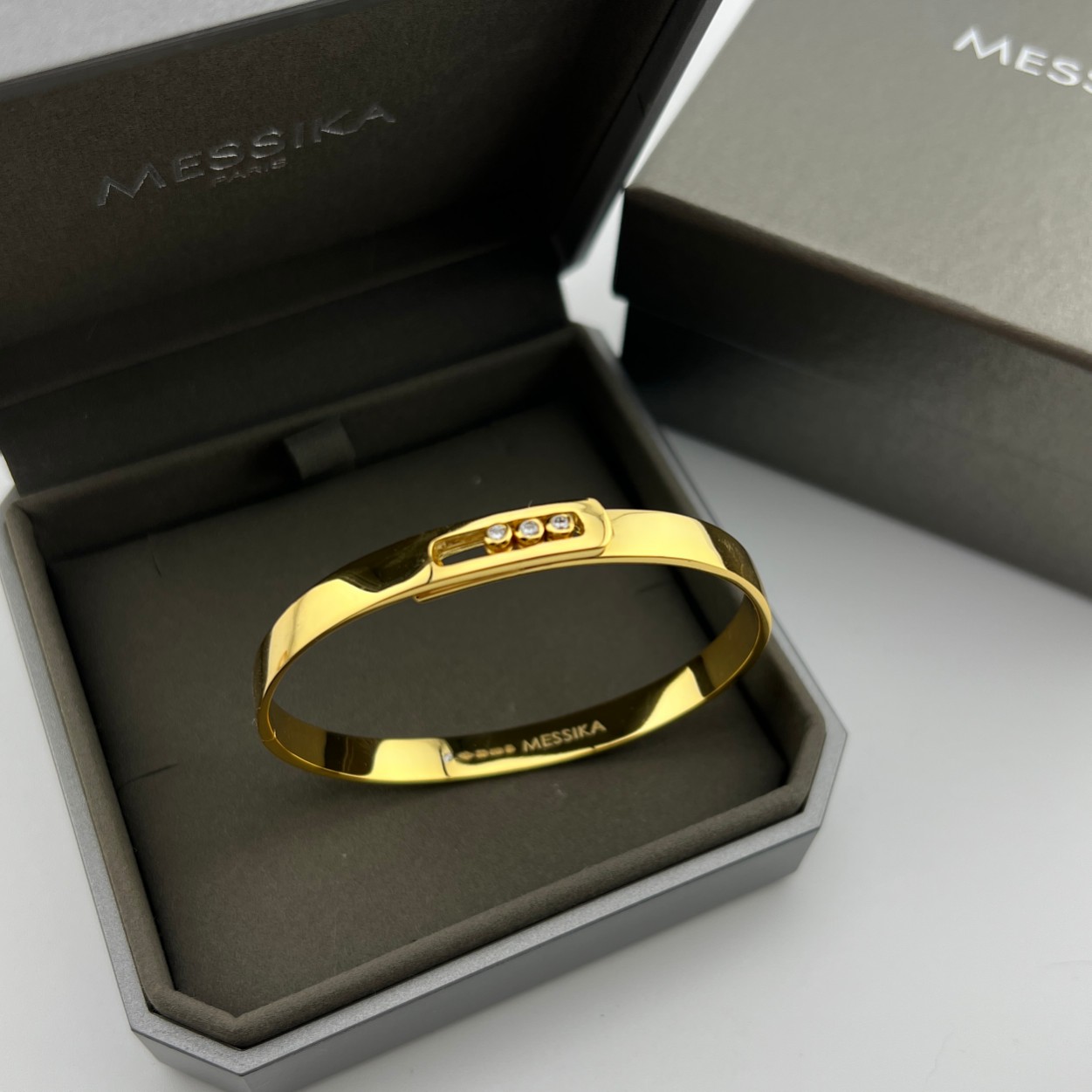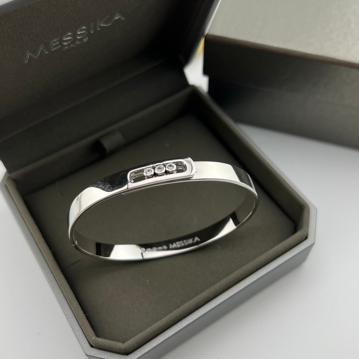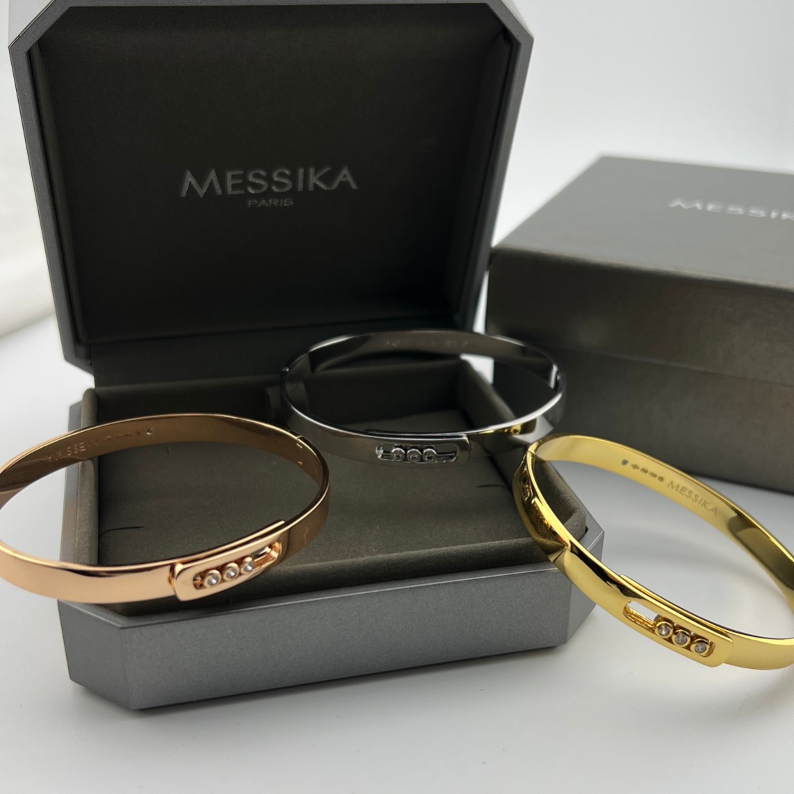 这款首饰是AAAAA 1:1 质量 (非常棒). 使用了和原版一模一样的材料. 商标部分也保持了和梅西卡/Messika一样. 图片拍摄是实物首饰拍摄, 您所收到的实物保证和我们图片一模一样.