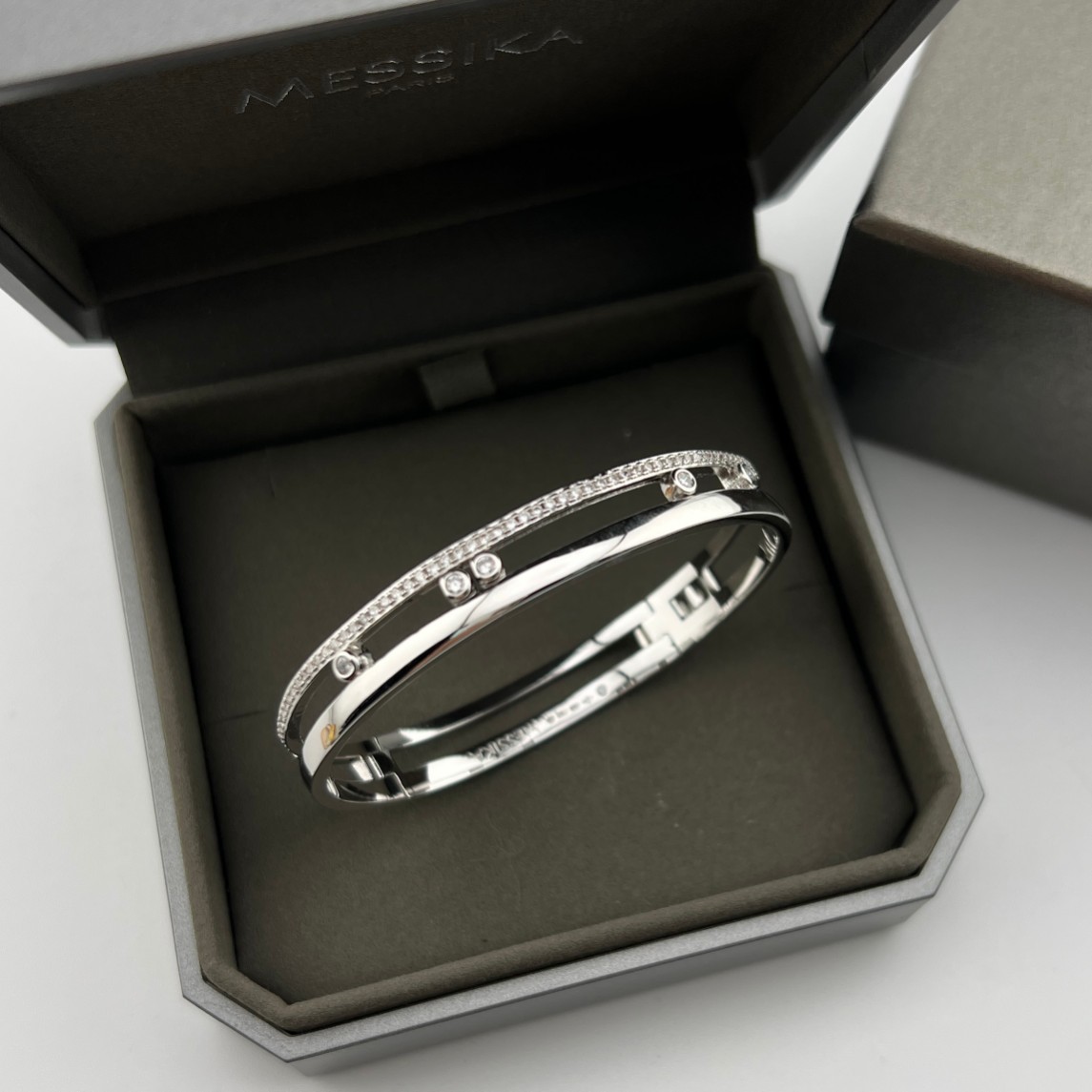 这款首饰是AAAAA 1:1 质量 (非常棒). 使用了和原版一模一样的材料. 商标部分也保持了和梅西卡/Messika一样. 图片拍摄是实物首饰拍摄, 您所收到的实物保证和我们图片一模一样.