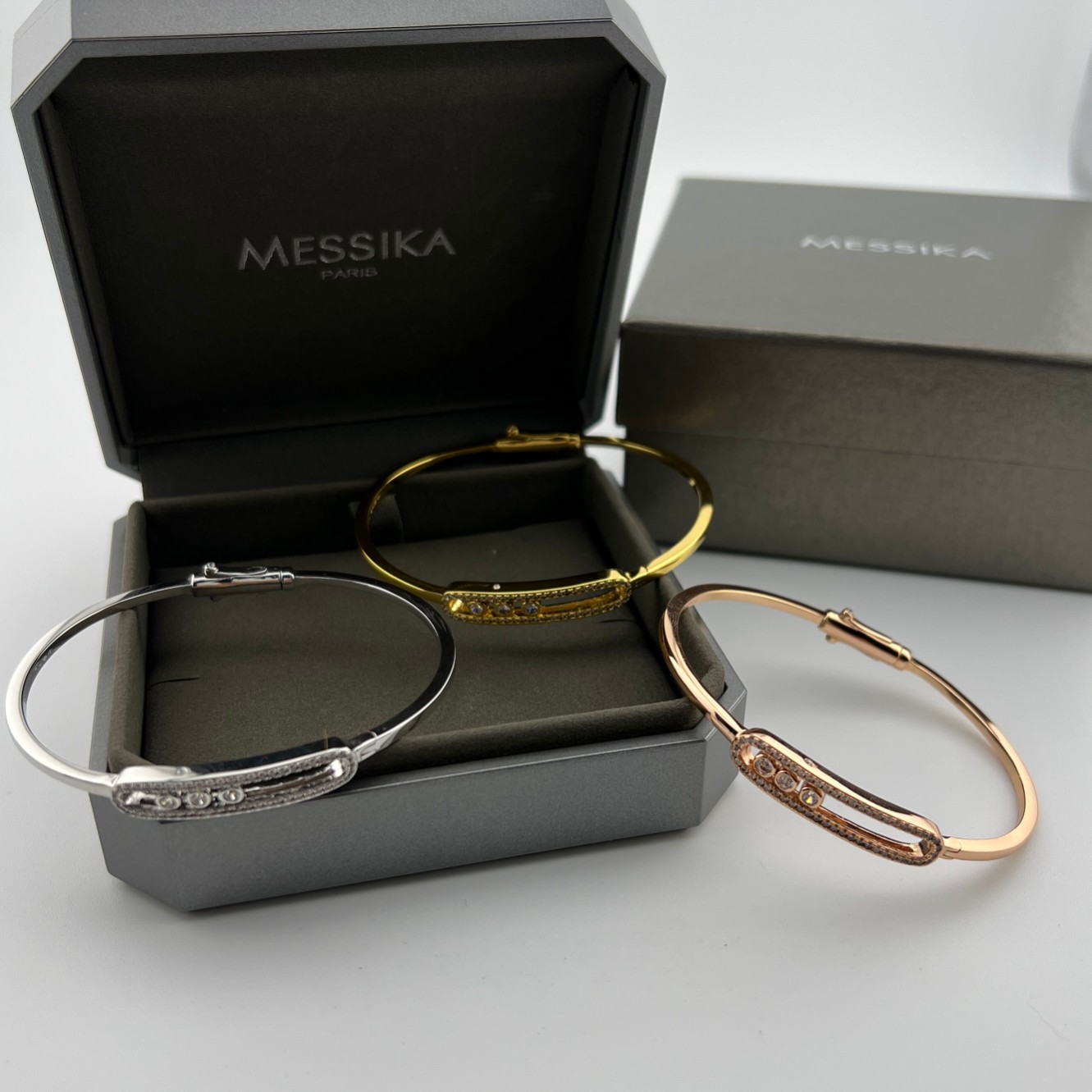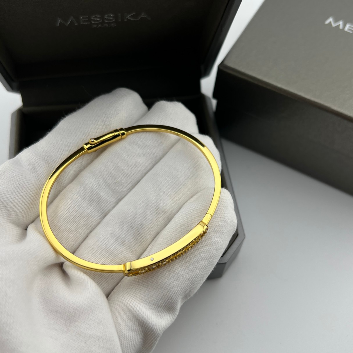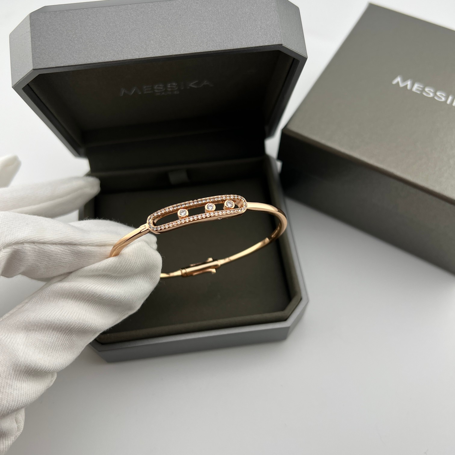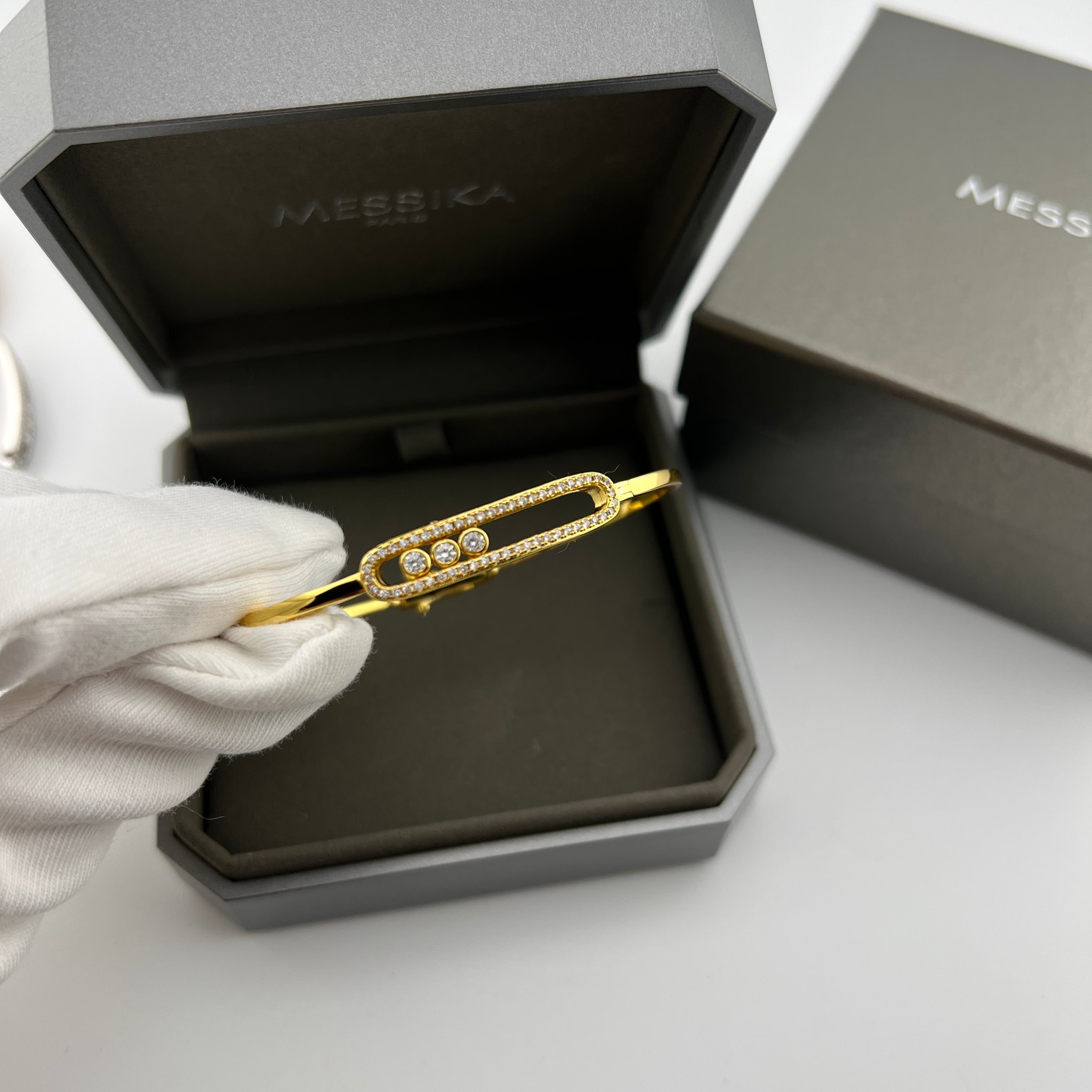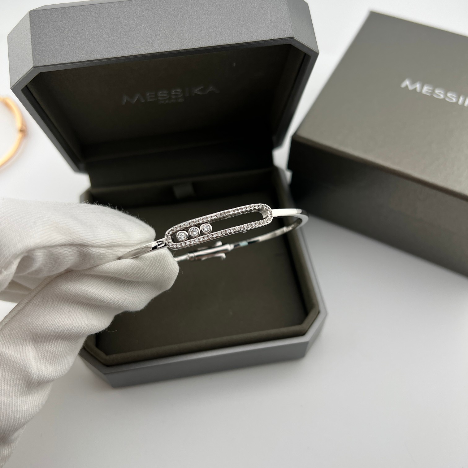这款首饰是AAAAA 1:1 质量 (非常棒). 使用了和原版一模一样的材料. 商标部分也保持了和梅西卡/Messika一样. 图片拍摄是实物首饰拍摄, 您所收到的实物保证和我们图片一模一样.