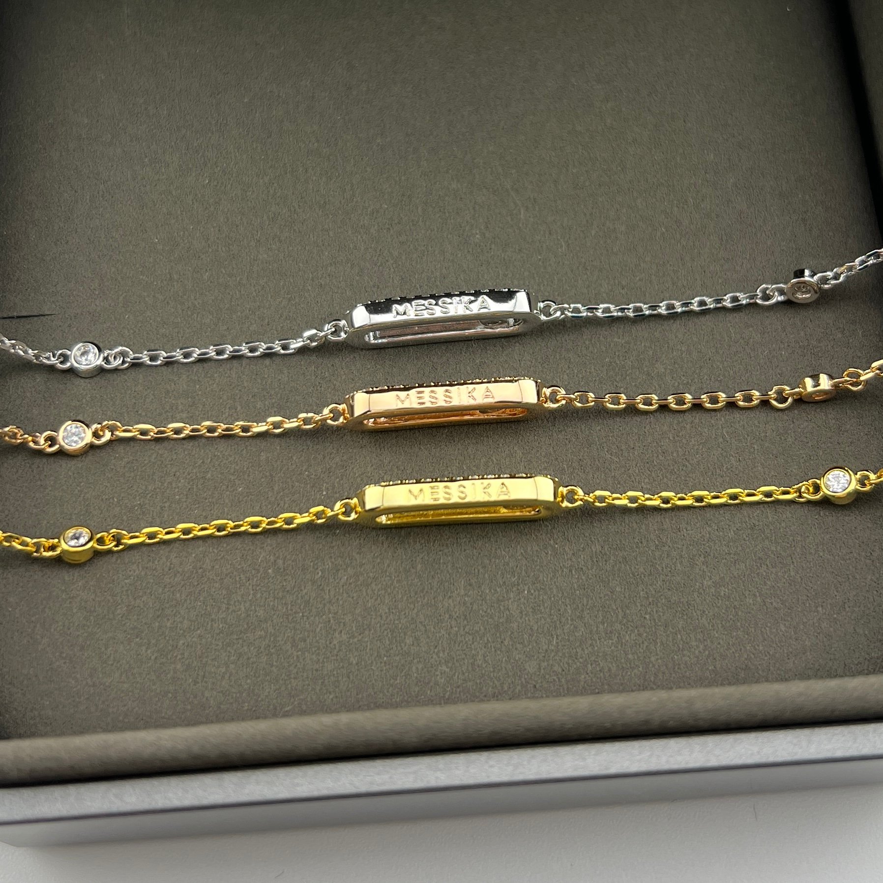 这款首饰是AAAAA 1:1 质量 (非常棒). 使用了和原版一模一样的材料. 商标部分也保持了和梅西卡/Messika一样. 图片拍摄是实物首饰拍摄, 您所收到的实物保证和我们图片一模一样.