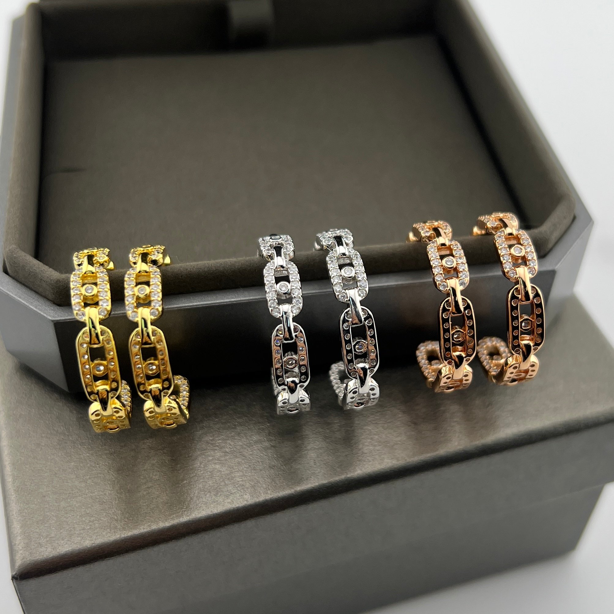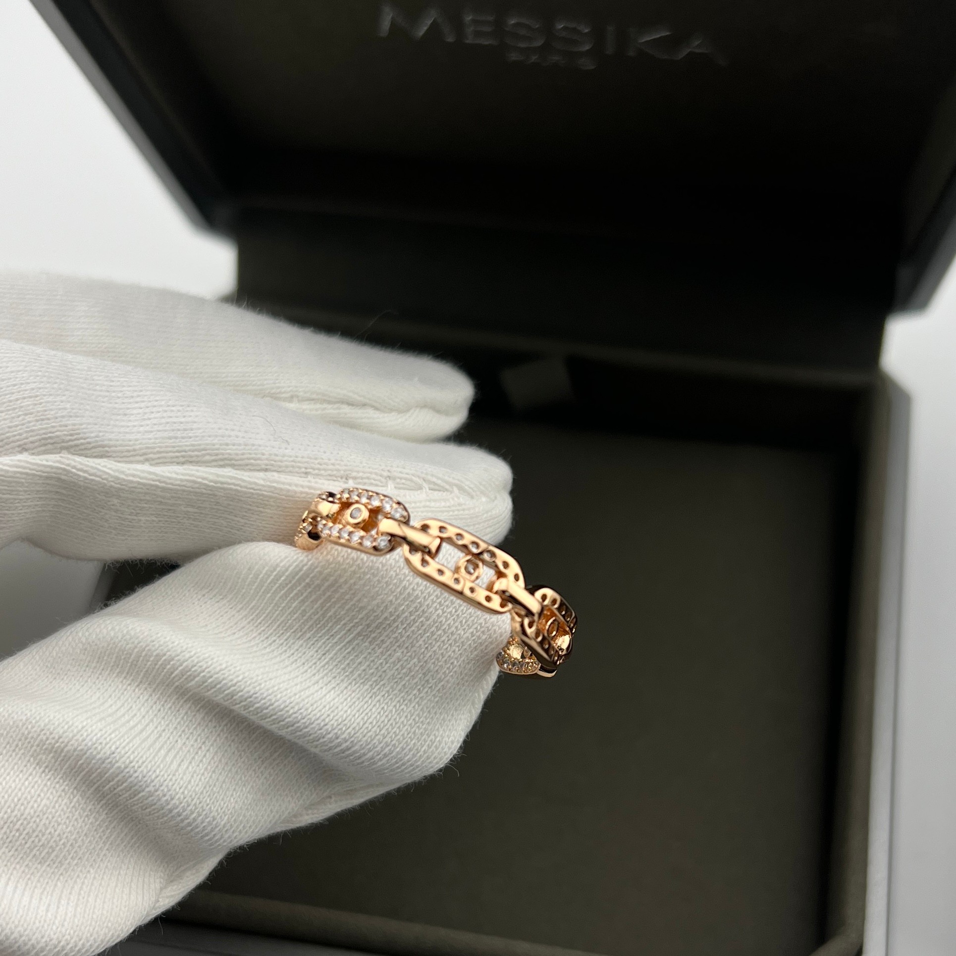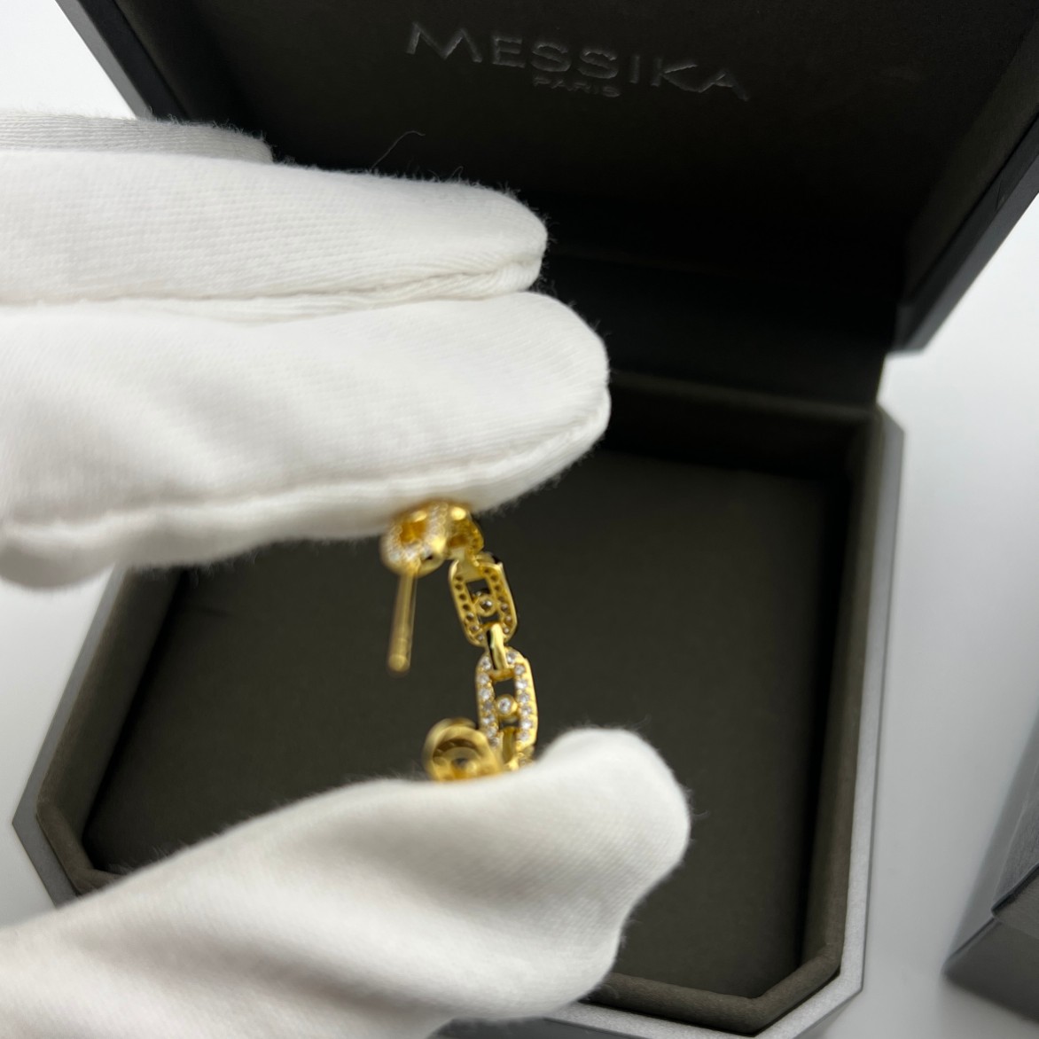 这款首饰是AAAAA 1:1 质量 (非常棒). 使用了和原版一模一样的材料. 商标部分也保持了和梅西卡/Messika一样. 图片拍摄是实物首饰拍摄, 您所收到的实物保证和我们图片一模一样.