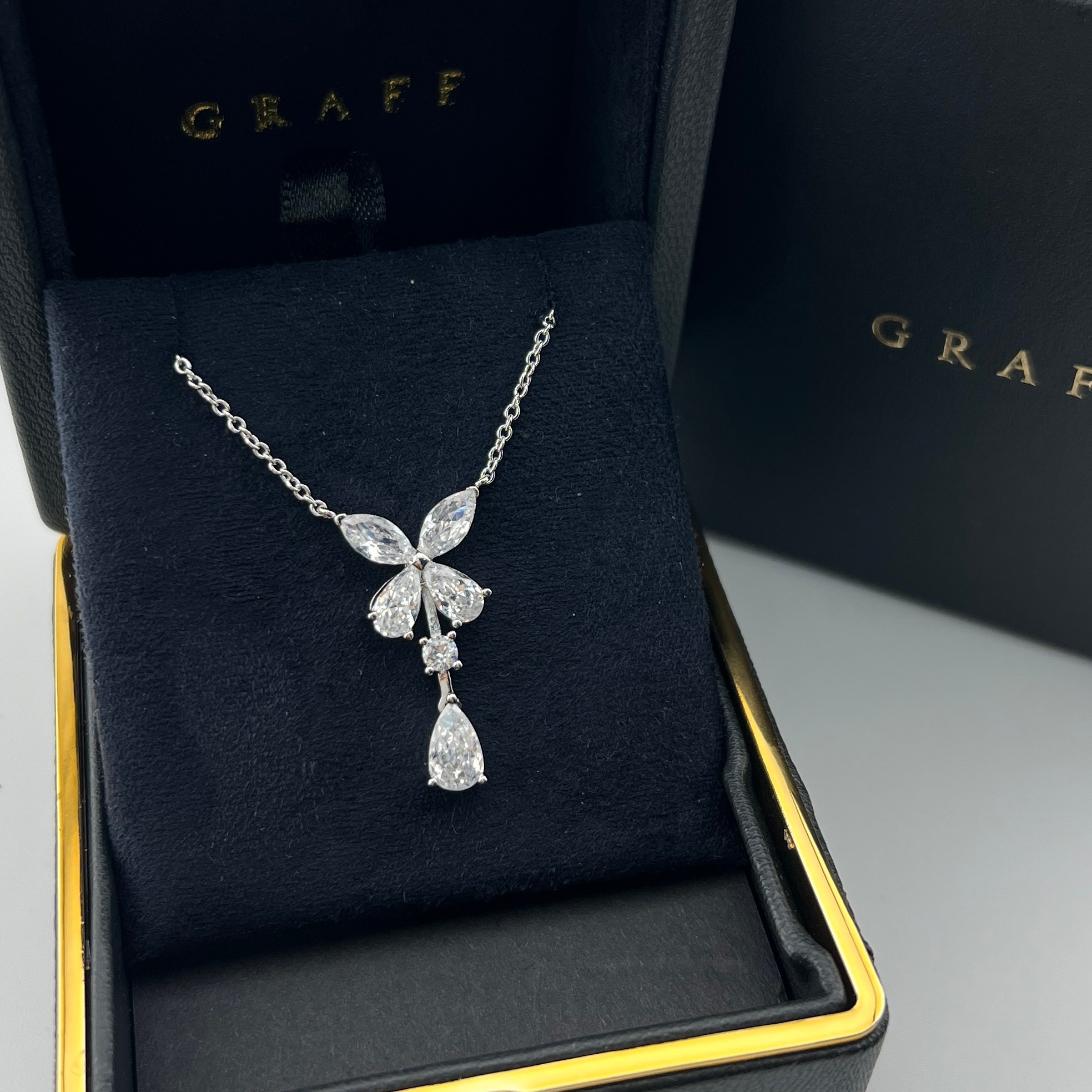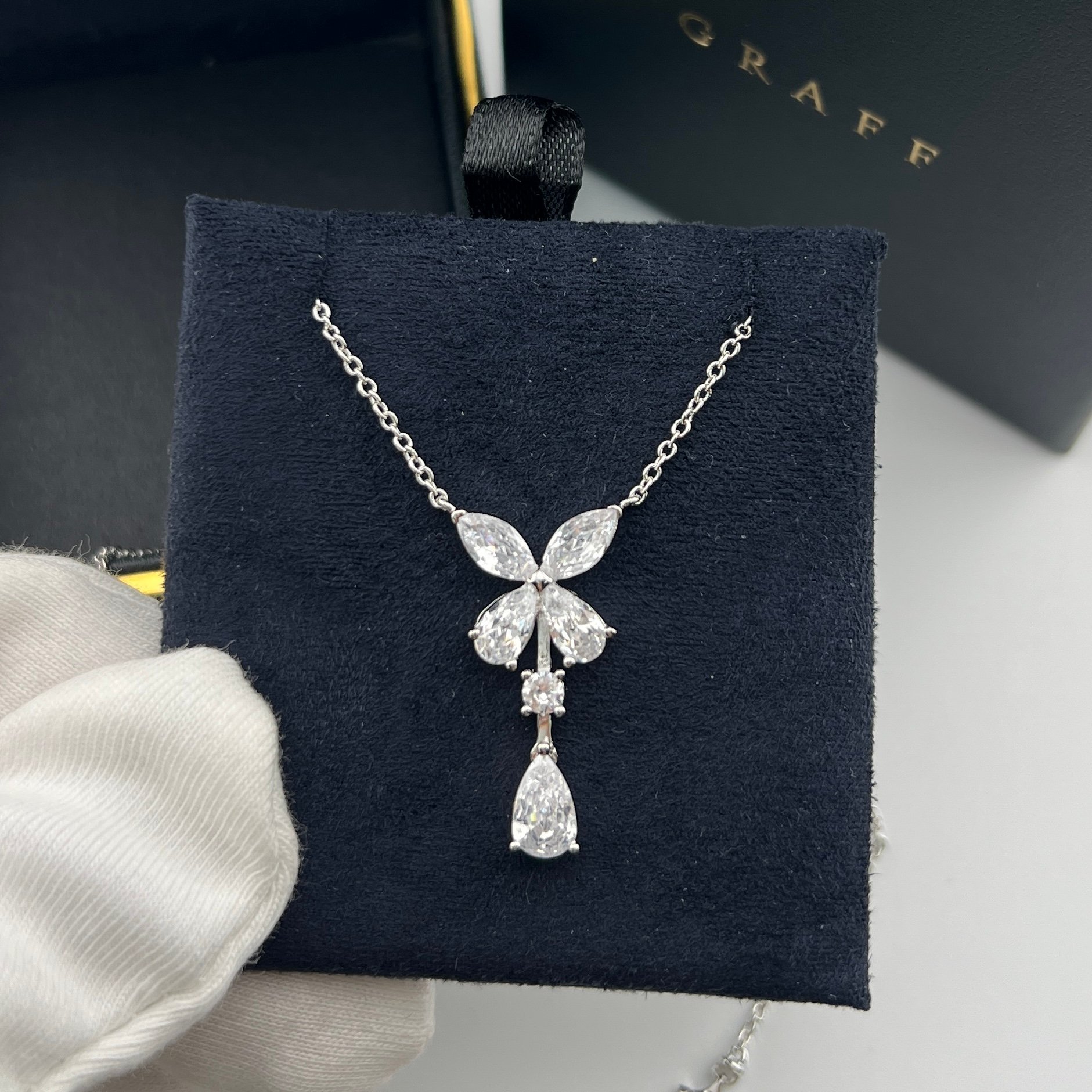 这款首饰是AAAAA 1:1 质量 (非常棒). 使用了和原版一模一样的材料. 商标部分也保持了和GRAFF一样. 图片拍摄是实物首饰拍摄, 您所收到的实物保证和我们图片一模一样.