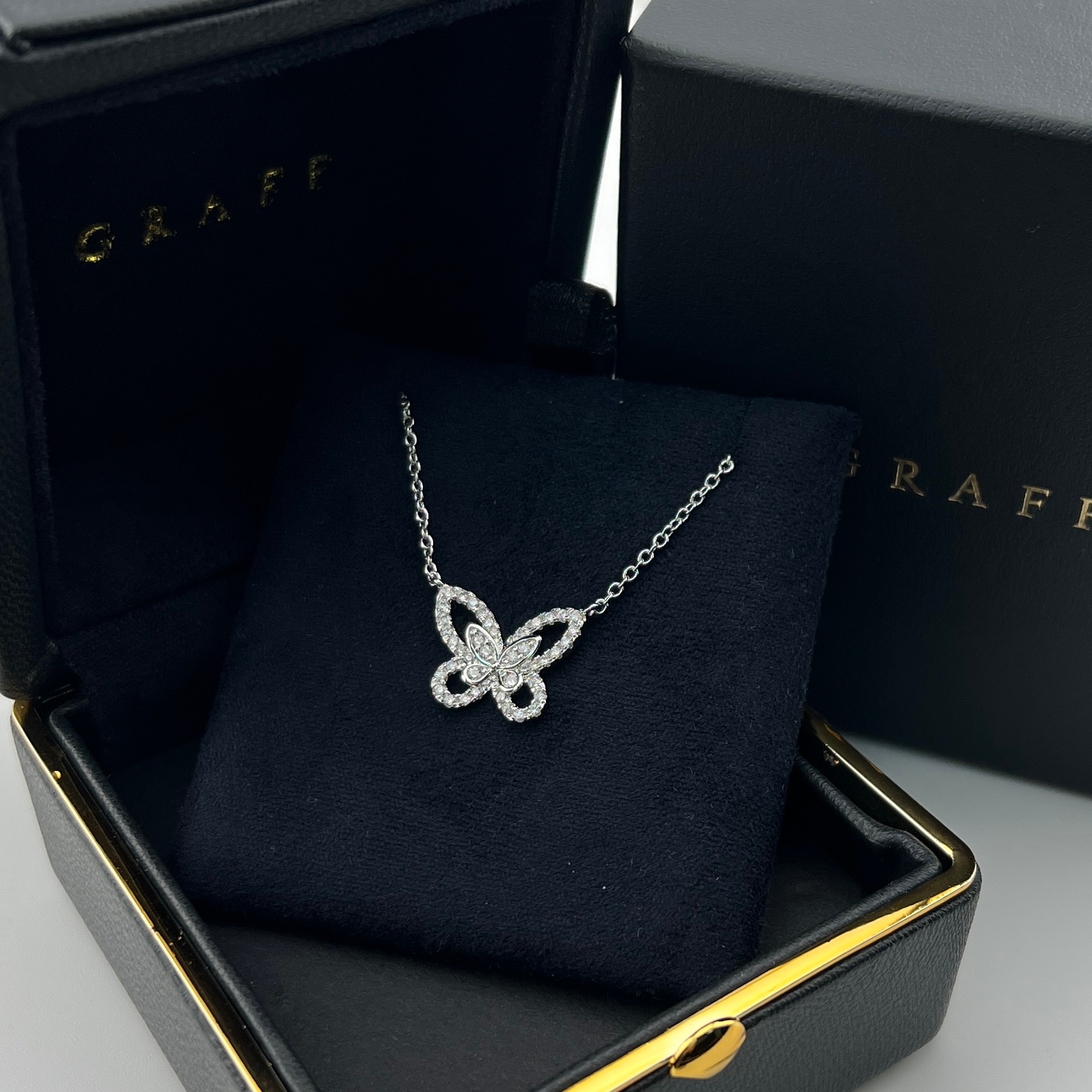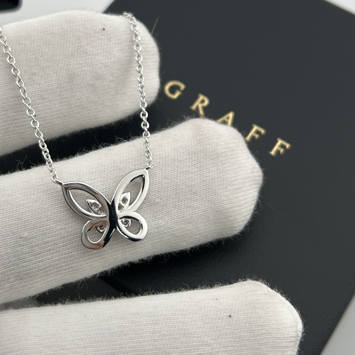 这款首饰是AAAAA 1:1 质量 (非常棒). 使用了和原版一模一样的材料. 商标部分也保持了和GRAFF一样. 图片拍摄是实物首饰拍摄, 您所收到的实物保证和我们图片一模一样.