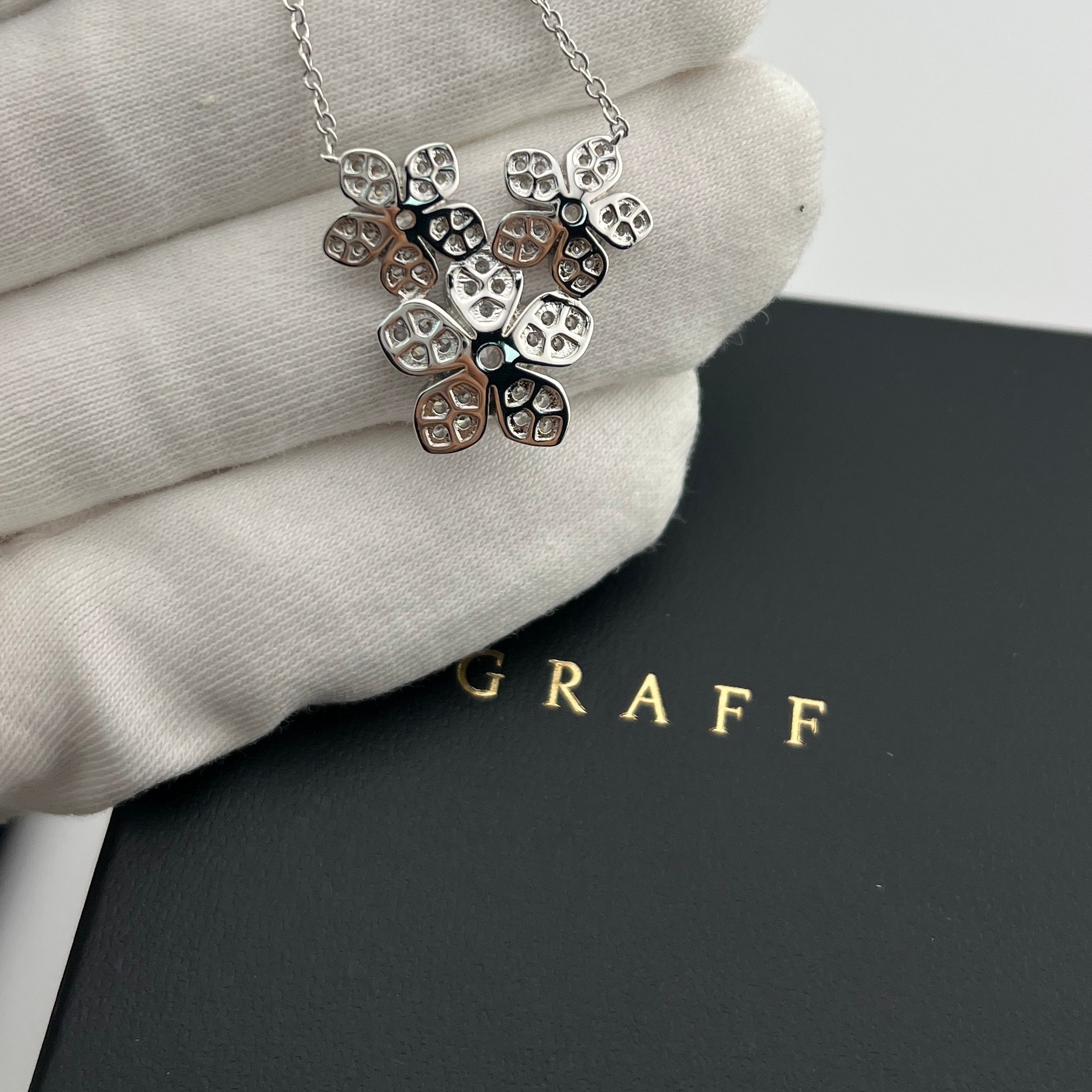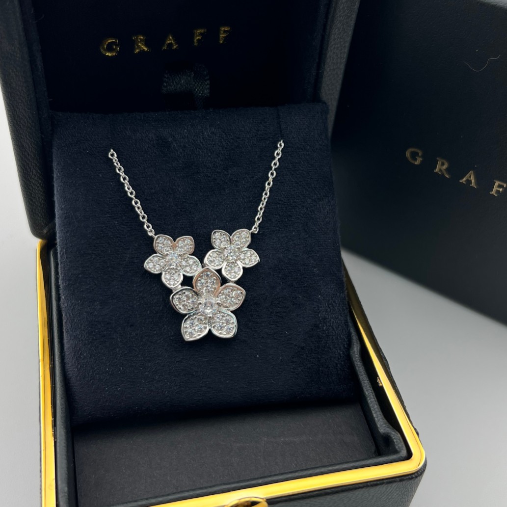 这款首饰是AAAAA 1:1 质量 (非常棒). 使用了和原版一模一样的材料. 商标部分也保持了和GRAFF一样. 图片拍摄是实物首饰拍摄, 您所收到的实物保证和我们图片一模一样.