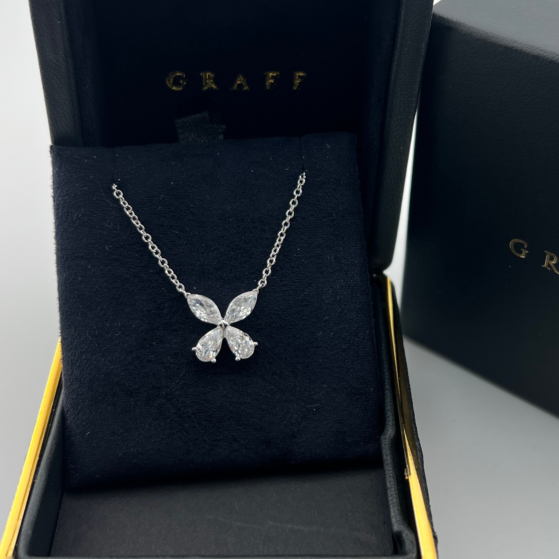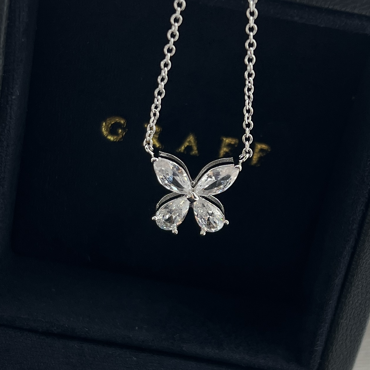 这款首饰是AAAAA 1:1 质量 (非常棒). 使用了和原版一模一样的材料. 商标部分也保持了和GRAFF一样. 图片拍摄是实物首饰拍摄, 您所收到的实物保证和我们图片一模一样.