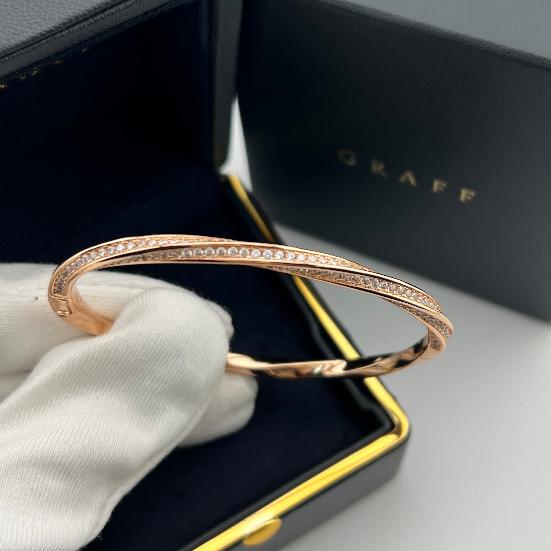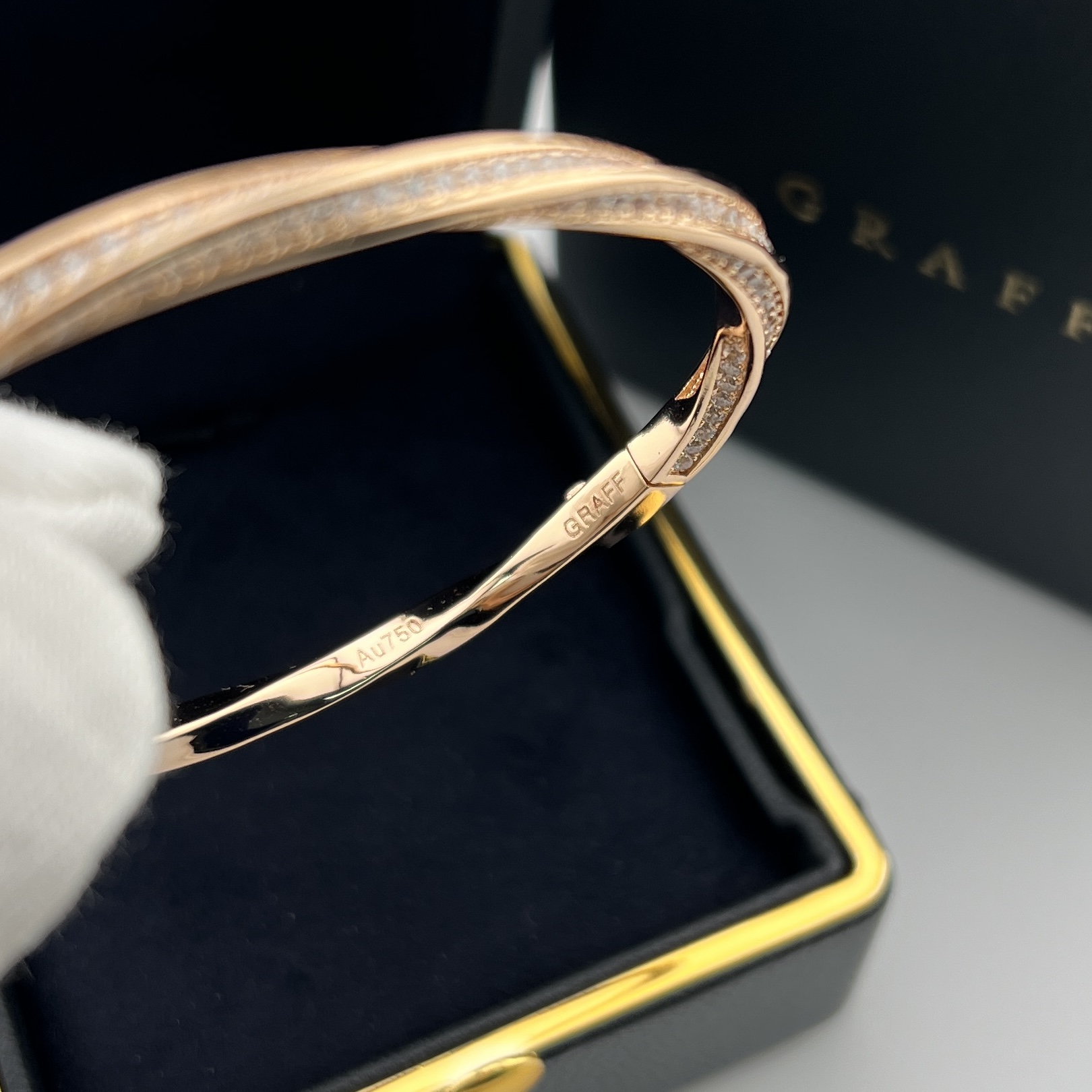 这款首饰是AAAAA 1:1 质量 (非常棒). 使用了和原版一模一样的材料. 商标部分也保持了和GRAFF一样. 图片拍摄是实物首饰拍摄, 您所收到的实物保证和我们图片一模一样.