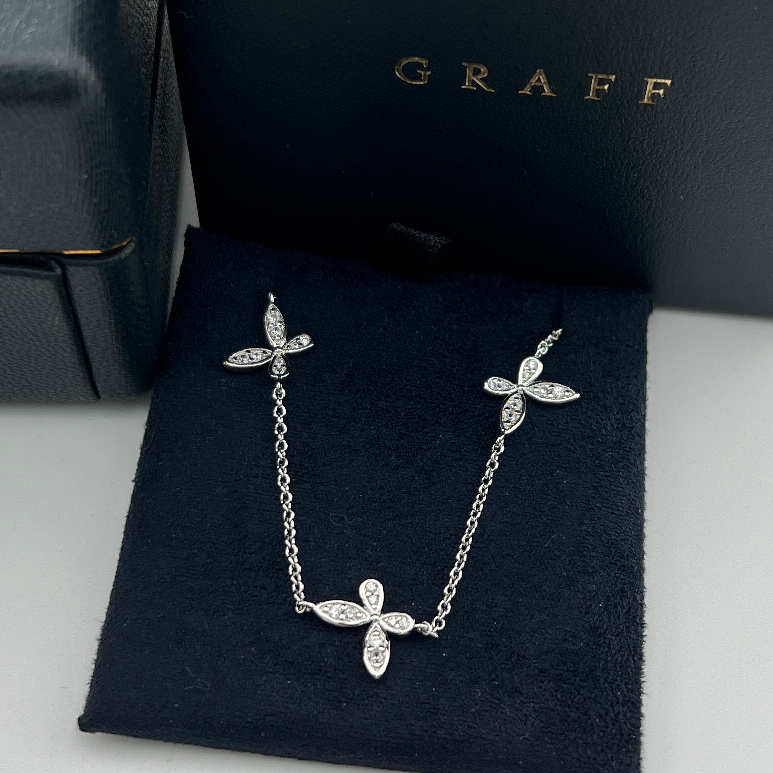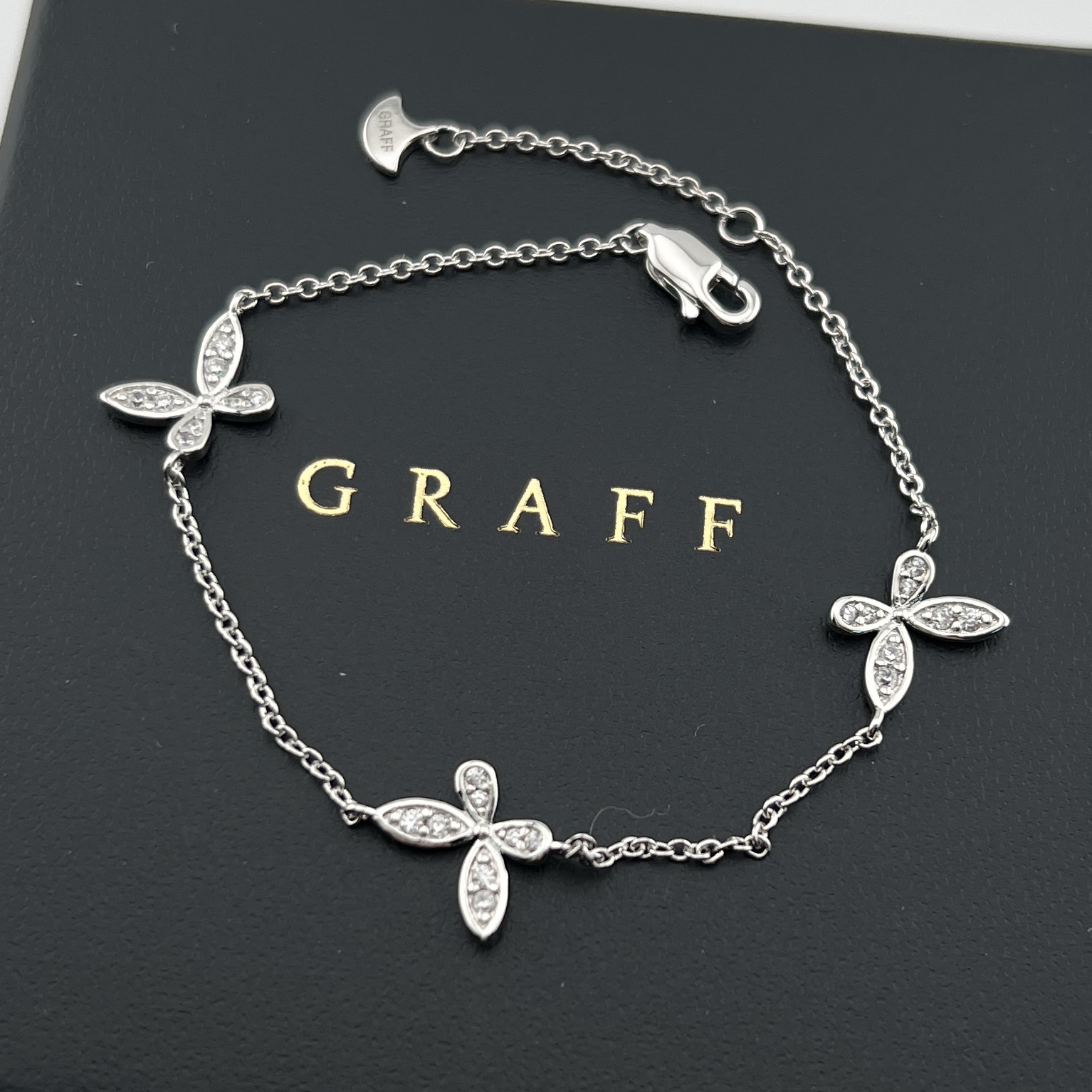这款首饰是AAAAA 1:1 质量 (非常棒). 使用了和原版一模一样的材料. 商标部分也保持了和GRAFF一样. 图片拍摄是实物首饰拍摄, 您所收到的实物保证和我们图片一模一样.