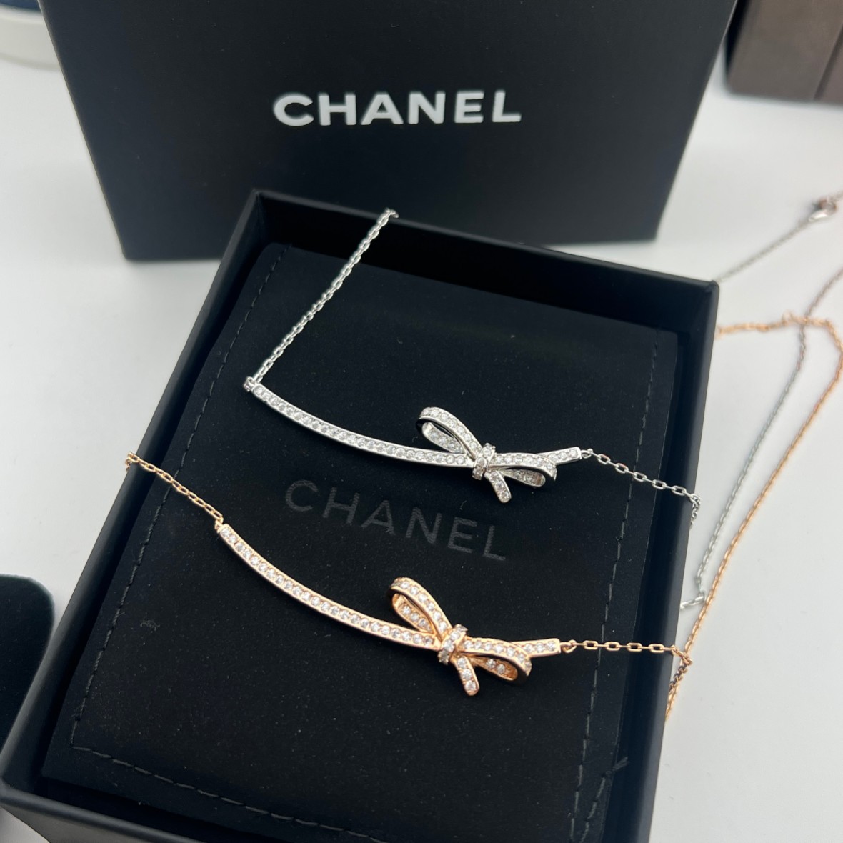这款首饰是AAAAA 1:1 质量 (非常棒). 使用了和原版一模一样的材料. 商标部分也保持了和香奈儿/Chanel一样. 图片拍摄是实物首饰拍摄, 您所收到的实物保证和我们图片一模一样.