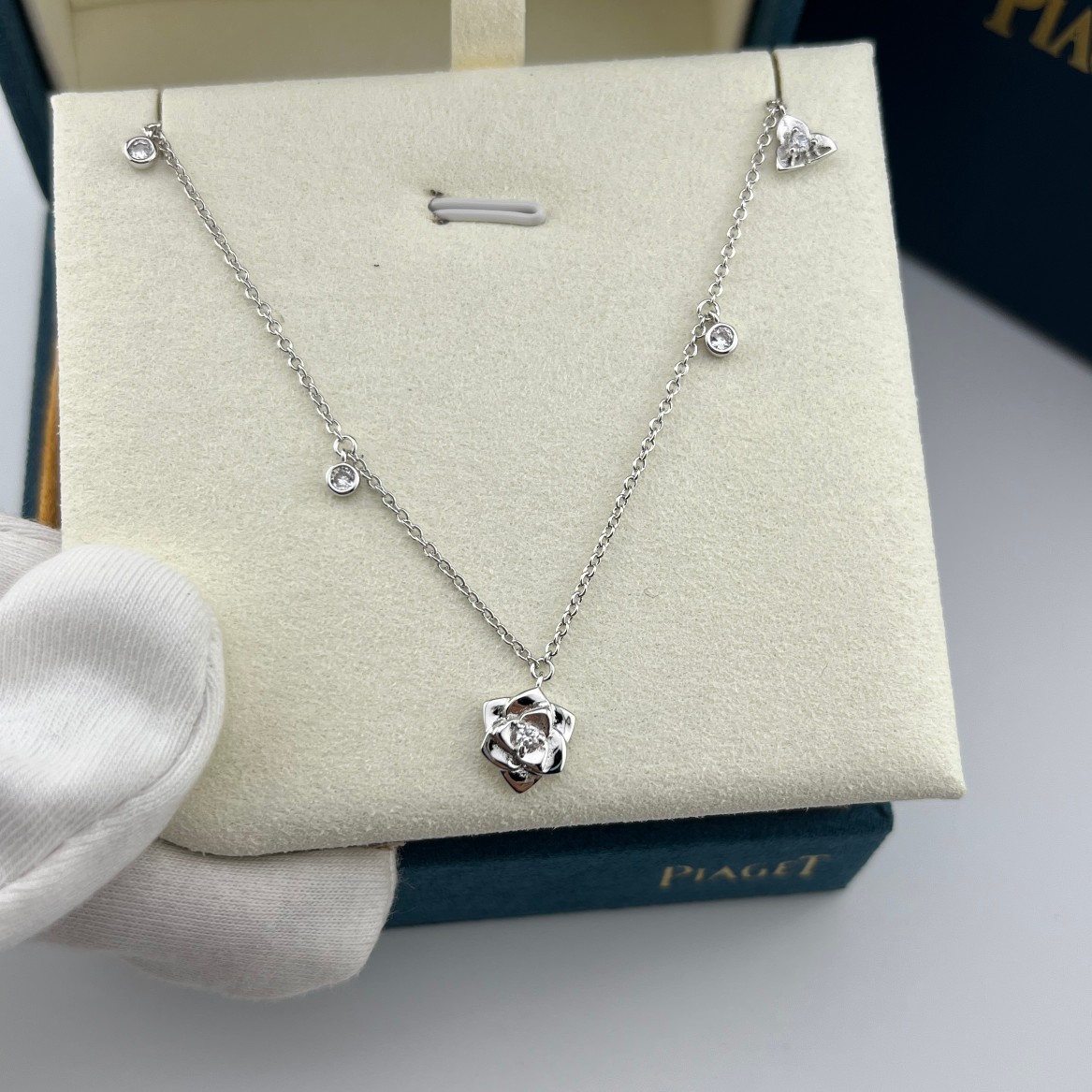 这款首饰是AAAAA 1:1 质量 (非常棒). 使用了和原版一模一样的材料. 商标部分也保持了和伯爵/Piaget一样. 图片拍摄是实物首饰拍摄, 您所收到的实物保证和我们图片一模一样.
