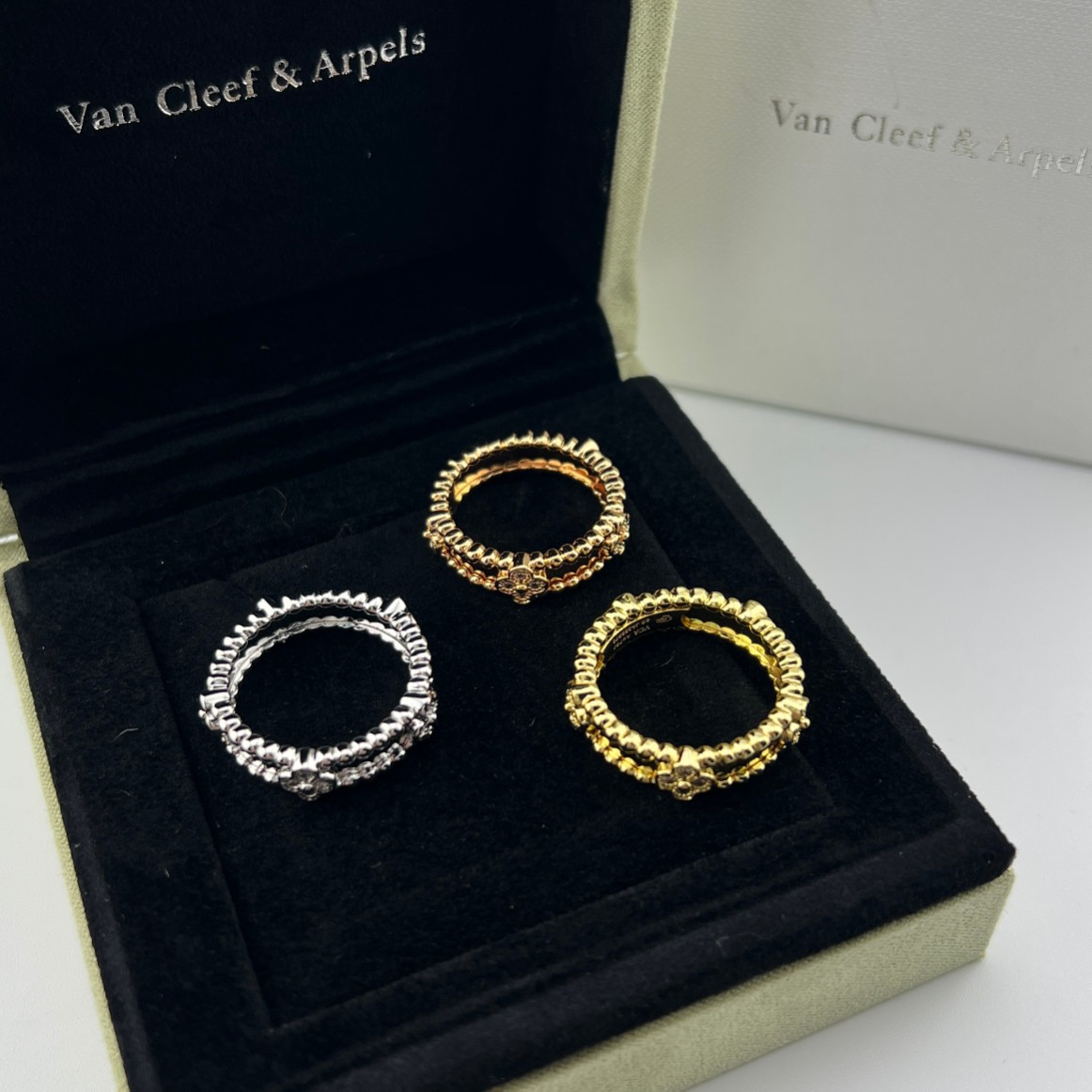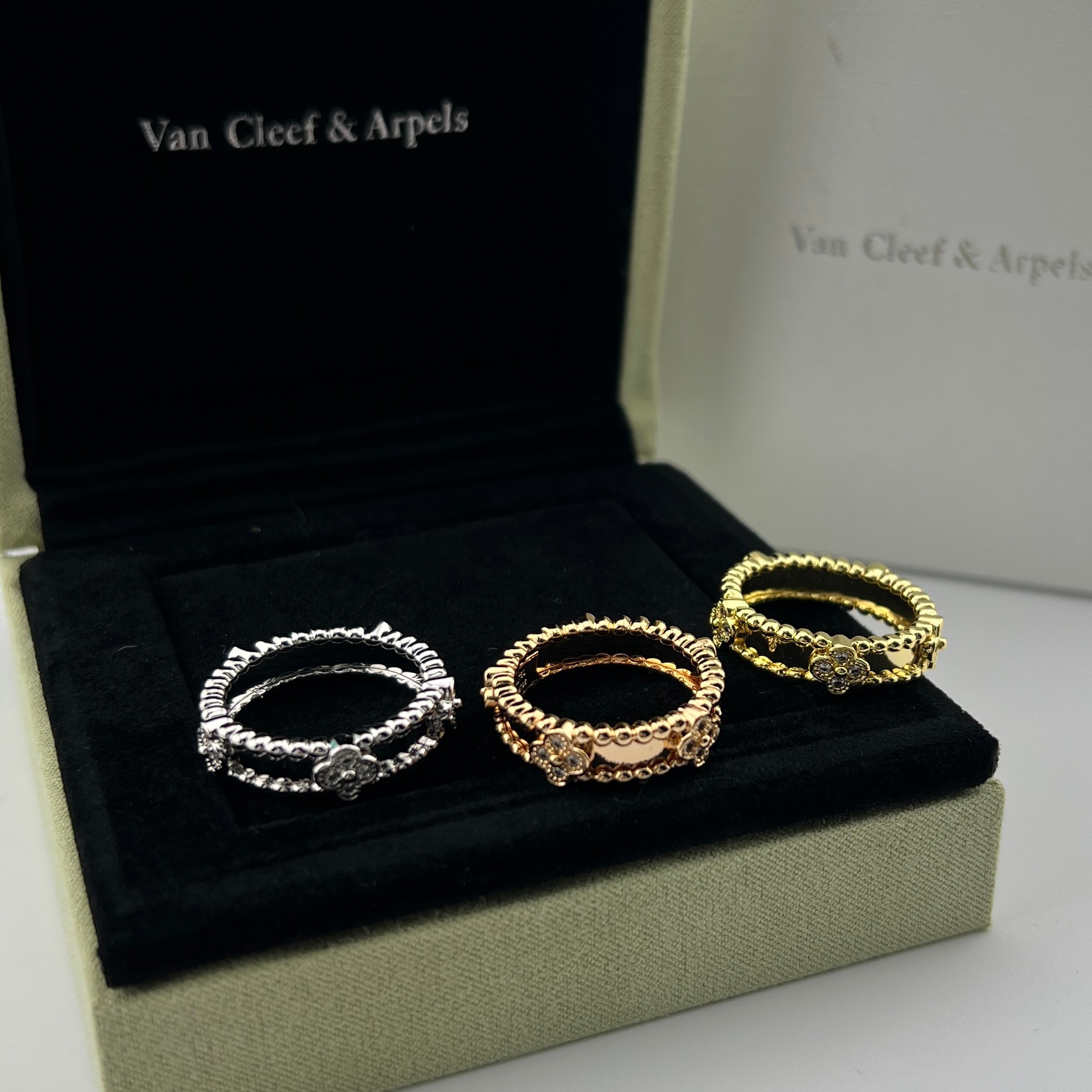 这款首饰是AAAAA 1:1 质量 (非常棒). 使用了和原版一模一样的材料. 商标部分也保持了和梵克雅宝/Van Cleef & Arpels一样. 图片拍摄是实物首饰拍摄, 您所收到的实物保证和我们图片一模一样.