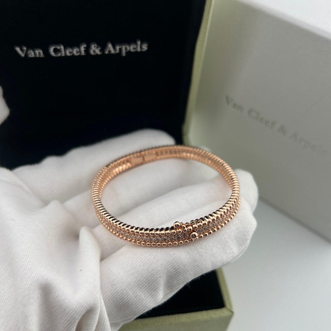 这款首饰是AAAAA 1:1 质量 (非常棒). 使用了和原版一模一样的材料. 商标部分也保持了和梵克雅宝/Van Cleef & Arpels一样. 图片拍摄是实物首饰拍摄, 您所收到的实物保证和我们图片一模一样.
