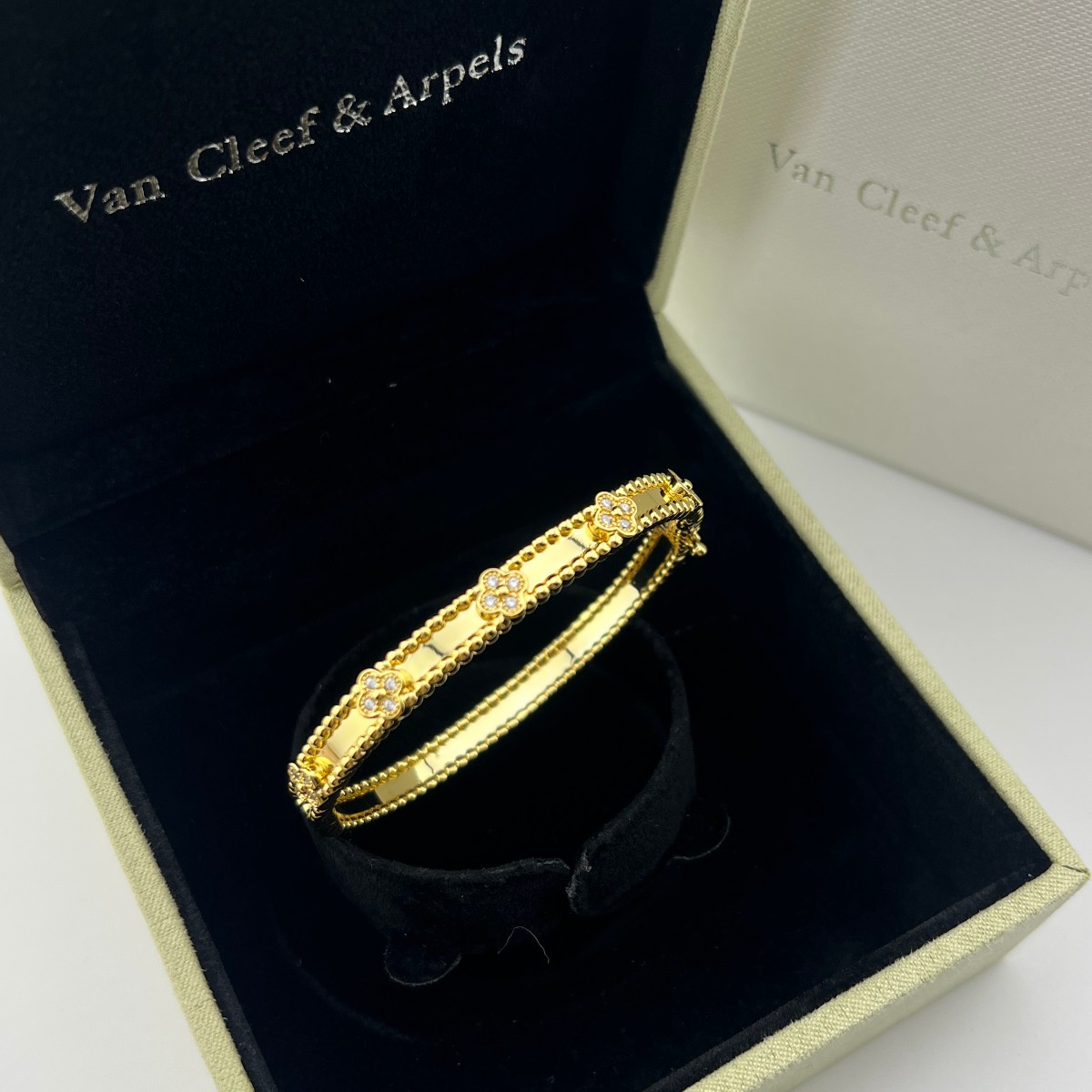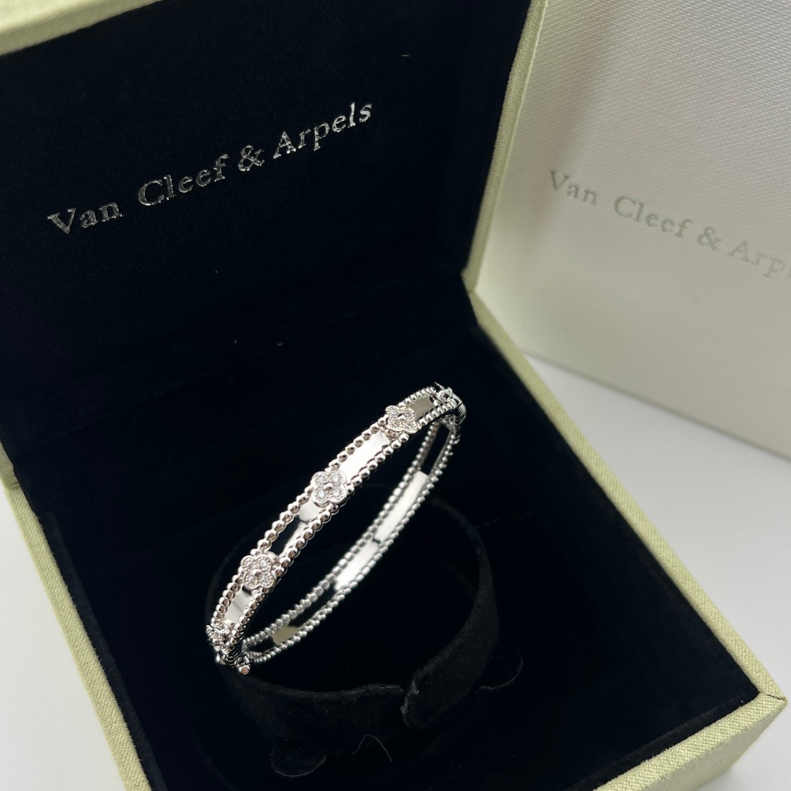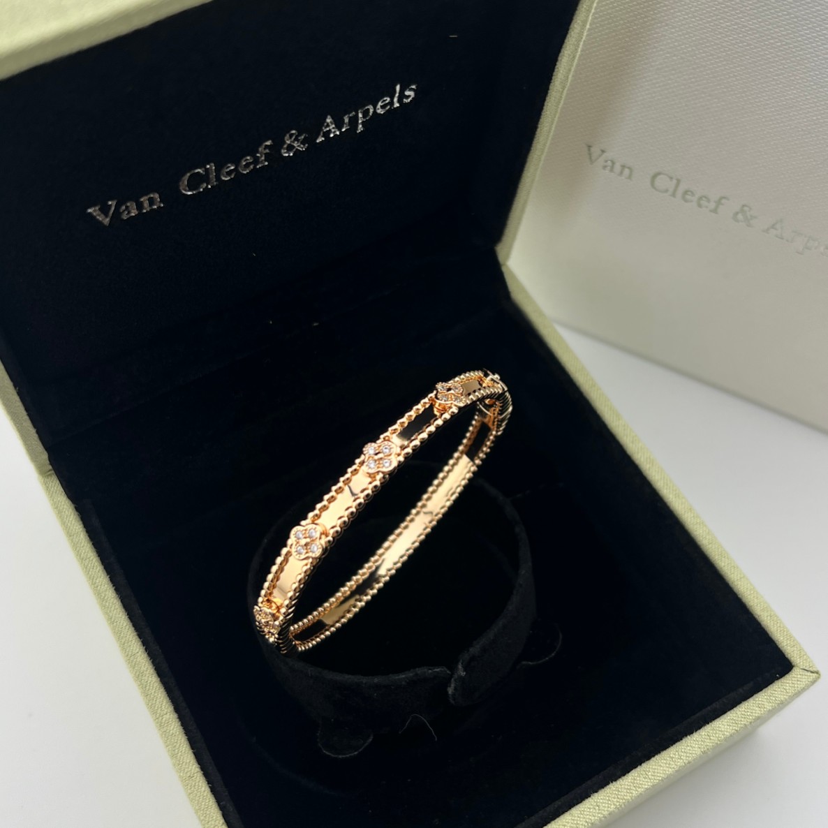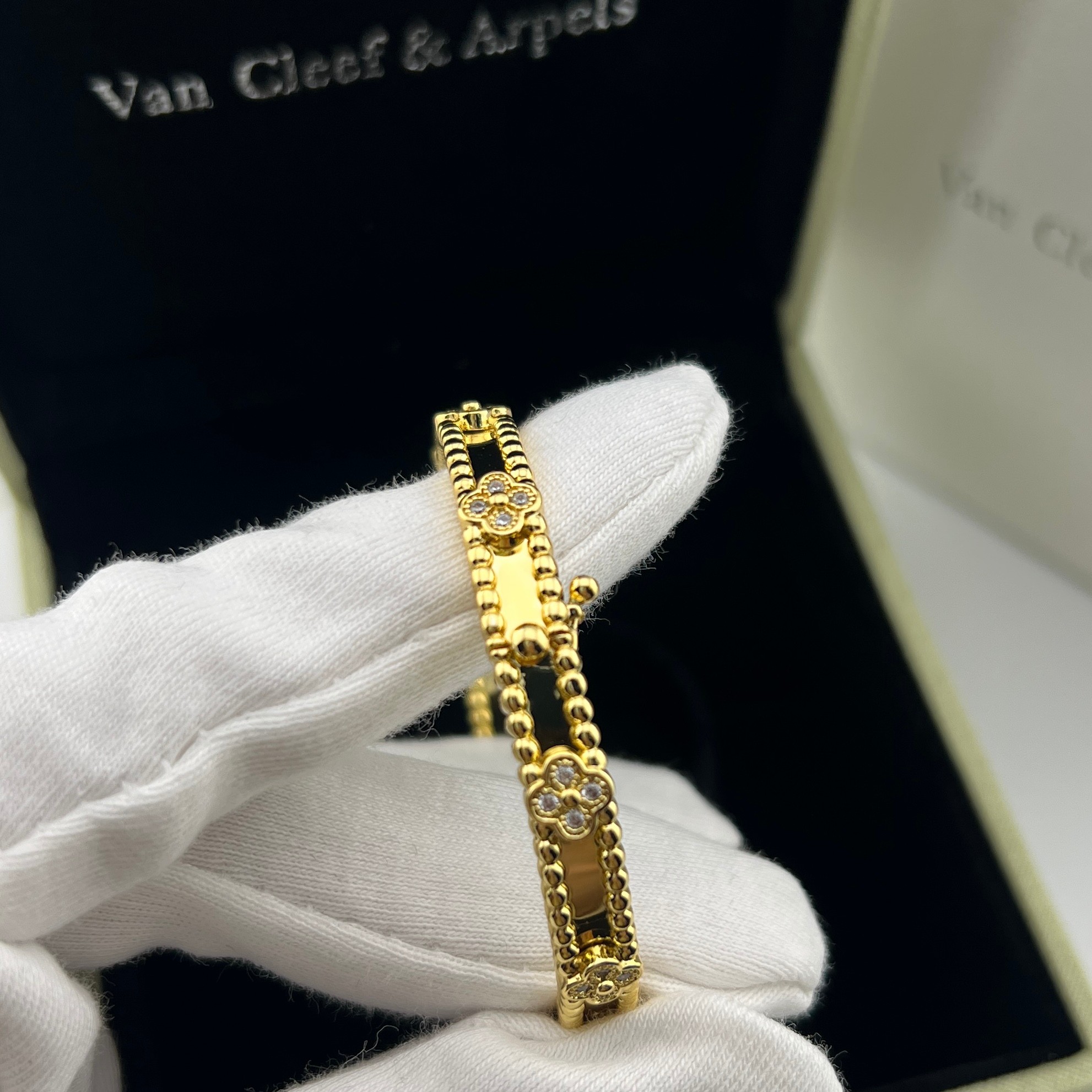 这款首饰是AAAAA 1:1 质量 (非常棒). 使用了和原版一模一样的材料. 商标部分也保持了和梵克雅宝/Van Cleef & Arpels一样. 图片拍摄是实物首饰拍摄, 您所收到的实物保证和我们图片一模一样.