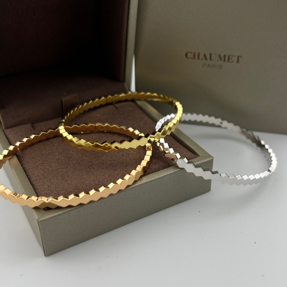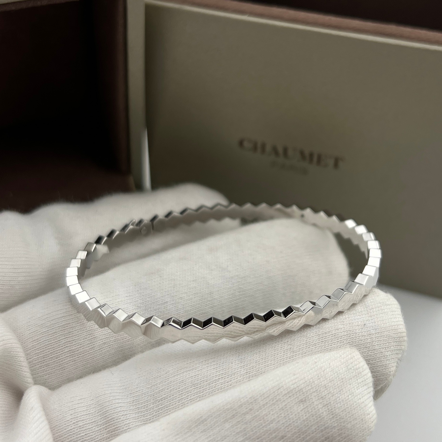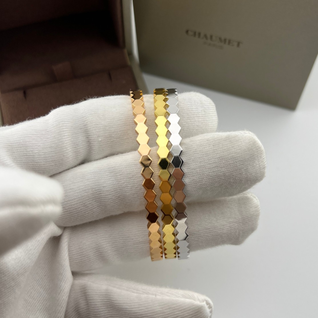 这款首饰是AAAAA 1:1 质量 (非常棒). 使用了和原版一模一样的材料. 商标部分也保持了和Chaumet一样. 图片拍摄是实物首饰拍摄, 您所收到的实物保证和我们图片一模一样.