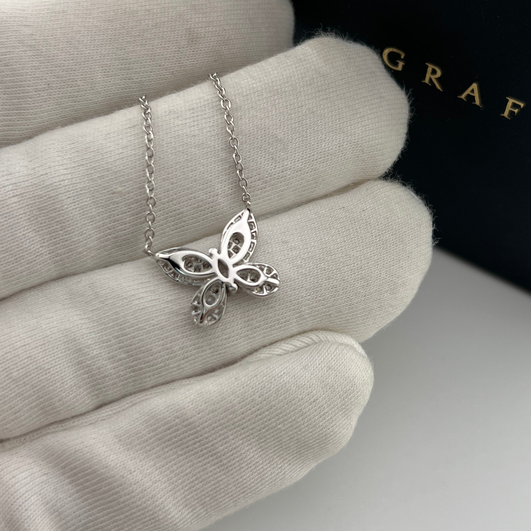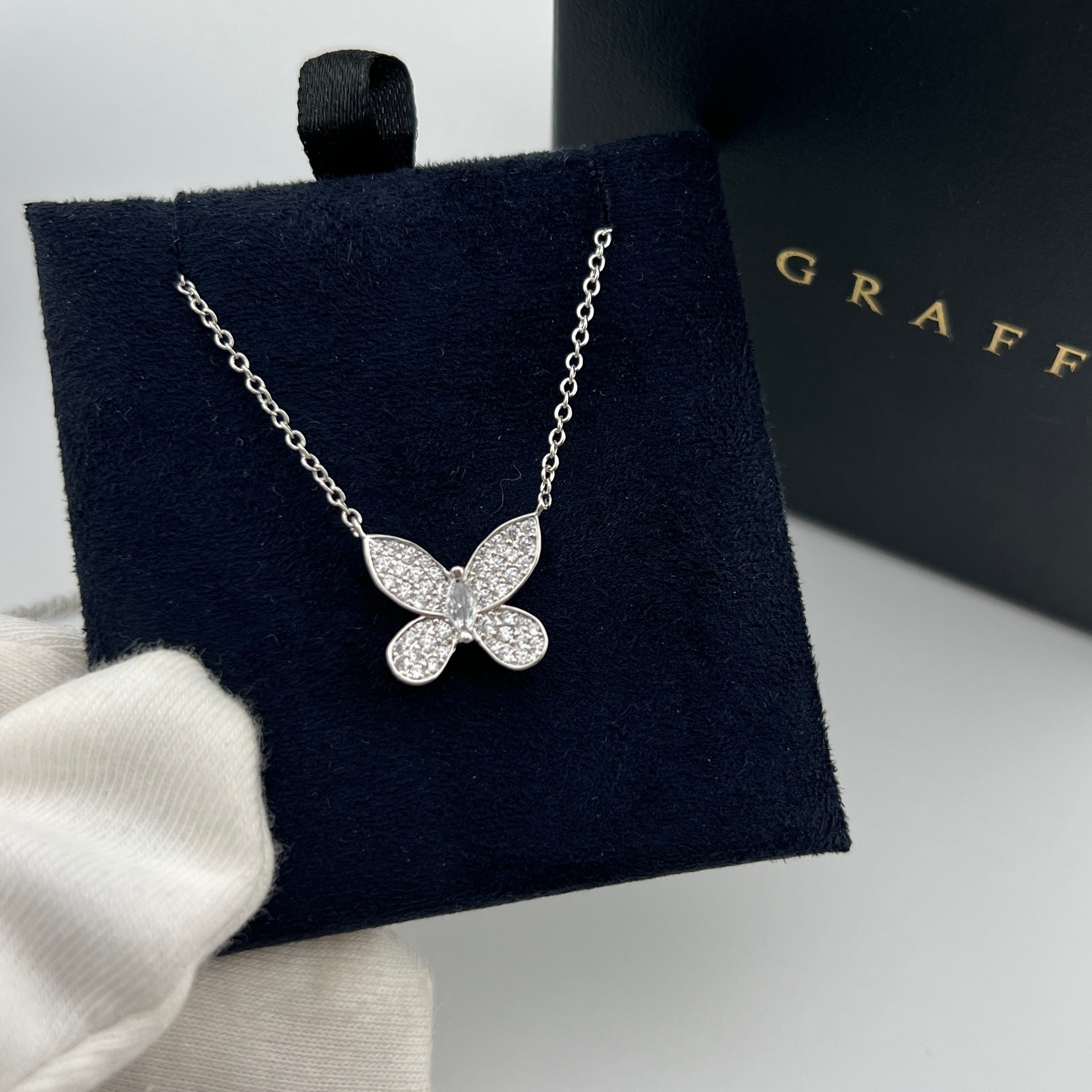 这款首饰是AAAAA 1:1 质量 (非常棒). 使用了和原版一模一样的材料. 商标部分也保持了和GRAFF一样. 图片拍摄是实物首饰拍摄, 您所收到的实物保证和我们图片一模一样.