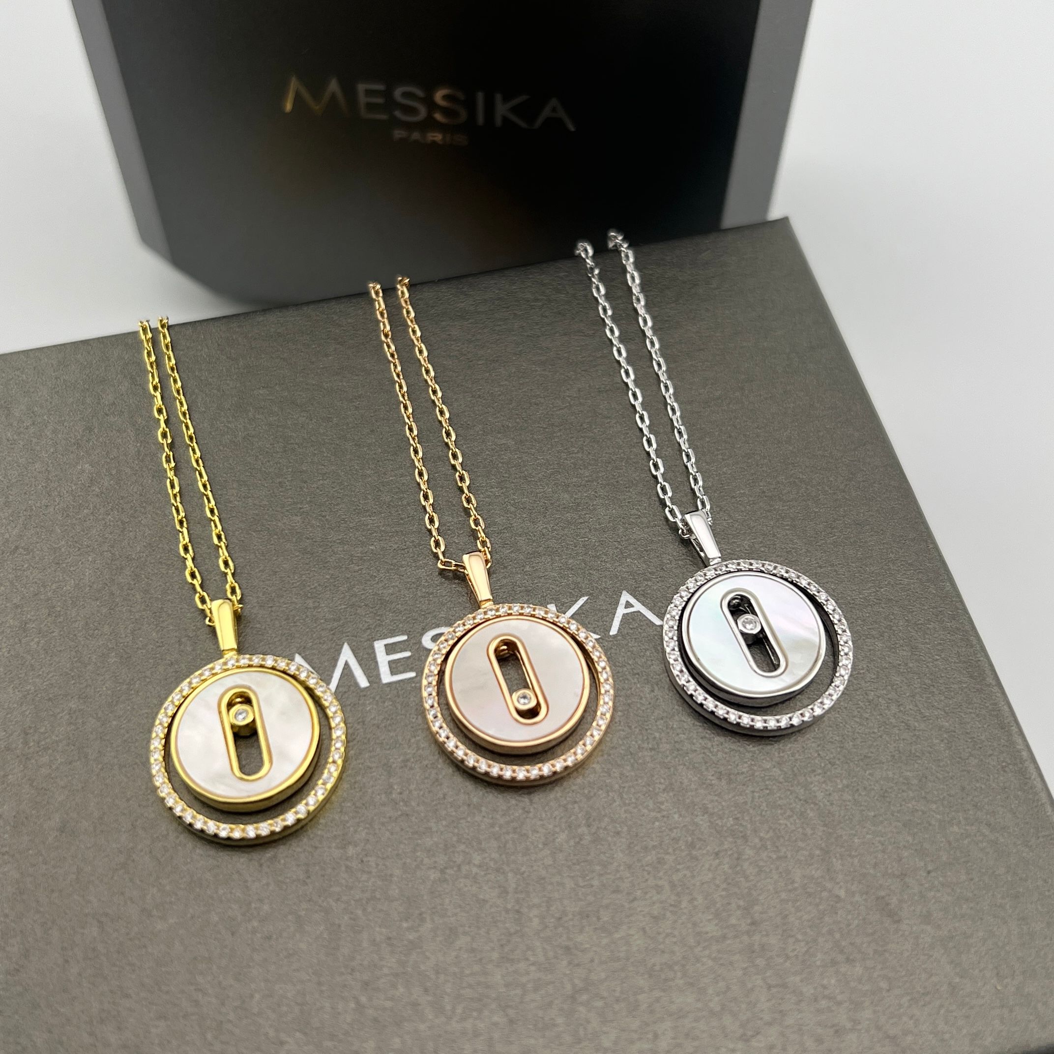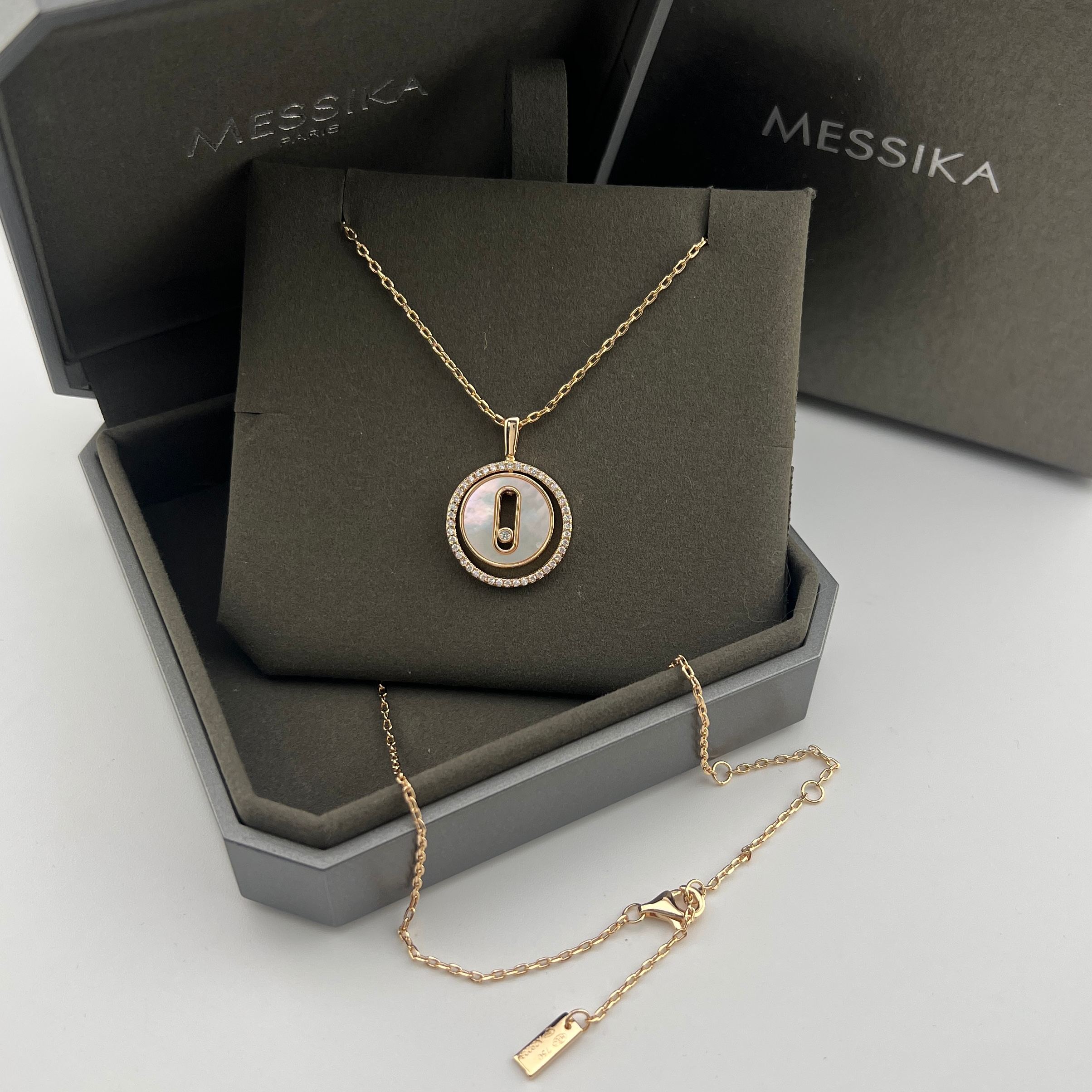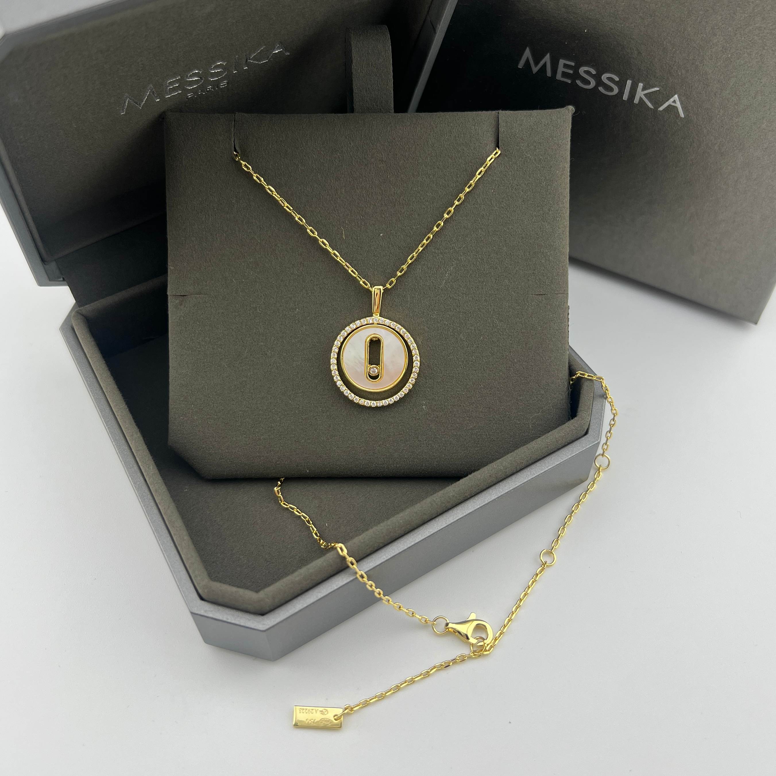 这款首饰是AAAAA 1:1 质量 (非常棒). 使用了和原版一模一样的材料. 商标部分也保持了和梅西卡/Messika一样. 图片拍摄是实物首饰拍摄, 您所收到的实物保证和我们图片一模一样.