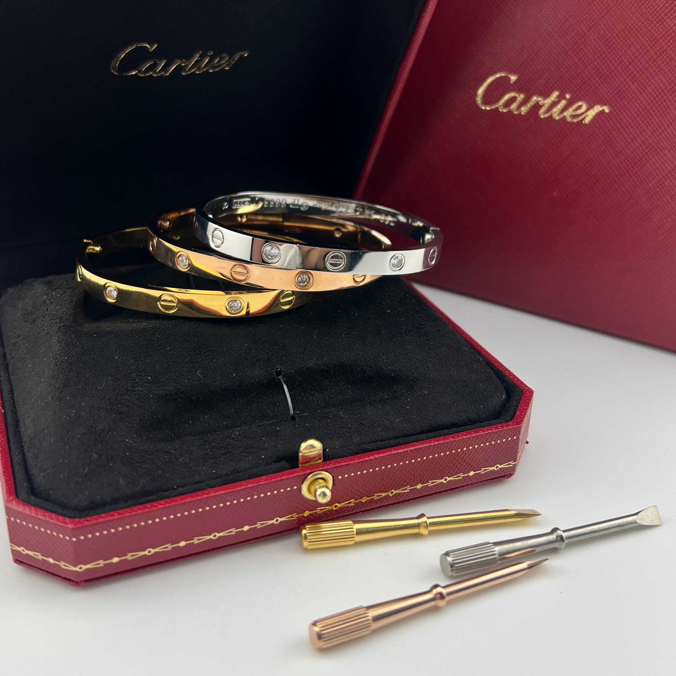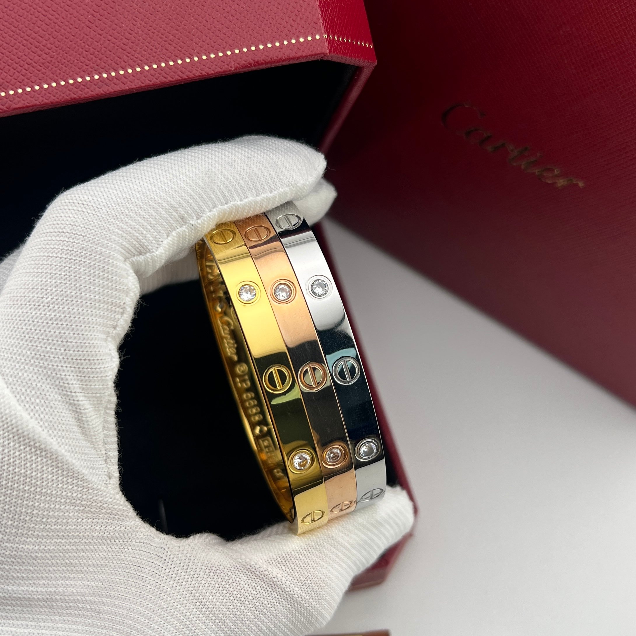 这款首饰是AAAAA 1:1 质量 (非常棒). 使用了和原版一模一样的材料. 商标部分也保持了和卡地亚/Cartier一样. 图片拍摄是实物首饰拍摄, 您所收到的实物保证和我们图片一模一样.