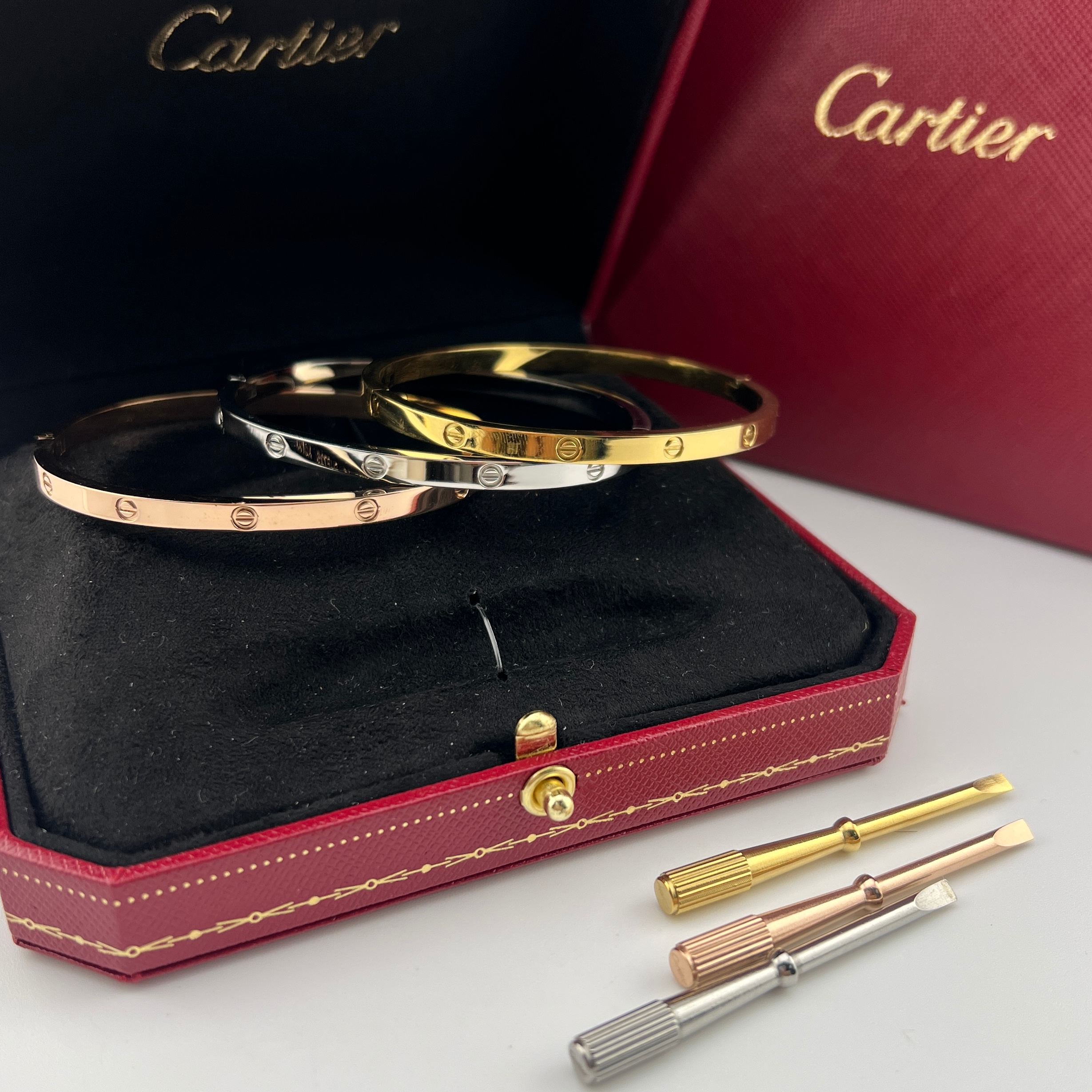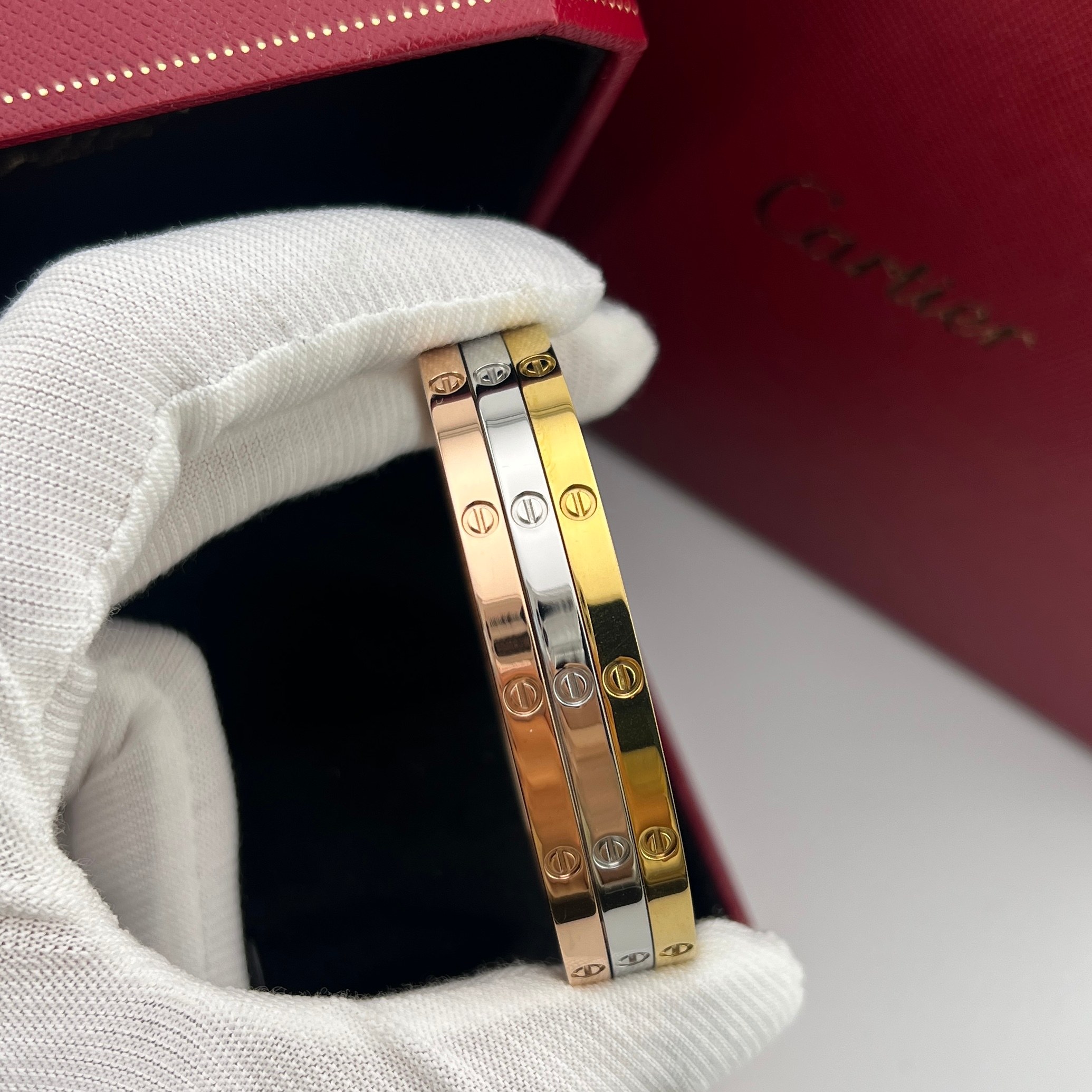 这款首饰是AAAAA 1:1 质量 (非常棒). 使用了和原版一模一样的材料. 商标部分也保持了和卡地亚/Cartier一样. 图片拍摄是实物首饰拍摄, 您所收到的实物保证和我们图片一模一样.