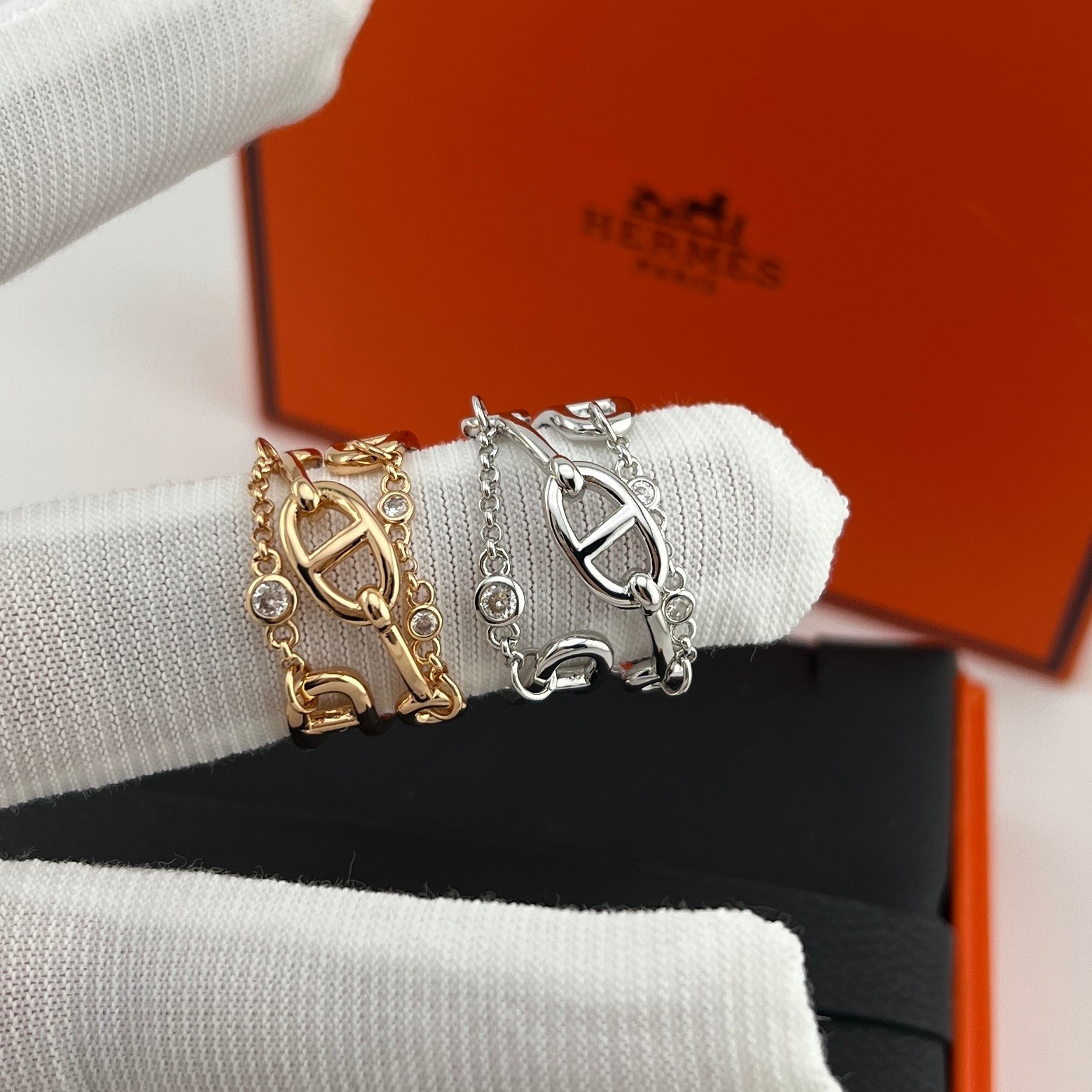 这款首饰是AAAAA 1:1 质量 (非常棒). 使用了和原版一模一样的材料. 商标部分也保持了和爱马仕/Hermes一样. 图片拍摄是实物首饰拍摄, 您所收到的实物保证和我们图片一模一样.