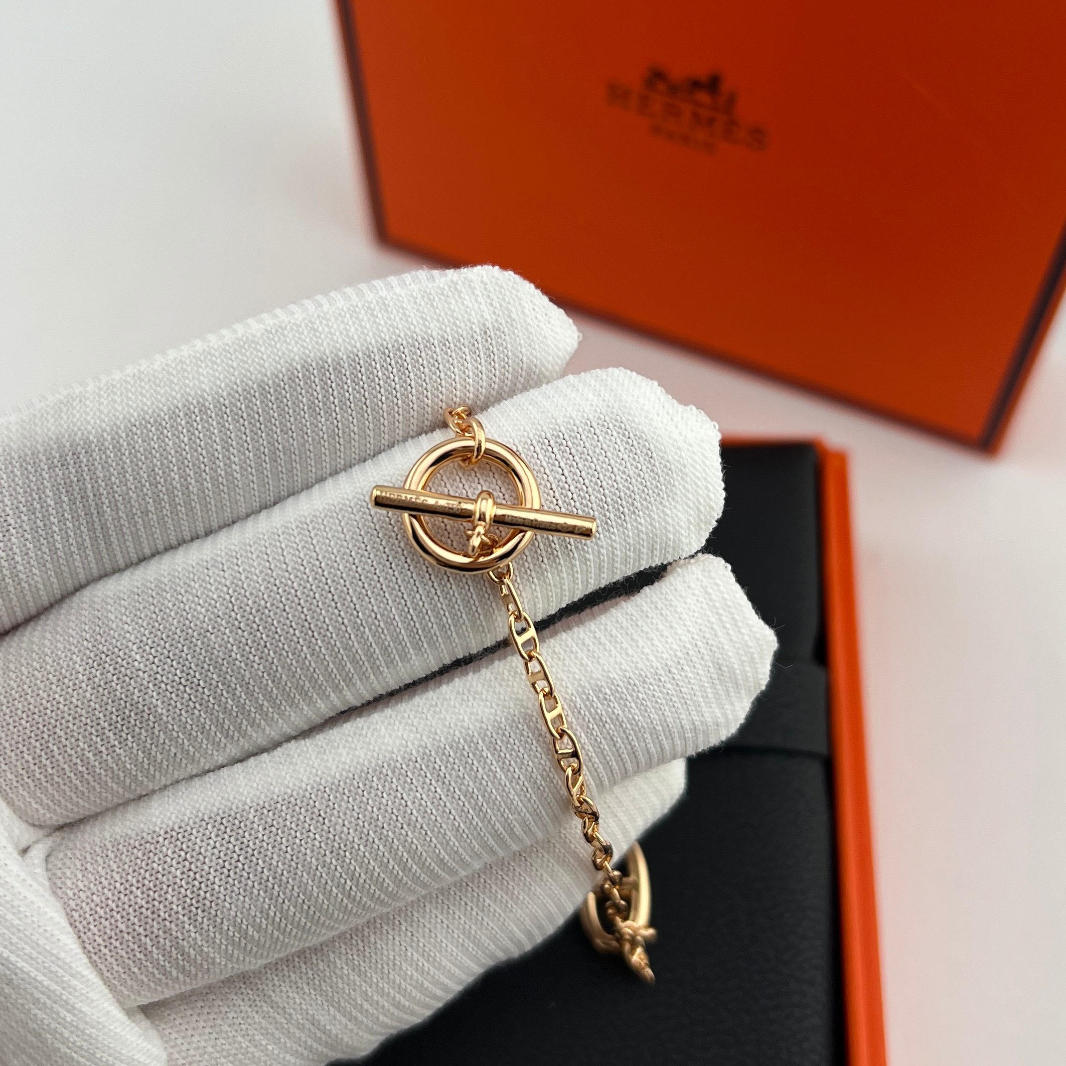 这款首饰是AAAAA 1:1 质量 (非常棒). 使用了和原版一模一样的材料. 商标部分也保持了和爱马仕/Hermes一样. 图片拍摄是实物首饰拍摄, 您所收到的实物保证和我们图片一模一样.