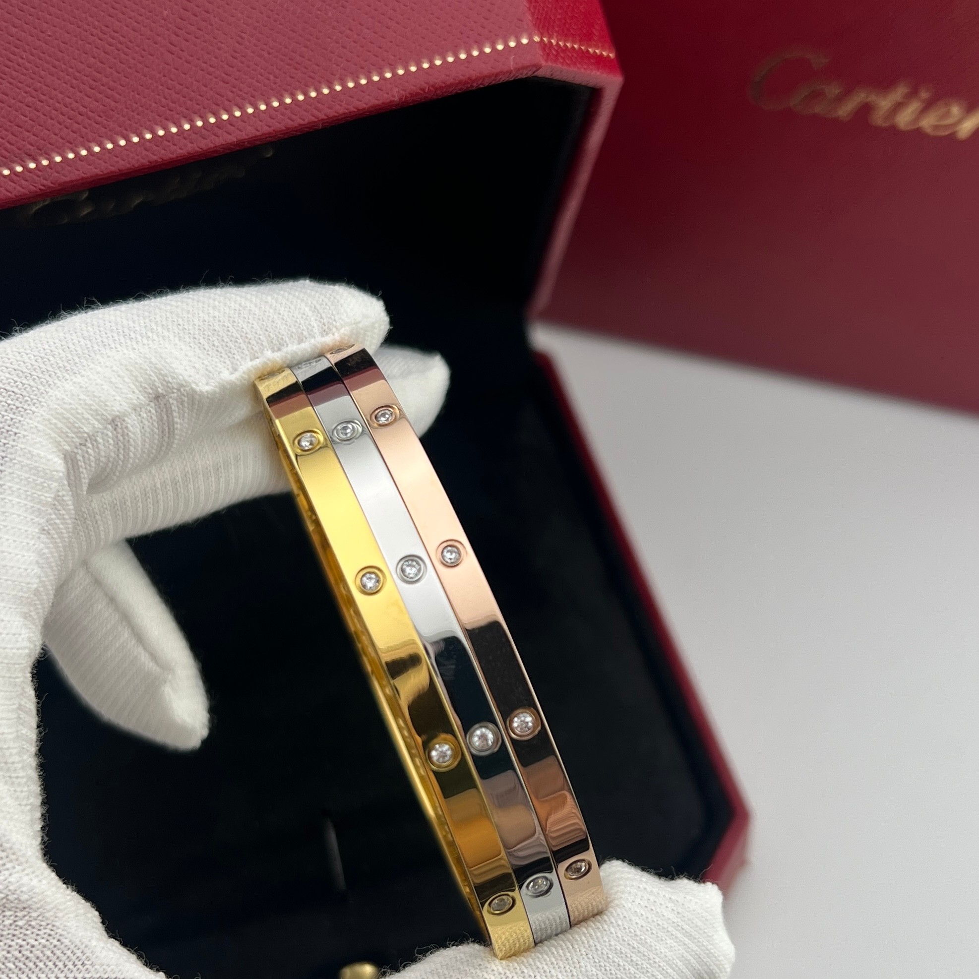 这款首饰是AAAAA 1:1 质量 (非常棒). 使用了和原版一模一样的材料. 商标部分也保持了和卡地亚/Cartier一样. 图片拍摄是实物首饰拍摄, 您所收到的实物保证和我们图片一模一样.