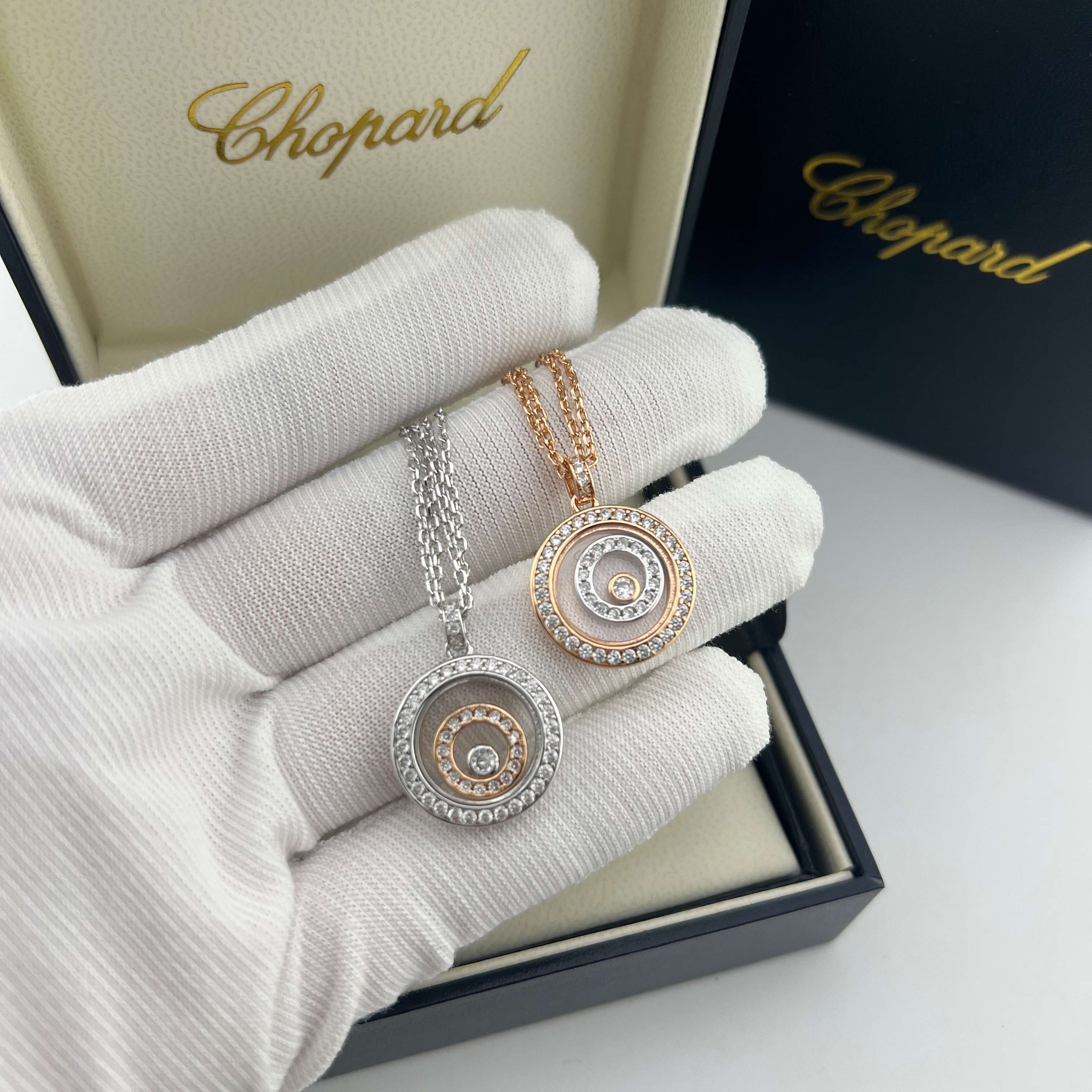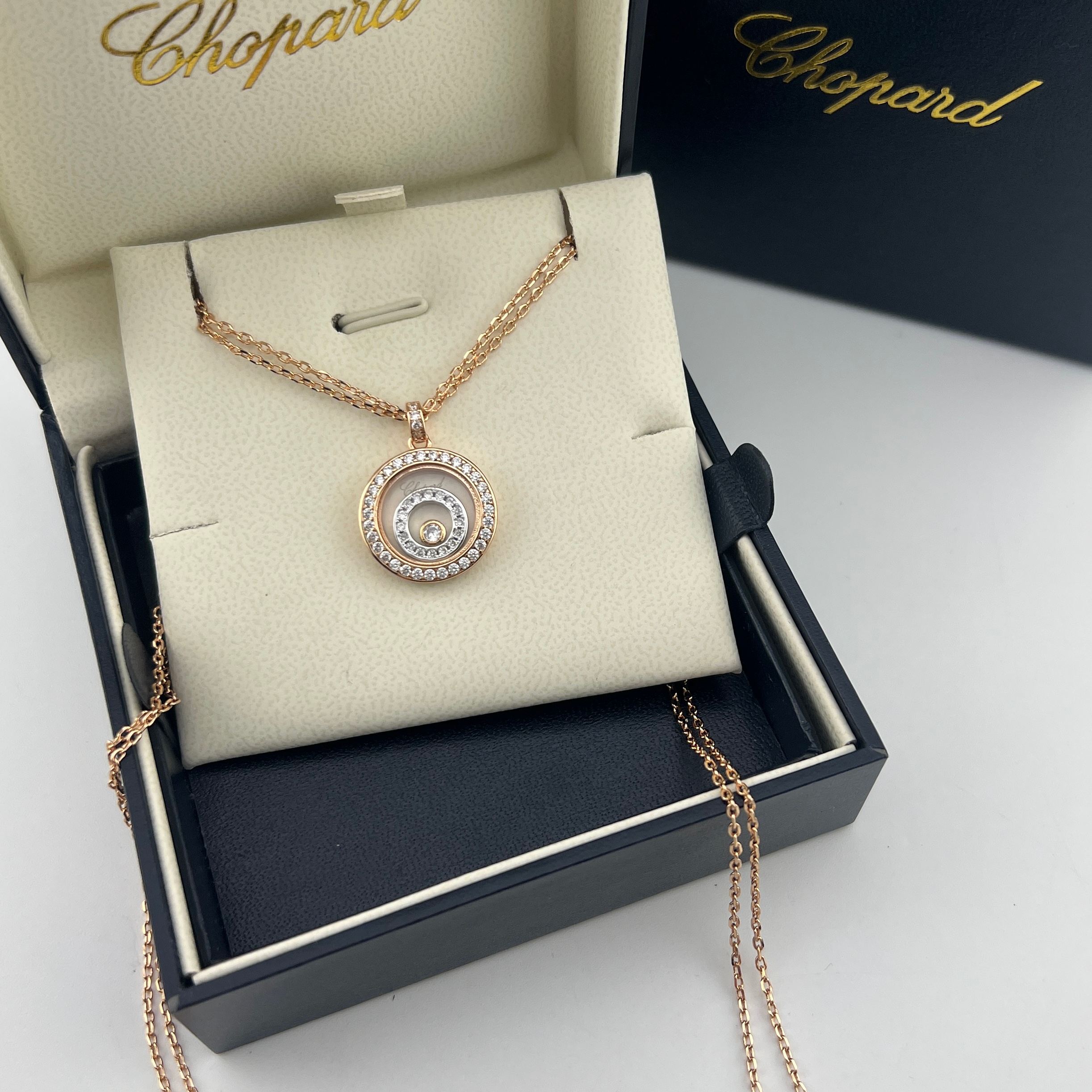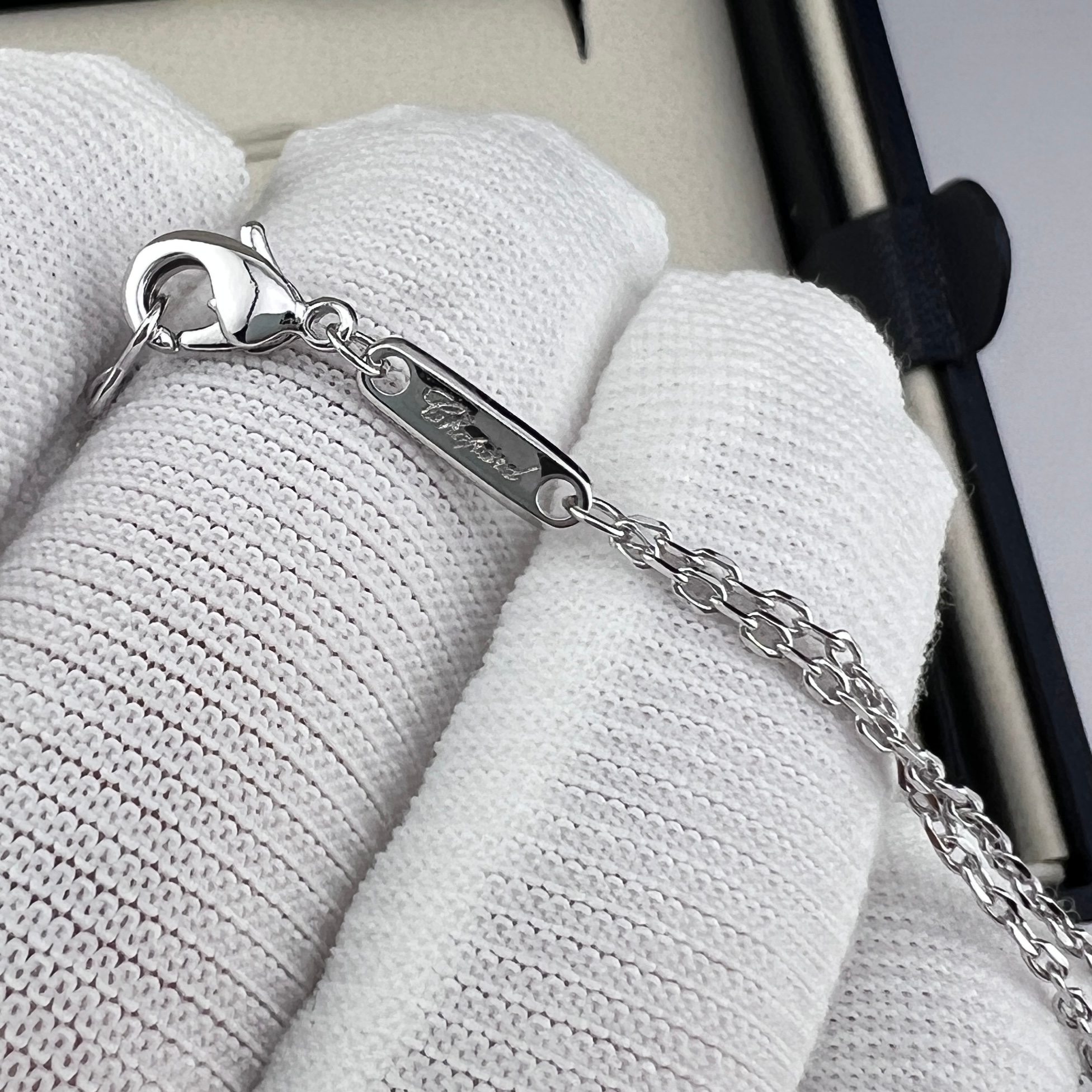 这款首饰是AAAAA 1:1 质量 (非常棒). 使用了和原版一模一样的材料. 商标部分也保持了和萧邦/Chopard一样. 图片拍摄是实物首饰拍摄, 您所收到的实物保证和我们图片一模一样.