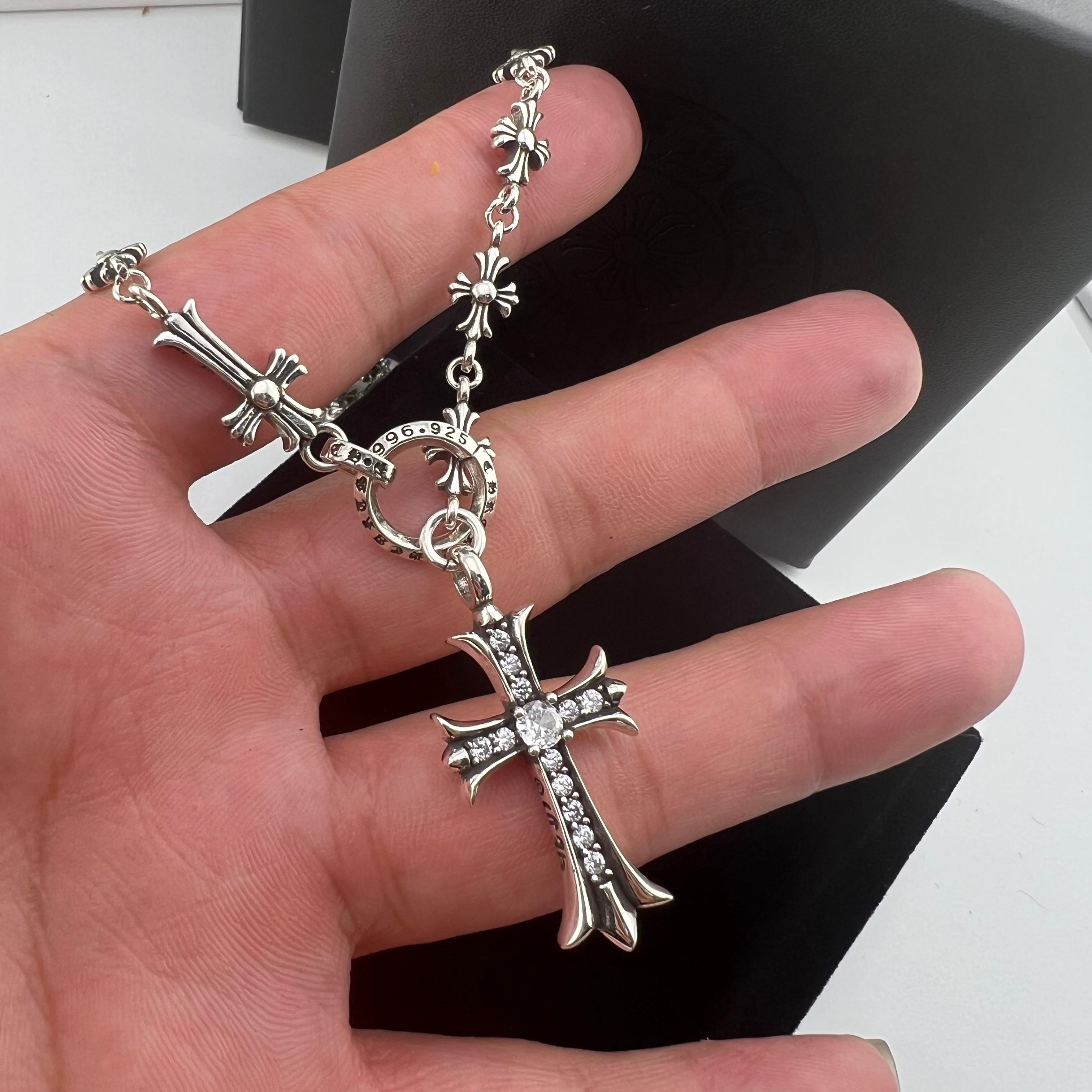 这款首饰是AAAAA 1:1 质量 (非常棒). 使用了和原版一模一样的材料. 商标部分也保持了和克罗心/Chrome Hearts一样. 图片拍摄是实物首饰拍摄, 您所收到的实物保证和我们图片一模一样.