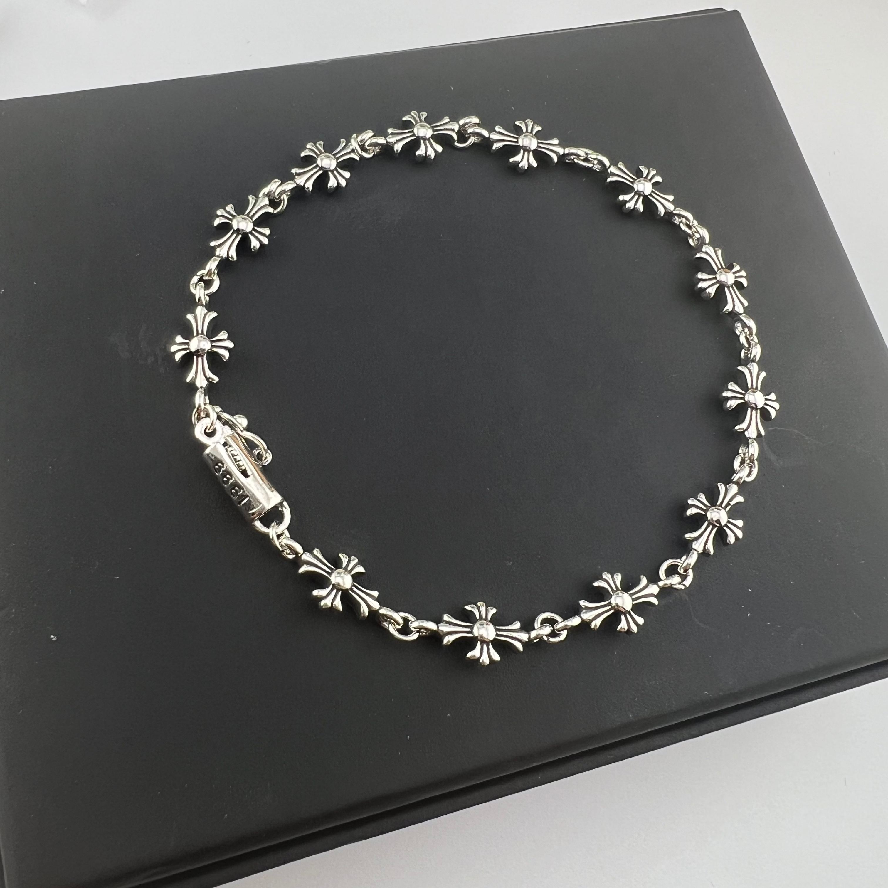 这款首饰是AAAAA 1:1 质量 (非常棒). 使用了和原版一模一样的材料. 商标部分也保持了和克罗心/Chrome Hearts一样. 图片拍摄是实物首饰拍摄, 您所收到的实物保证和我们图片一模一样.