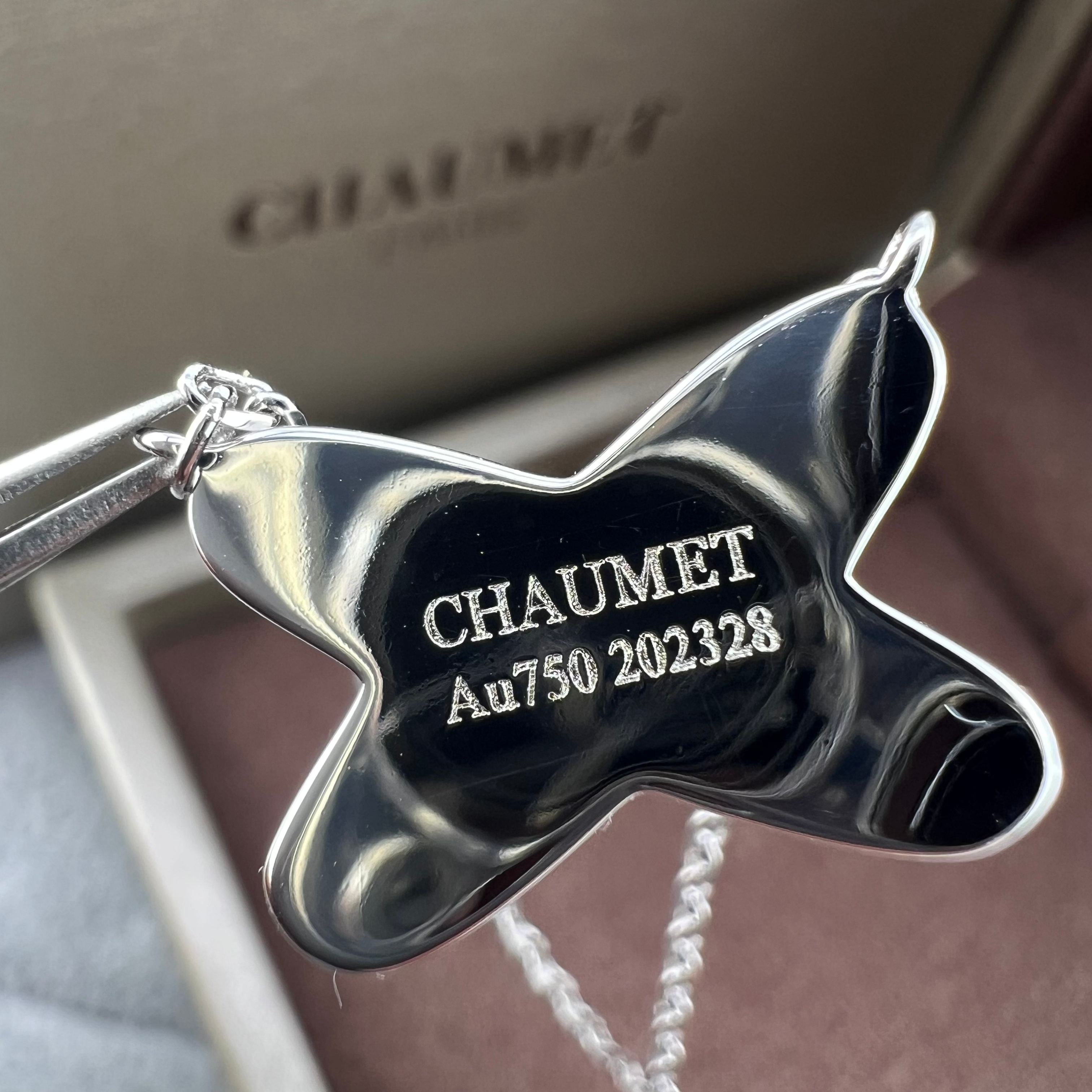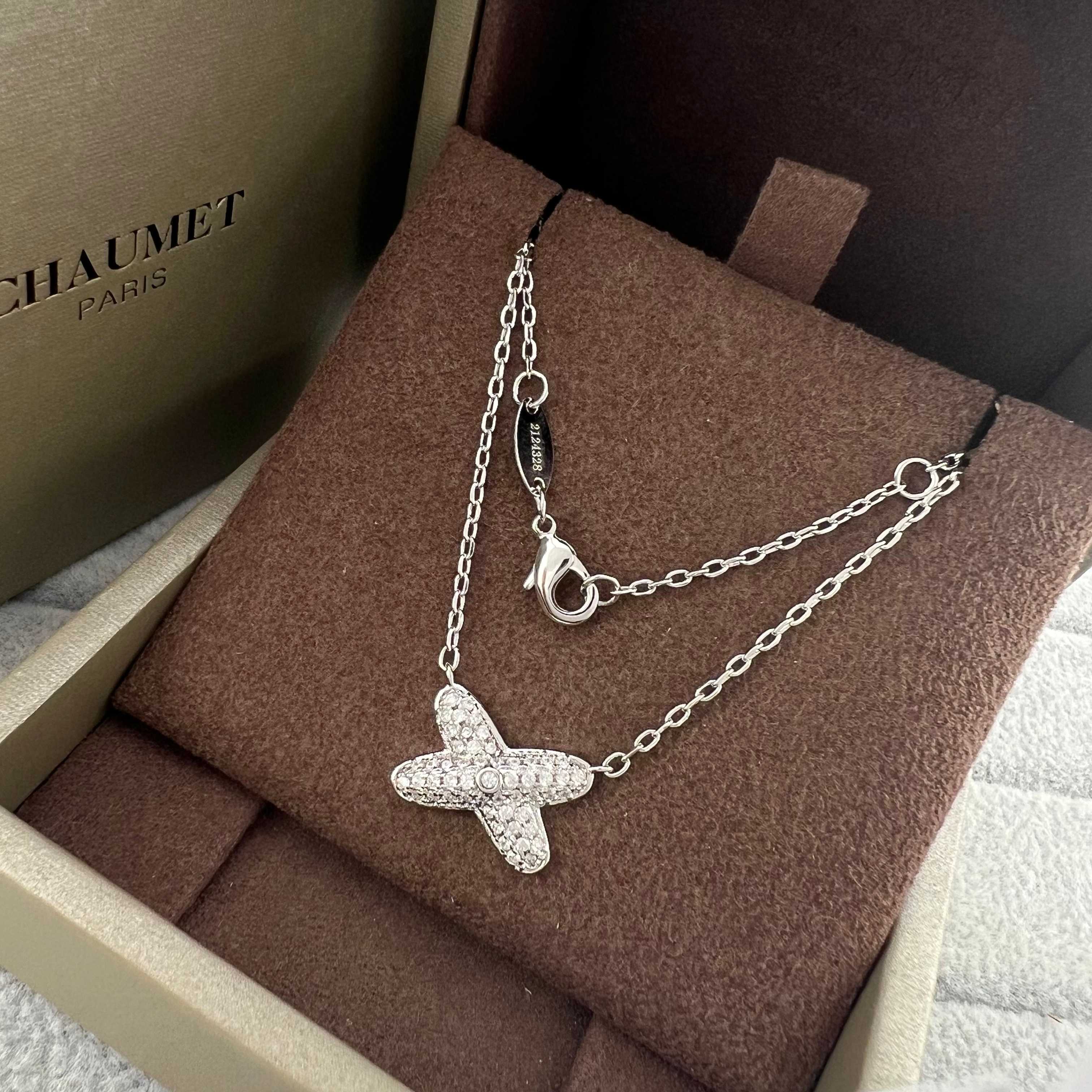 这款首饰是AAAAA 1:1 质量 (非常棒). 使用了和原版一模一样的材料. 商标部分也保持了和Chaumet一样. 图片拍摄是实物首饰拍摄, 您所收到的实物保证和我们图片一模一样.
