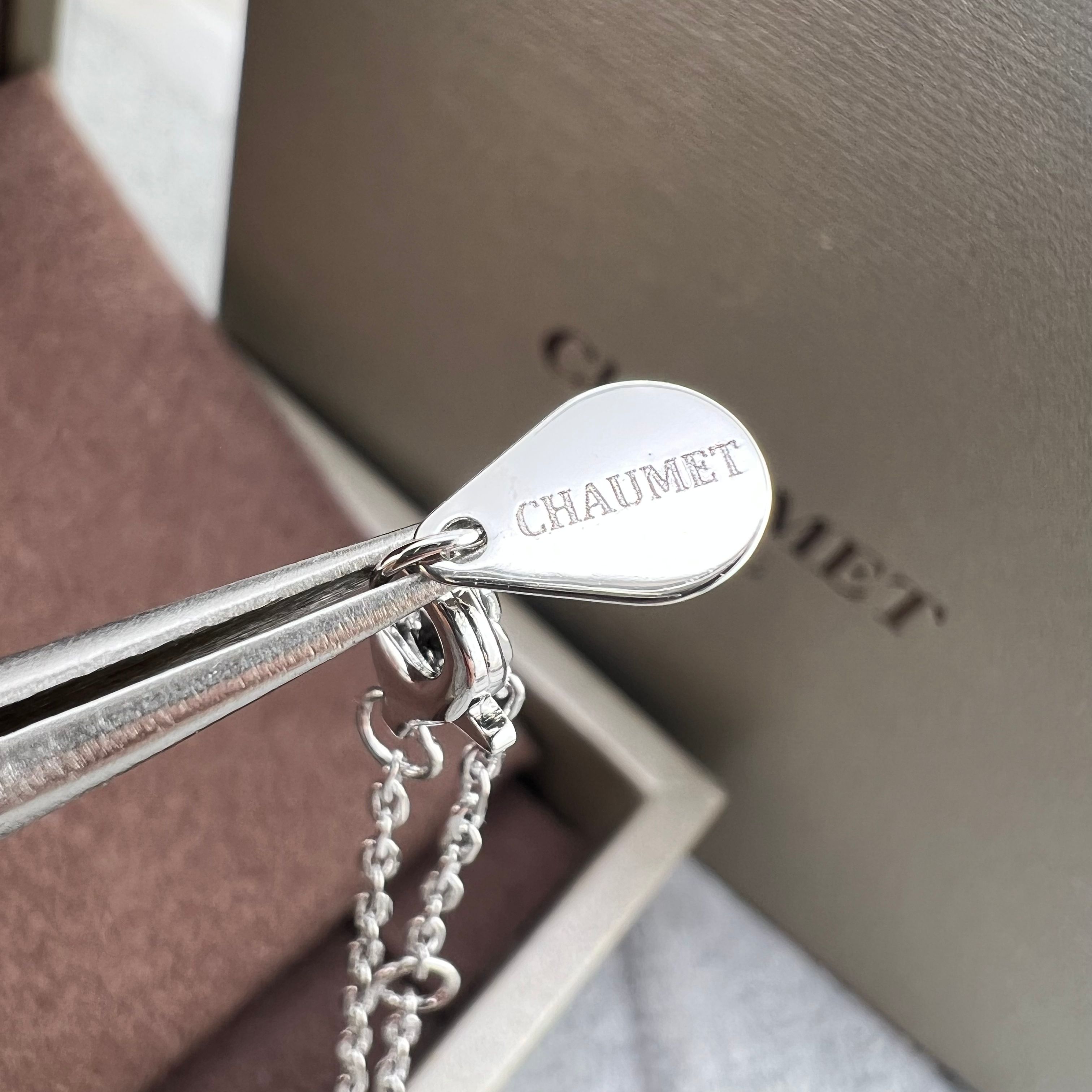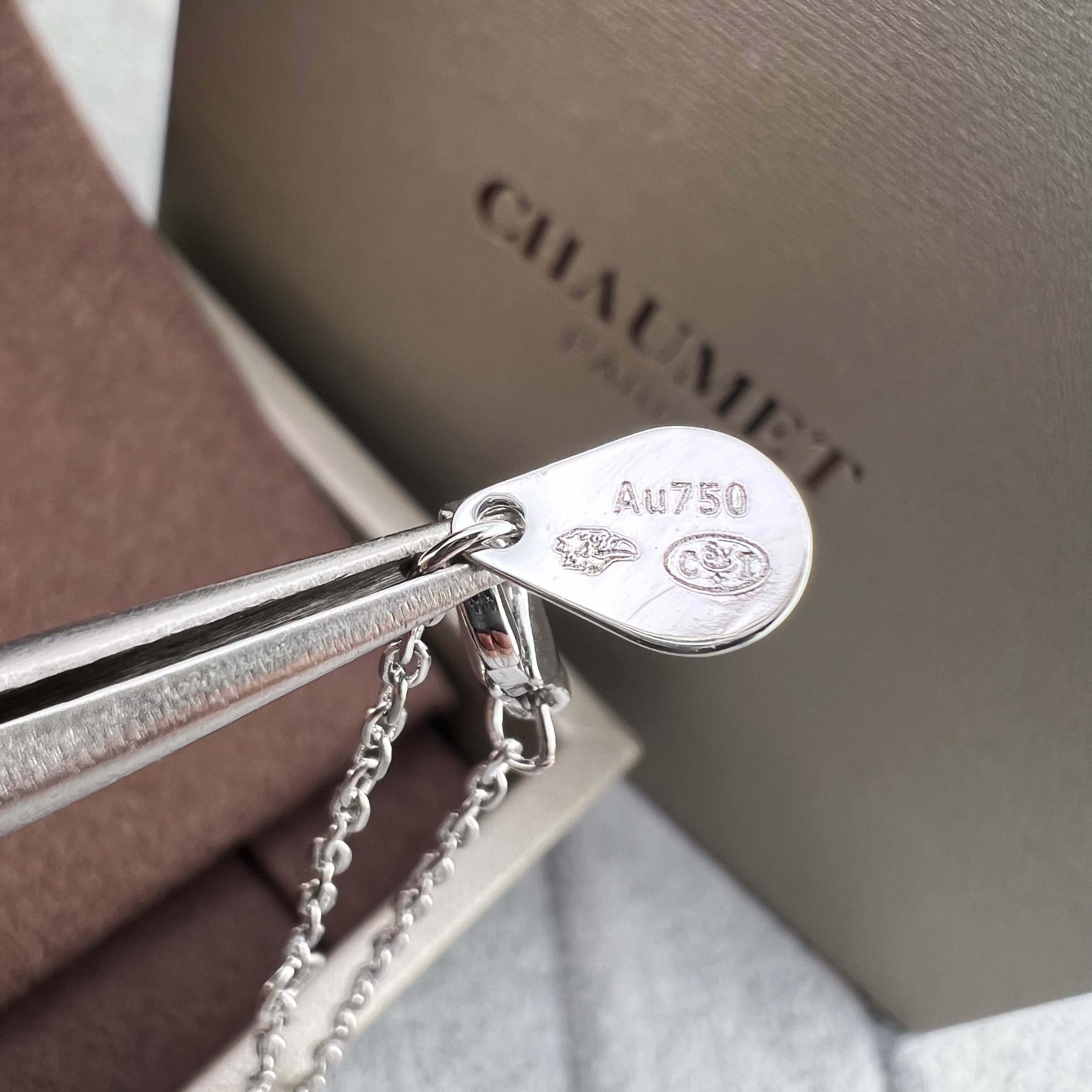 这款首饰是AAAAA 1:1 质量 (非常棒). 使用了和原版一模一样的材料. 商标部分也保持了和Chaumet一样. 图片拍摄是实物首饰拍摄, 您所收到的实物保证和我们图片一模一样.
