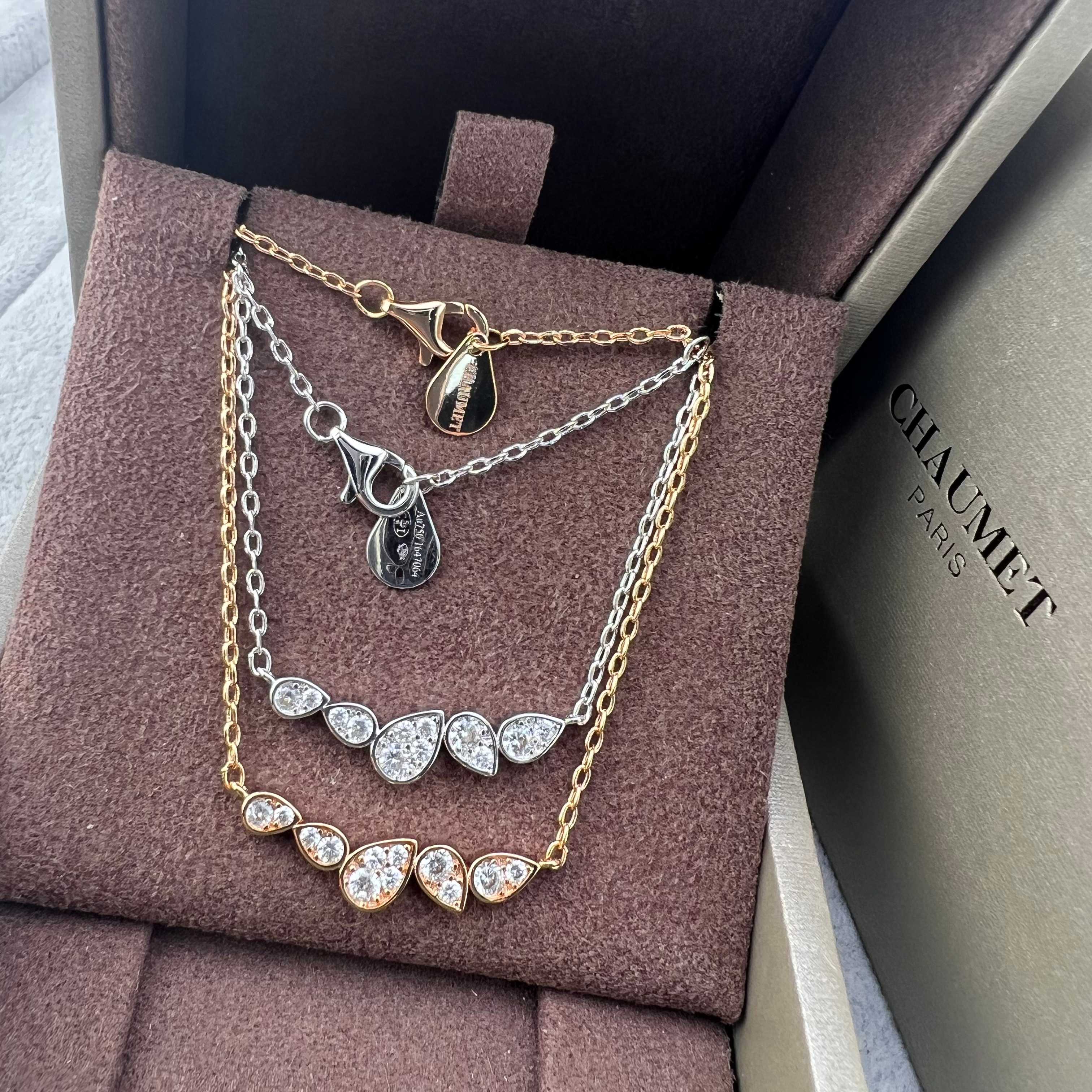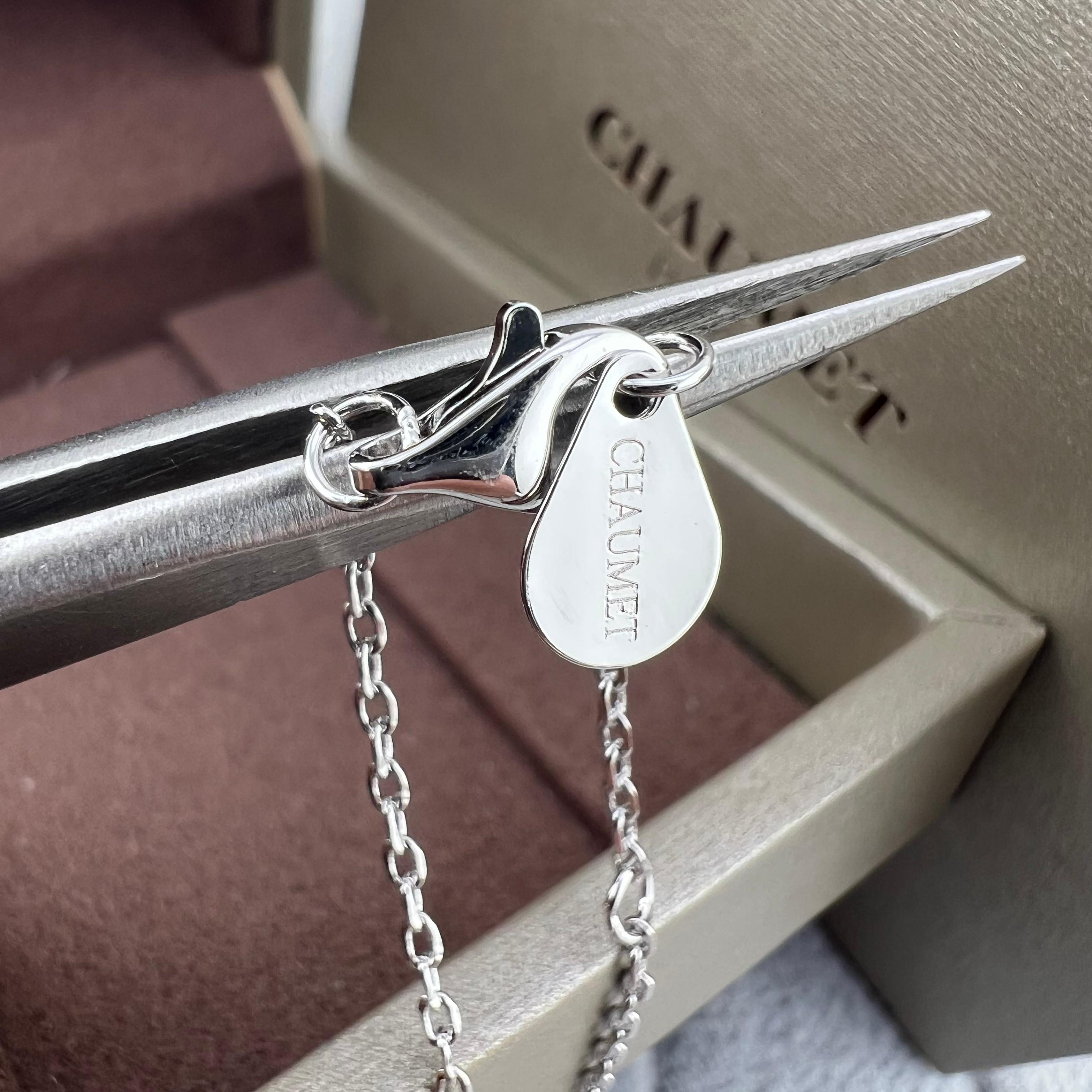这款首饰是AAAAA 1:1 质量 (非常棒). 使用了和原版一模一样的材料. 商标部分也保持了和Chaumet一样. 图片拍摄是实物首饰拍摄, 您所收到的实物保证和我们图片一模一样.