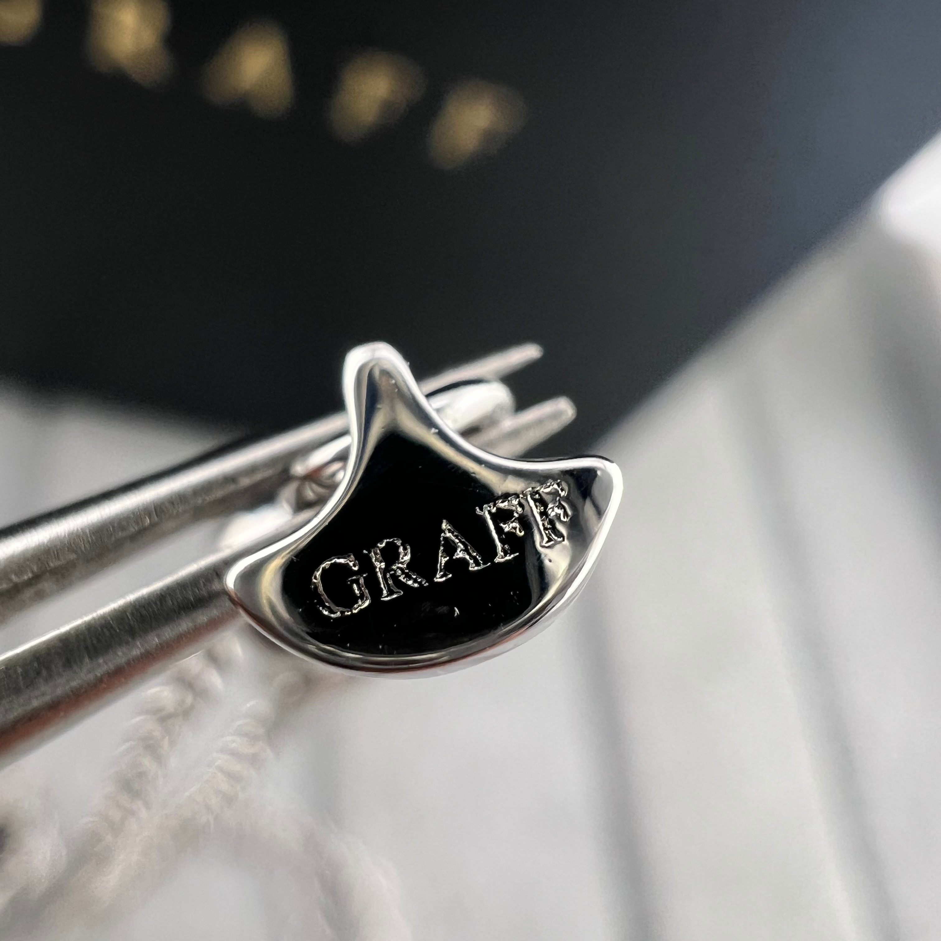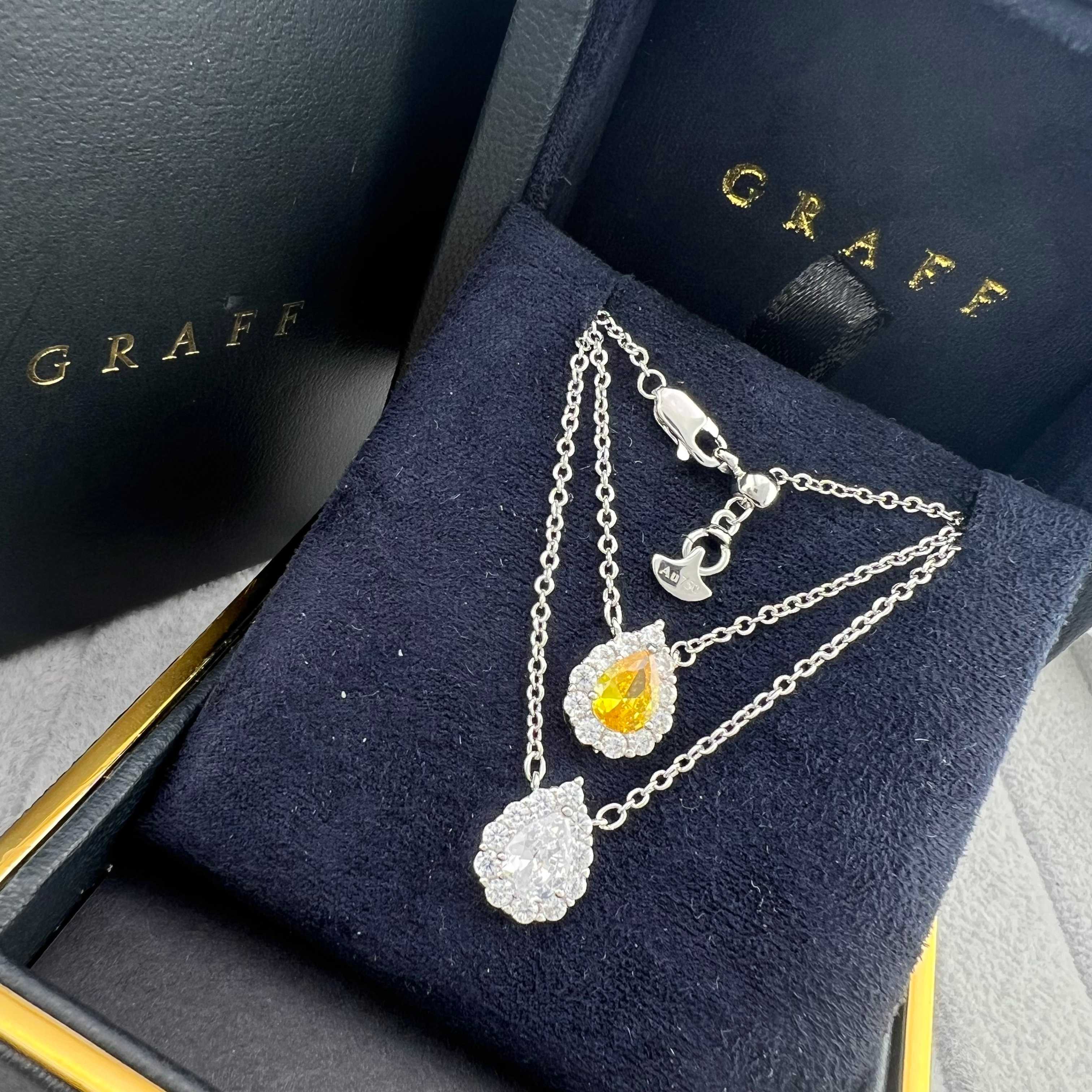 这款首饰是AAAAA 1:1 质量 (非常棒). 使用了和原版一模一样的材料. 商标部分也保持了和GRAFF一样. 图片拍摄是实物首饰拍摄, 您所收到的实物保证和我们图片一模一样.