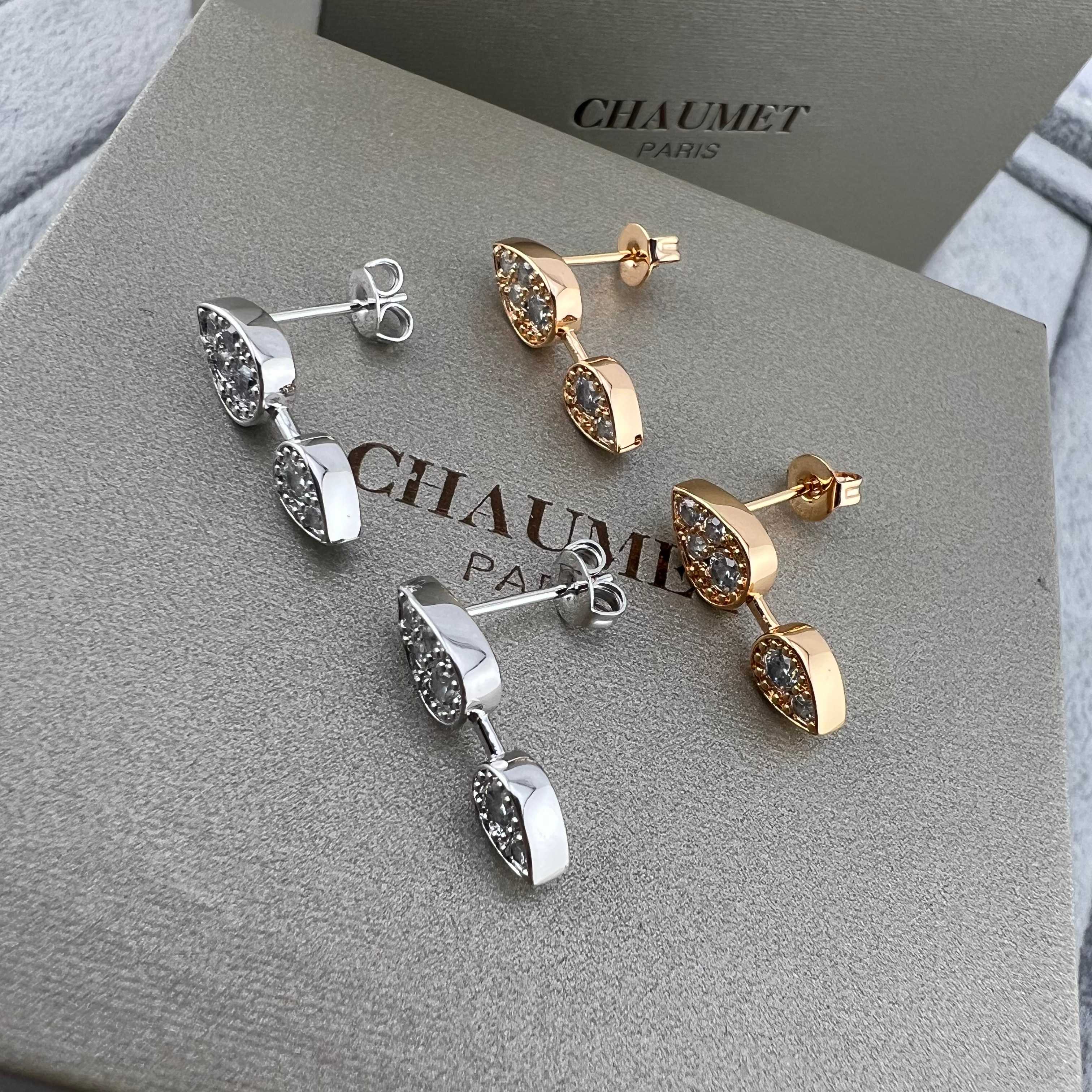 这款首饰是AAAAA 1:1 质量 (非常棒). 使用了和原版一模一样的材料. 商标部分也保持了和Chaumet一样. 图片拍摄是实物首饰拍摄, 您所收到的实物保证和我们图片一模一样.
