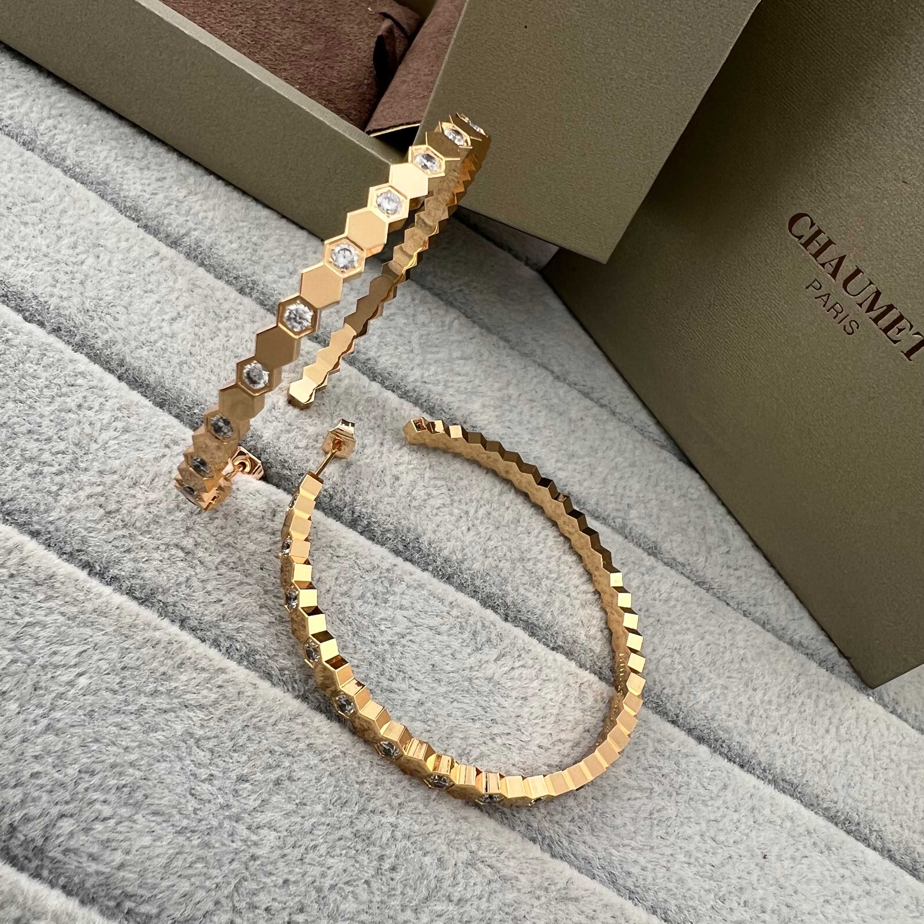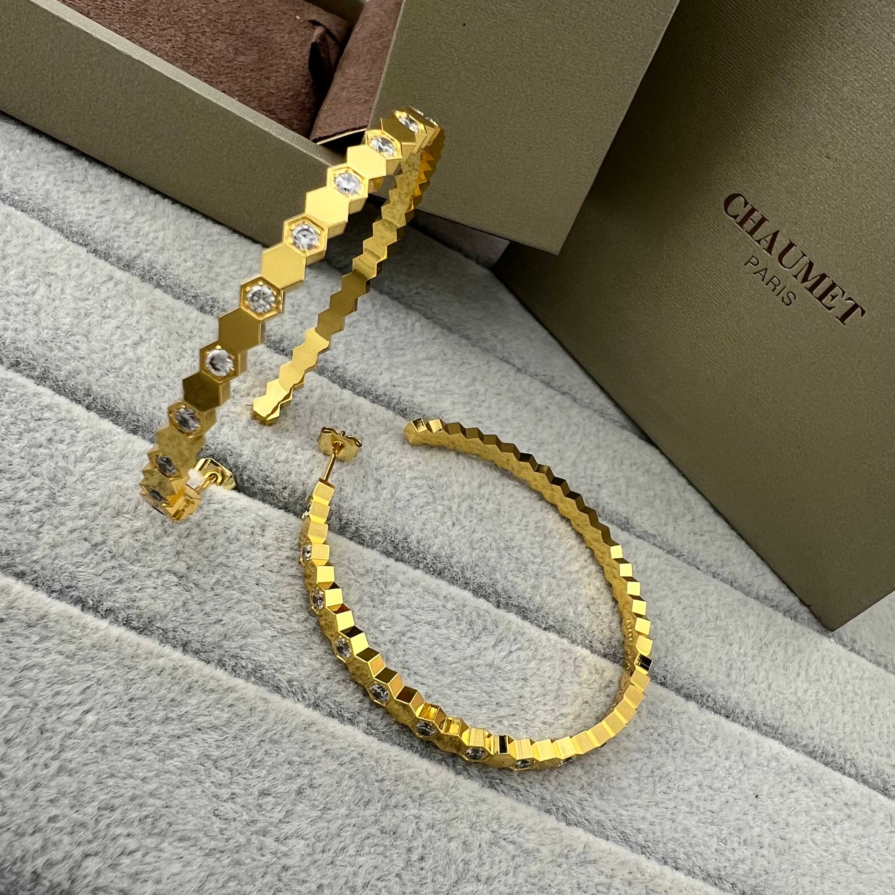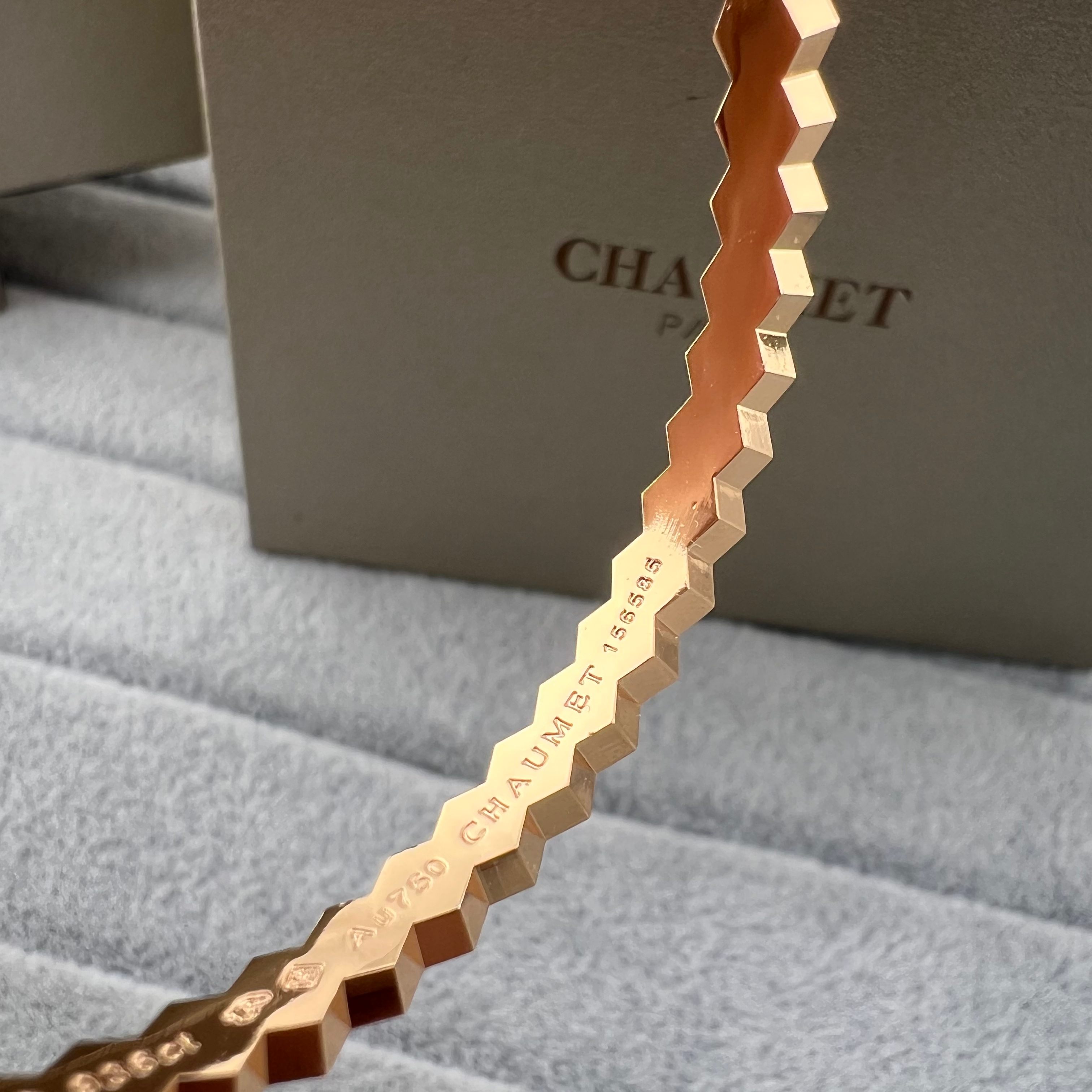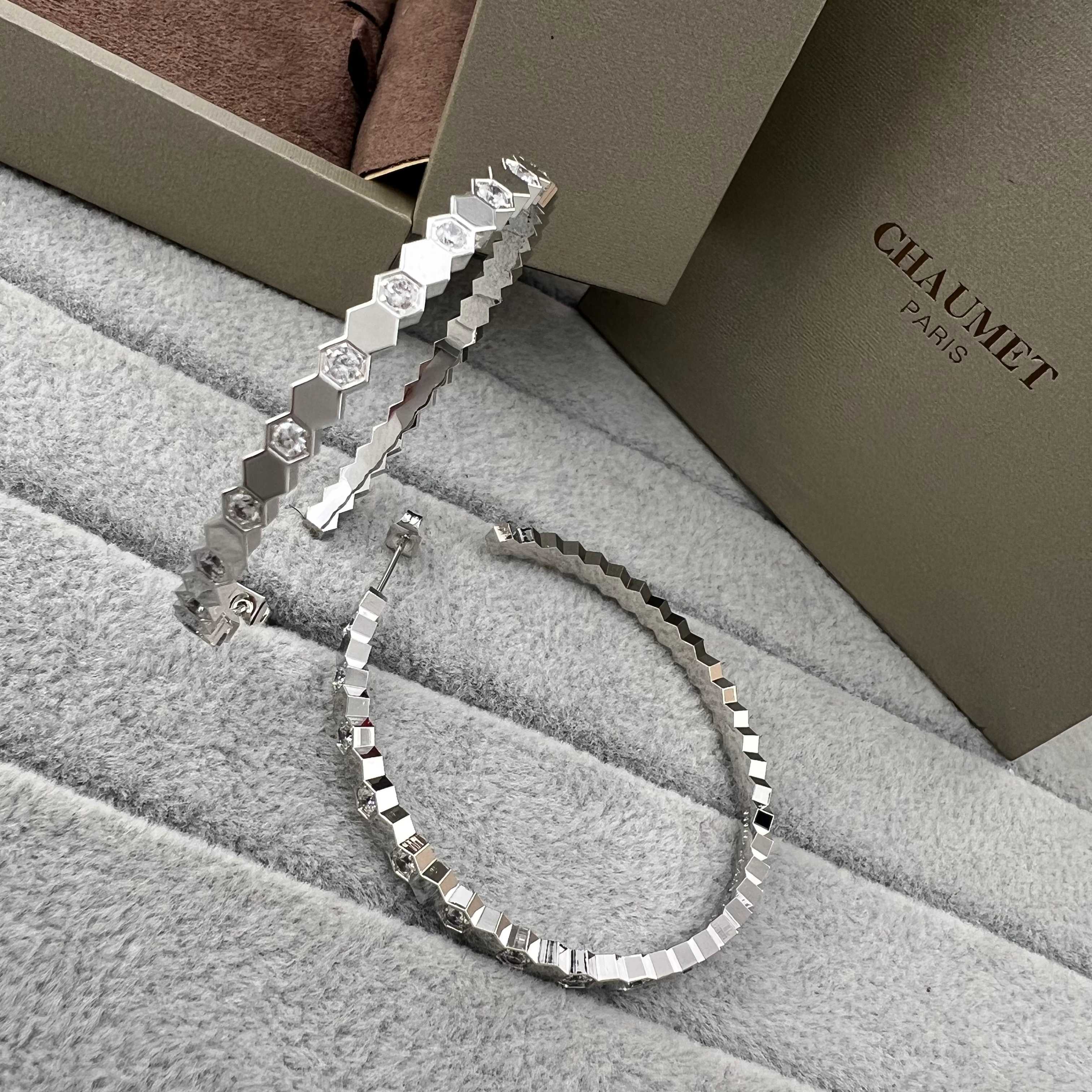 这款首饰是AAAAA 1:1 质量 (非常棒). 使用了和原版一模一样的材料. 商标部分也保持了和Chaumet一样. 图片拍摄是实物首饰拍摄, 您所收到的实物保证和我们图片一模一样.