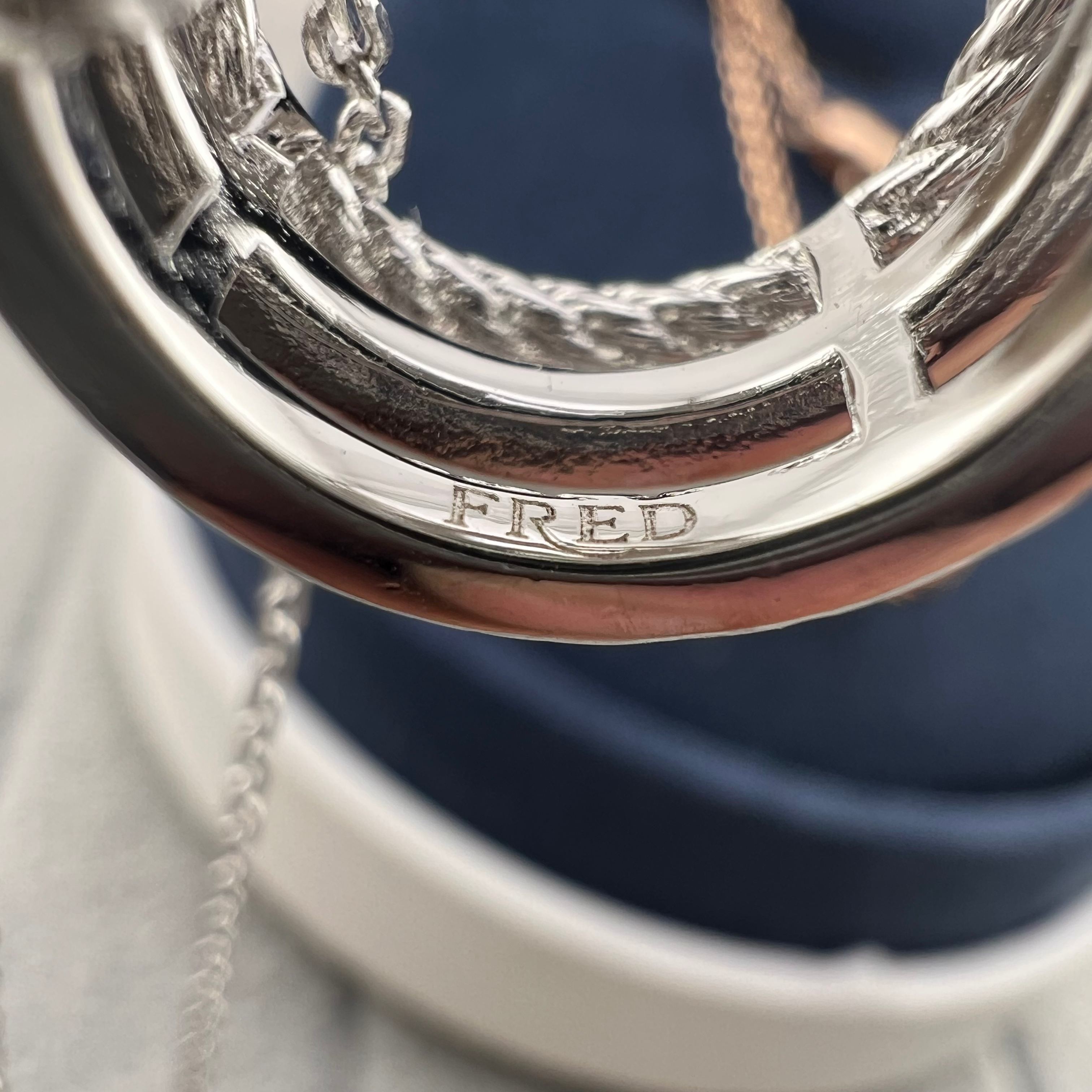 这款首饰是AAAAA 1:1 质量 (非常棒). 使用了和原版一模一样的材料. 商标部分也保持了和Fred一样. 图片拍摄是实物首饰拍摄, 您所收到的实物保证和我们图片一模一样.