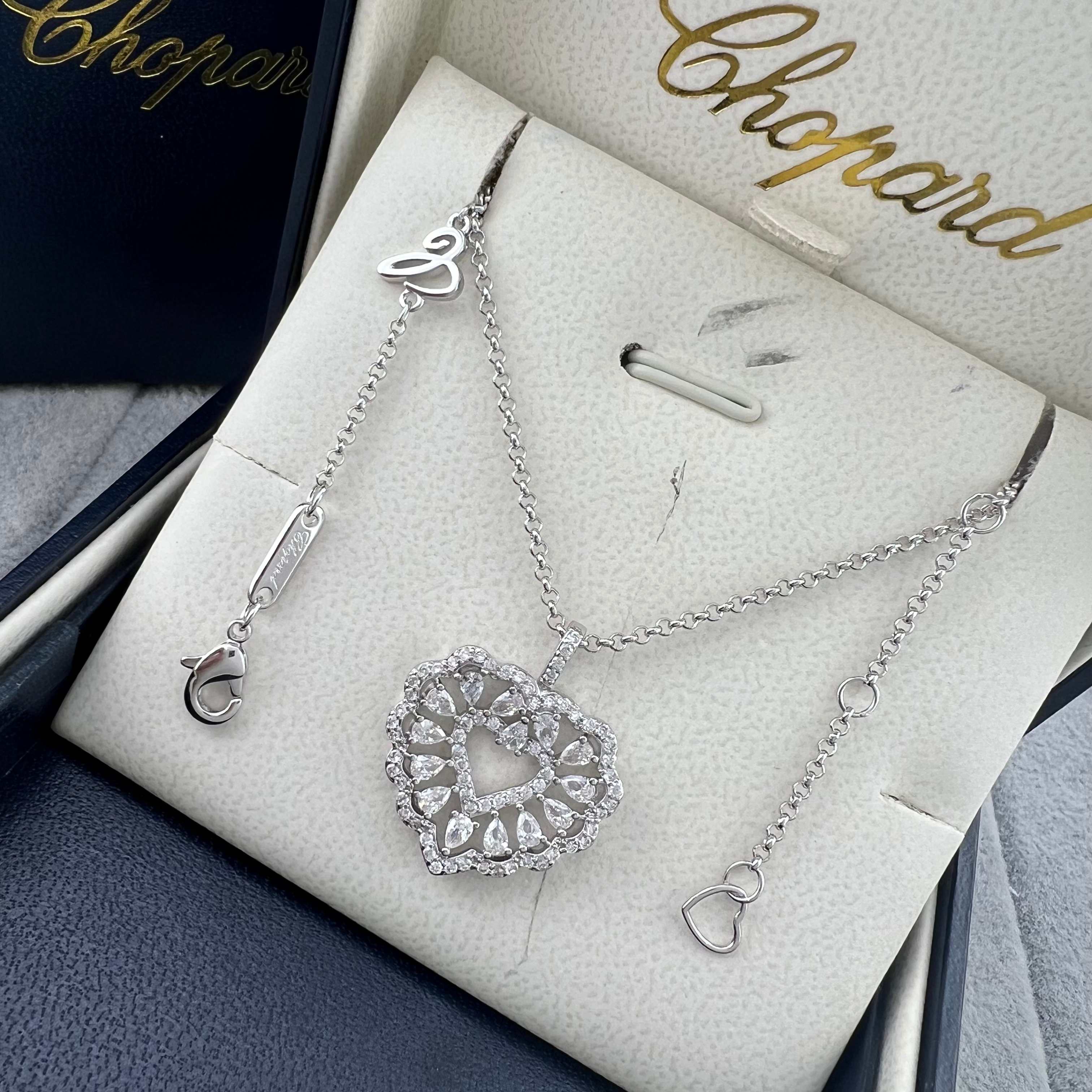 这款首饰是AAAAA 1:1 质量 (非常棒). 使用了和原版一模一样的材料. 商标部分也保持了和萧邦/Chopard一样. 图片拍摄是实物首饰拍摄, 您所收到的实物保证和我们图片一模一样.
